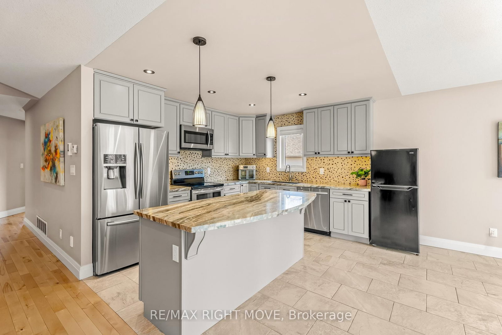 Your family's next chapter might be waiting in Wasaga Beach in the sought-after Royal Beech / Blueberry Trail area - this stunning custom-built raised bungalow offers the kind of space families dream about . The Bungalow-Raised on 9 Sunrise Circle has 3 bedrooms, 3 bathrooms, and is located on a 185 x 50.94 ft loton .50-1.99 acres in the community of Wasaga Beach .Built in 2017 by a custom builder, this well-maintained raised bungalow offers approximately 3,200 sq ft of finished living space with room for everyone to live comfortably under one roof.The main level features an open-concept layout with vaulted ceilings, maple hardwood flooring, and a natural gas stone fireplace-creating a warm and inviting space for everyday family life. The kitchen is thoughtfully designed with custom cabinetry, granite countertops, backsplash, soft-close drawers / cabinets , and a large island perfect for meals, homework, and entertaining. The primary bedroom includes a walk-in closet and a 4-piece ensuite with soaker tub and separate shower. Two additional bedrooms, a full bathroom, and convenient main floor laundry complete this level. Walk out to the upper deck, enclosed with a plexiglass garage-style door, offering a versatile 3-season space for relaxing or hosting.The fully finished lower level provides incredible flexibility for extended family, older children, or guests, featuring 3 additional bedrooms, a full kitchen, bathroom with dual access, separate laundry, and a bright living area with large windows and a walkout to the covered patio.Situated on a fully fenced, pie-shaped lot, this property is ideal for families with kids and pets, including a fire pit area, and inground sprinkler system for easy maintenance. Additional features include; Central air conditioning (A/C), HRV, and central vacuum, No carpet throughout, Natural gas hookups on both upper and lower outdoor spaces ,Double car garage with hot and cold water, storage and loft. Parking for up to 6 vehicles total . Located on a quiet cul-de-sac in a family-friendly neighbourhood. Walking Distance to sandy beaches of Georgian Bay , Public Schools and Shopping .