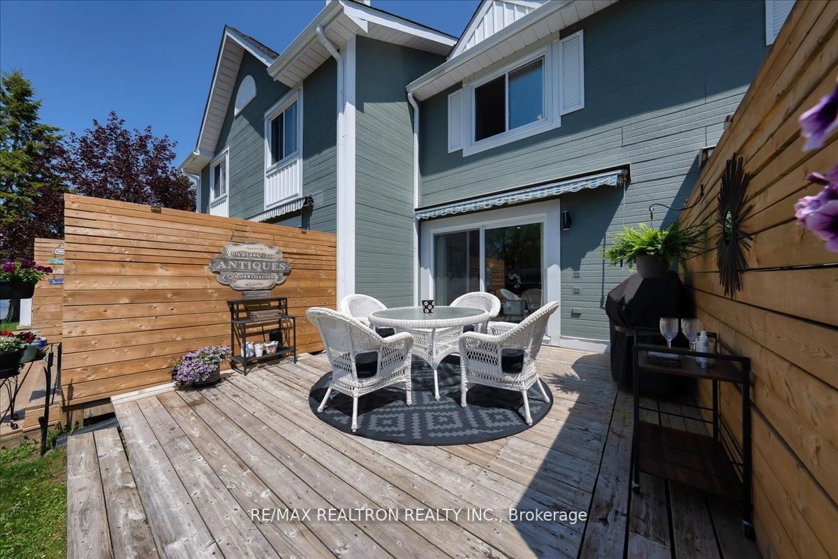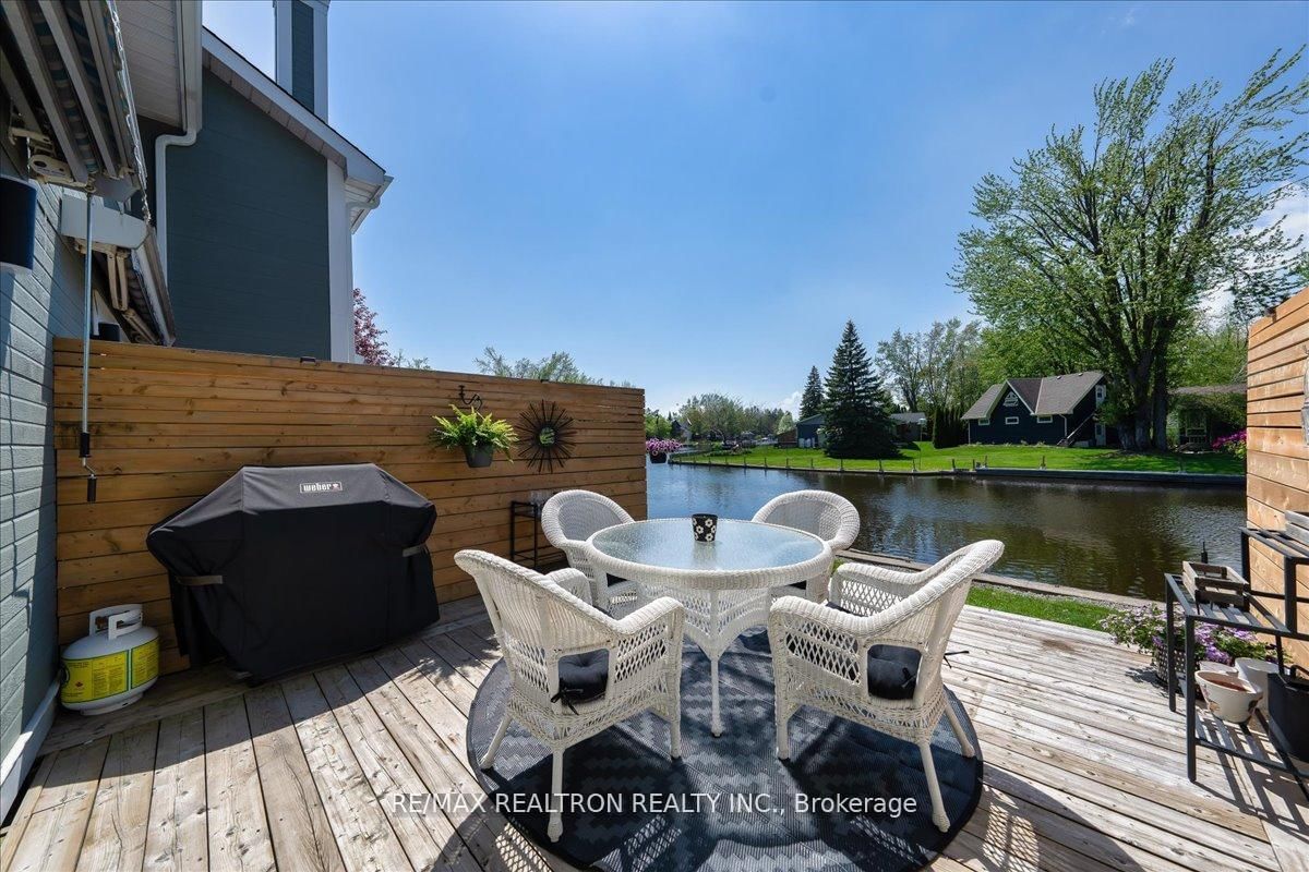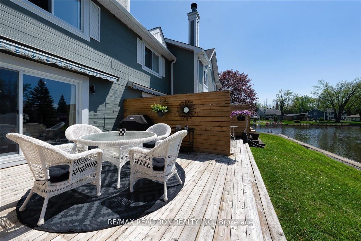 Designer's Own Slice of Heaven - Turn-Key Waterfront Townhouse in Lagoon CityWelcome to this designer's own, fully renovated and impeccably furnished 2-bedroom, 2-bathroom townhouse-a true slice of heaven in Lagoon City's exclusive 10-unit boutique complex. The 2-Storey on 4-2 Laguna Pkwy has 2 bedrooms, 2 bathrooms, and is located in the community of Brechin . Thisturn-key retreat offers breathtaking, unobstructed views of the water, creating the perfect year-round escape or weekend getaway. Step inside to discover a stylish, modern interior where no detail has been overlooked: Smoothceilings, pot-lights, modern renovated kitchen with quartz countertops and stainless stealappliances, custom paint, upgraded bathrooms and much more! From the high-end finishes to theopen-concept living space that flows seamlessly onto your private waterfront new extendeddeck: this home is the epitome of relaxed luxury. Situated in the heart of Lagoon City, a sought-after boating community on the shores of Lake Simcoe, this property offers direct canal access from your doorstep-perfect for boating, kayaking, paddle boarding, or simply enjoying sunset views from the dock. Highlights: Turn-key & furnished - just bring your suitcase Boutique 10-unit complex - quiet, private, and exclusive Designer renovations with high-end finishes throughout Waterfront new deck with stunning views 2 spacious bedrooms & 2 modern bathrooms Parking and locker included Community Perks: Living in Lagoon City means you're part of a picturesque waterfront village known for its network of navigable canals, marinas, private beaches, and walking trails and golf courses nearby. Enjoy a truly unique lifestyle where nature, water, and convenience meet. You're only 20 minutes to Orillia for shopping, dining, and entertainment, and just over an hour from the GTA- making it a perfect escape without the long drive.Whether you're looking for a permanent residence, a weekend retreat, or a smart investment,this property delivers on all fronts.