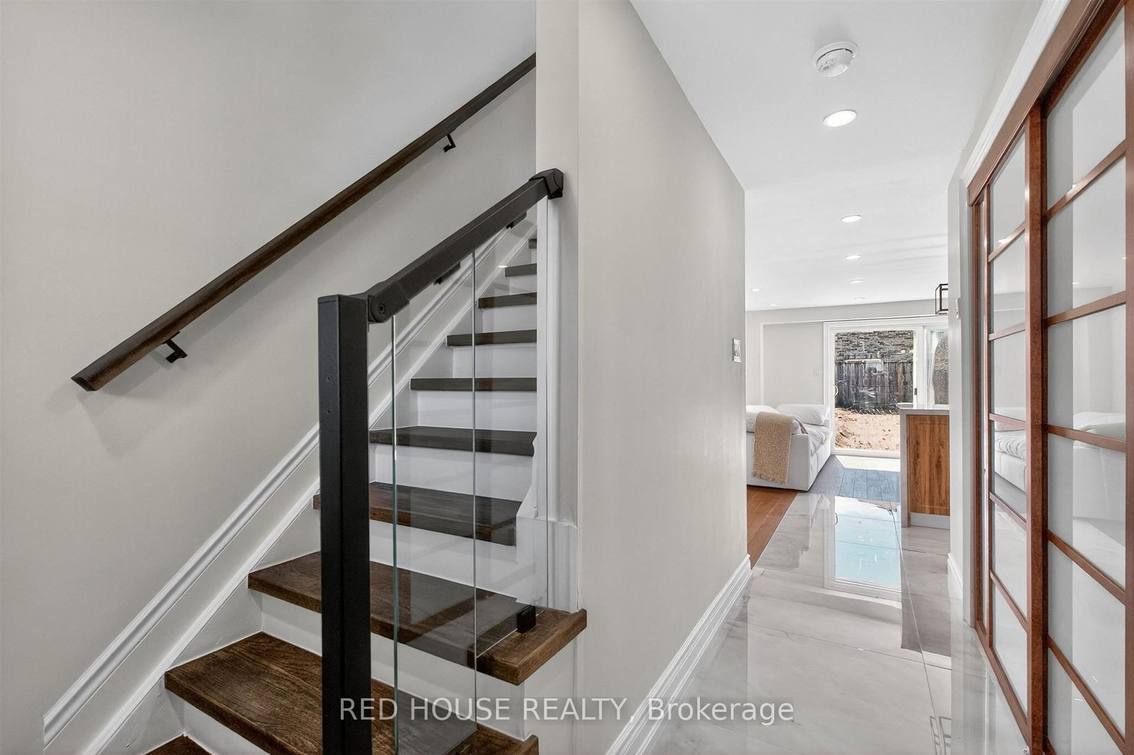 This meticulously upgraded residence where modern design and high-quality finishes come together in a premium offering. The 2-Storey on 283 Dunsmore Lane has 3 bedrooms, 2 bathrooms, and is located on a 109.56 x 22.96 ft lot in the community of Georgian Drive . From the moment you arrive, the expanded front deck enhances curb appeal and creates a welcoming entry. Inside, the home unfolds with a clean, contemporary aesthetic defined by exceptional design and cohesive materials. Hardwood flooring and large format tile runs throughout the principal living spaces. The open-concept layout is bright and inviting, anchored by a stunning kitchen that has been thoughtfully reimagined. The kitchen features striking quartzite countertops and backsplash with a waterfall-style island, paired seamlessly with beautiful custom cabinetry. Stainless steel appliances, a modern range hood, and a designer light fixture complete the space, while the layout flows effortlessly into the dining and living areas-ideal for both everyday living and entertaining. The main floor is enhanced by pot lights throughout. Large sliding doors at the rear allow for natural light to flood the space. The staircase itself is finished with solid wood treads, glass panel railings, and black accents. The washrooms have been elevated to a spa-like standard. The primary bathroom showcases a frameless glass shower enclosure with black fixtures, and a rainfall shower system. A custom vanity with warm wood tones, and vertical slat paneling adds depth. Additional details throughout the home include upgraded interior doors, black lever hardware, and clean trim work. The lower level offers a fully finished, turn-key space with tiled flooring throughout, extending the living area and providing flexibility for recreation, work, or extended family use. Ideally situated in Barrie's sought-after Georgian Drive community, this home offers exceptional proximity to Highway 400, providing access for commuters, while close to a wide range of amenities. Every element has been carefully considered and executed, resulting in a home that is truly turnkey.