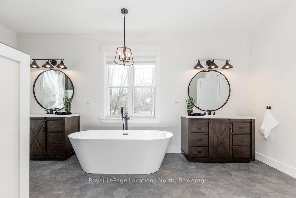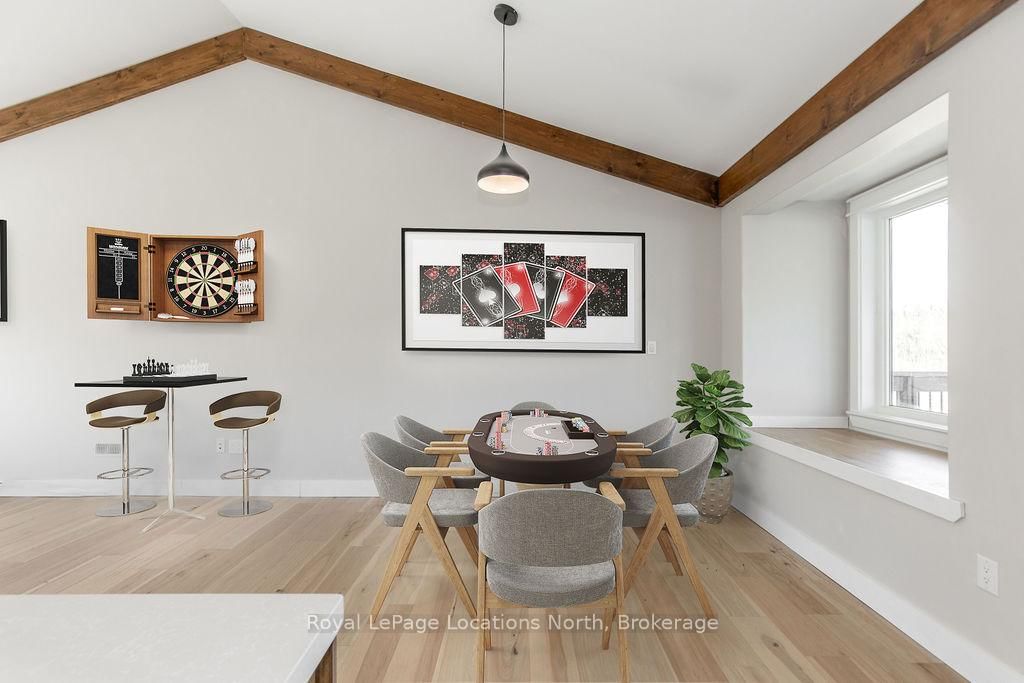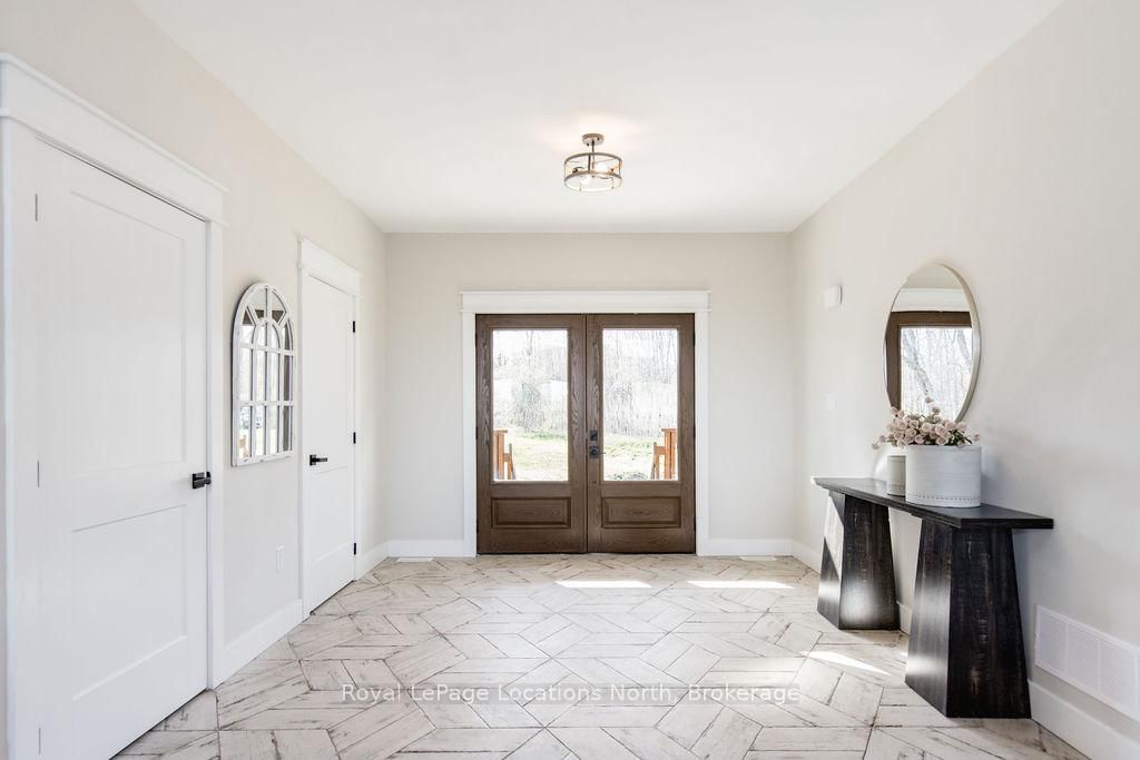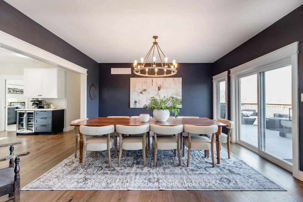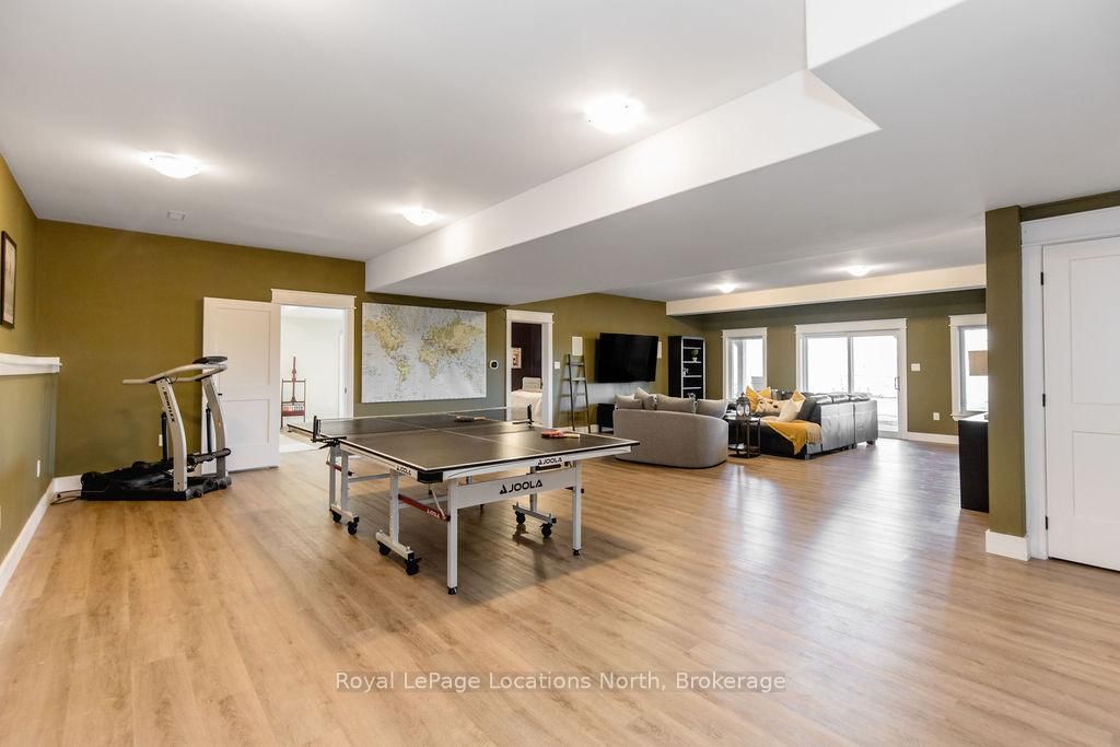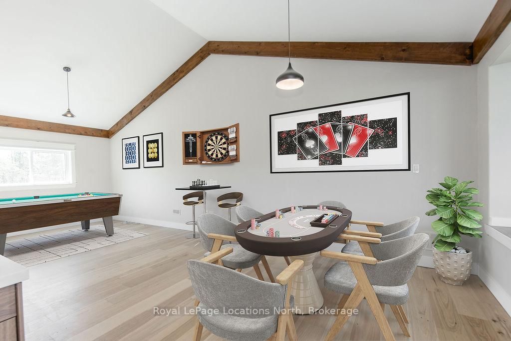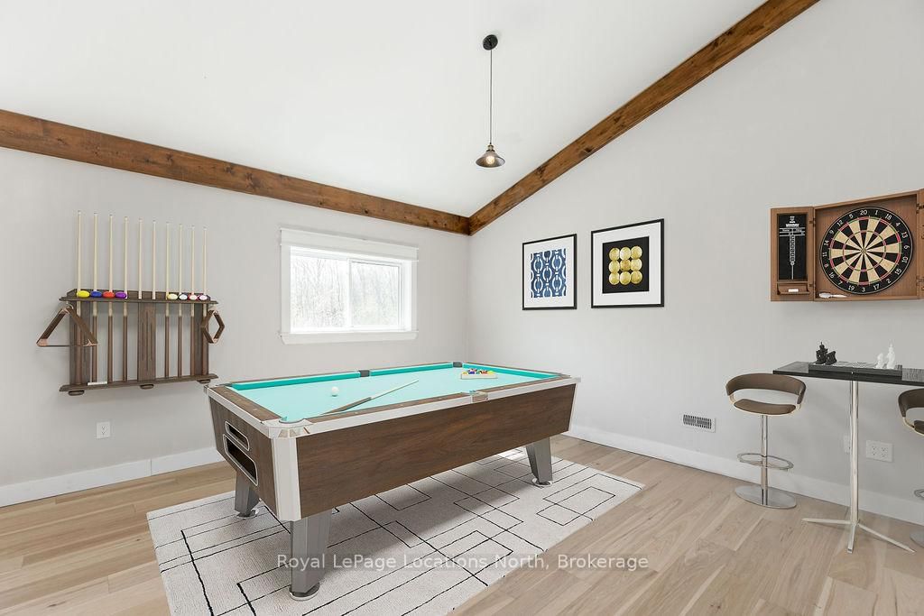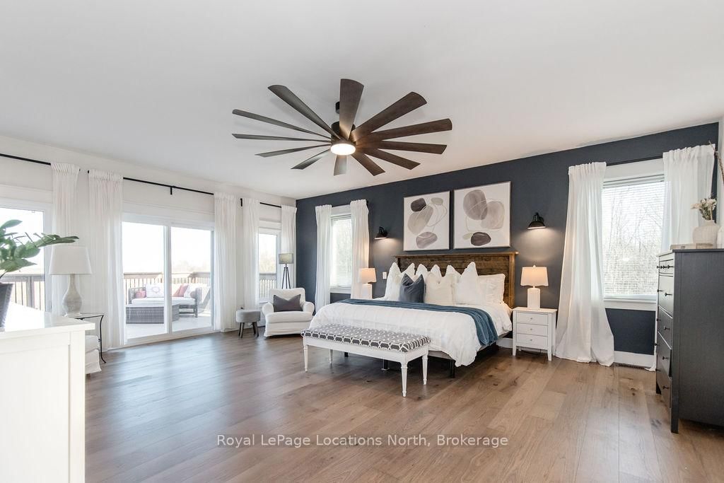 FAMILY COMPOUND | Built in 2022, this expansive 9,000 sqft estate on 100 acres is ideal for multi-generational living, family compound use, or rental income potential. The Bungalow-Raised on 5385 8 Line N has 5 bedrooms, 6 bathrooms, and is located on 100 + acres in the community of Moonstone . The property includes a custom main residence, a legal ranch-style accessory apartment with private laundry & a self-contained loft suite above a heated 4-car garage, offering exceptional flexibility. A grand foyer flows into a stunning living room featuring floor-to-ceiling windows & expansive panoramic views of the acreage. The main home features 3+2 bedrooms, 3 full & 2 half bathrooms, 9' ceilings & engineered hardwood throughout the main level. The great room showcases 19' vaulted ceilings with walk-out access to a covered deck overlooking the pool.The chef's kitchen & formal dining area are designed for entertaining, complete with quartz countertops, oversized custom island, double farmhouse sink, and premium stainless steel appliances. The primary suite is a private retreat with deck access, dual walk-in closets & a spa-inspired 5-piece ensuite featuring a soaker tub, walk-in shower, dual quartz vanity & private water closet.The walk-out lower level includes a large recreation room, two additional bedrooms & a dedicated salon with powder room, ideal for a home business, studio, or professional workspace, finished with durable vinyl plank flooring.The legal accessory apartment offers vaulted ceilings, an open-concept layout, quartz kitchen counters, private covered deck & in-suite laundry - perfect for extended family or income-generating rental use. The loft suite includes a bedroom, 4-piece bath, kitchenette & private deck for guests or independent living.The heated 4-car garage features 10' and 14' ceilings, ideal for car enthusiasts, storage, or workshop use. Outdoors, the 100-acre property supports hiking trails, hobby farming, recreational use, or a private nature retreat. Enjoy a resort-style outdoor setting with a heated 20' x 40' saltwater pool, multiple decks & expansive green space.