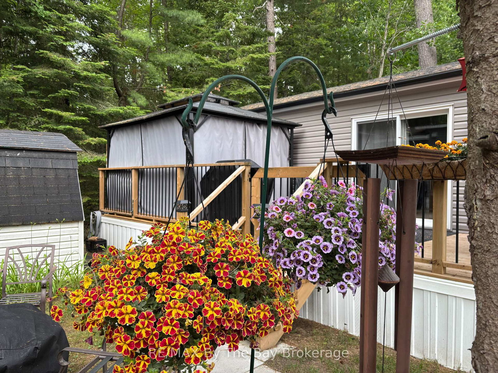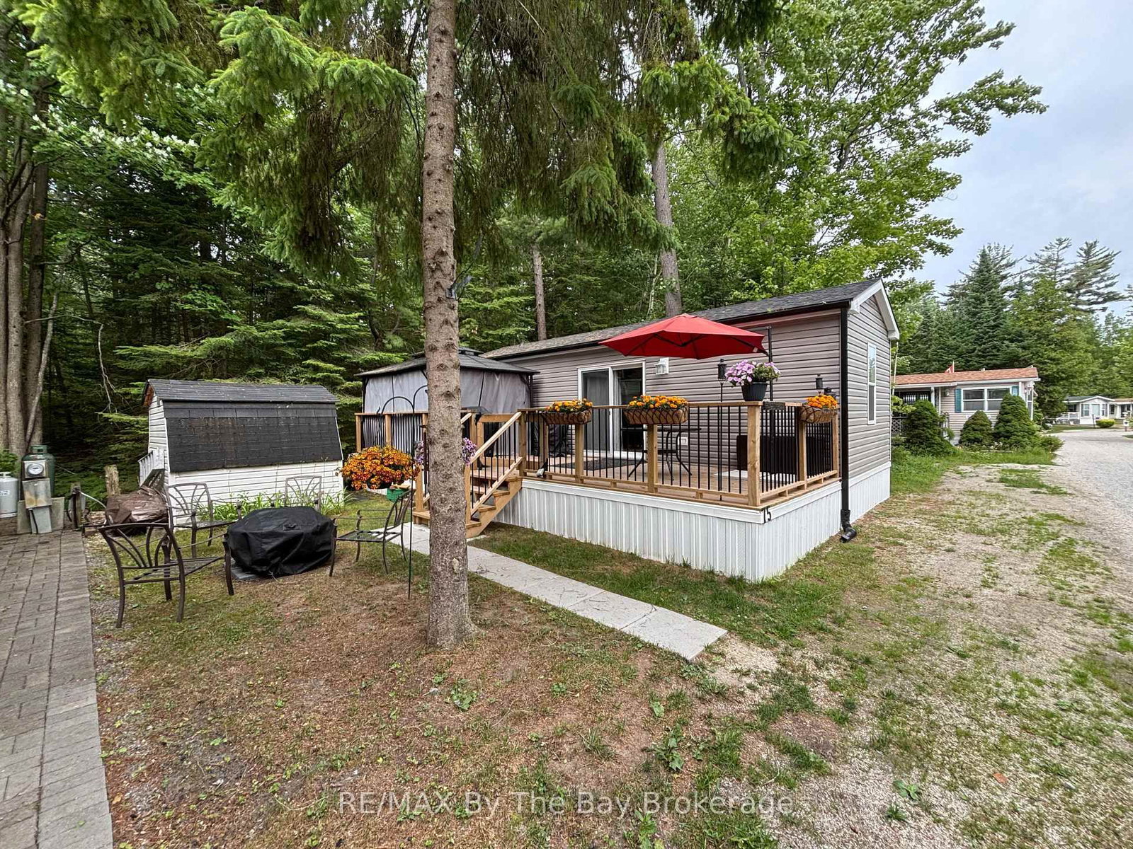 Enjoy breathtaking forest views and a short walk to the beach from this stunning seasonal retreat in the highly sought-after Countrylife Resort! Available for 7 months (May 1st- November 15), this like-new 2023 Northlander offers a perfect blend of comfort and convenience. The Bungalow on 75-85 THEME PARK Drive has 2 bedrooms, 1 bathrooms, and is located in the community of Wasaga Beach . Step onto the spacious full deck, complete with a gazebo, projector, and screen ideal for outdoor movie nights. This prime location provides plenty of space, parking for two cars, and easy access to the Rec Centre, pools, and resort amenities. The beautifully landscaped, low-maintenance yard sits centrally located in the resort with views of the forest, creating a peaceful setting for relaxation. Inside, you will find a bright and airy 2-bedroom, 1-bathroom layout with ample space for family and friends. The primary bedroom features a cozy queen-size bed, while the fully furnished interior boasts central A/C and a well-insulated design for comfort throughout the season. Additional perks include a durable, low-maintenance exterior and a generous storage shed. Countrylife Resort offers an array of top-tier amenities, including pools, a splash pad, a clubhouse, a tennis court, pickle ball, playgrounds, mini golf, and private walking paths leading directly to the beach. This gated community ensures security and peace of mind. Well-maintained and move-in ready, this retreat is an absolute pleasure to show! 2026 seasonal site fees are $6,916 + HST, covering access to all amenities, gated car entry, and exclusive beach access path .Don't miss your chance to own this incredible getaway!