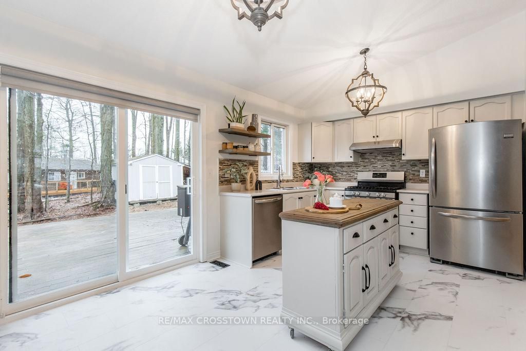 Welcome to 9 Monica Road, set in the highly sought-after community of Sugarbush, where lifestyle meets nature. The Bungalow on 9 MONICA Court has 3 bedrooms, 3 bathrooms, and is located on a 217.49 x 166.14 ft lot in the community of Sugarbush . Located on a quiet dead end street and Surrounded by mature trees and scenic beauty, this spacious 5-bedroom, 3-bathroom home is the perfect fit for a growing family. Set on a spacious lot, enjoy coffee on the front porch, and a 2 car garage with separate entrance. Inside this carpet free home, you'll find a bright and inviting layout that has been recently updated throughout, featuring fresh paint, new kitchen floors, new hardware, and all new lighting. 3 main floor bedrooms, including the primary with ensuite bathroom. The home offers multiple walkouts leading to your private, treed backyard, creating a seamless connection between indoor living and the peaceful natural setting. A cozy wood-burning fireplace adds warmth and charm, perfect for relaxing after a day outdoors. With a finished lower level, there is excellent potential for an in-law suite or multi-generational living with 2 bedrooms, family room and a newly renovated bathroom. Located just minutes to golf courses, skiing, trails, and all that Horseshoe Valley has to offer, this is a rare opportunity to own a home that truly captures the essence of the Sugarbush lifestyle. New Furnace in 2023, roof replaced in 2019 decks built in 2016.