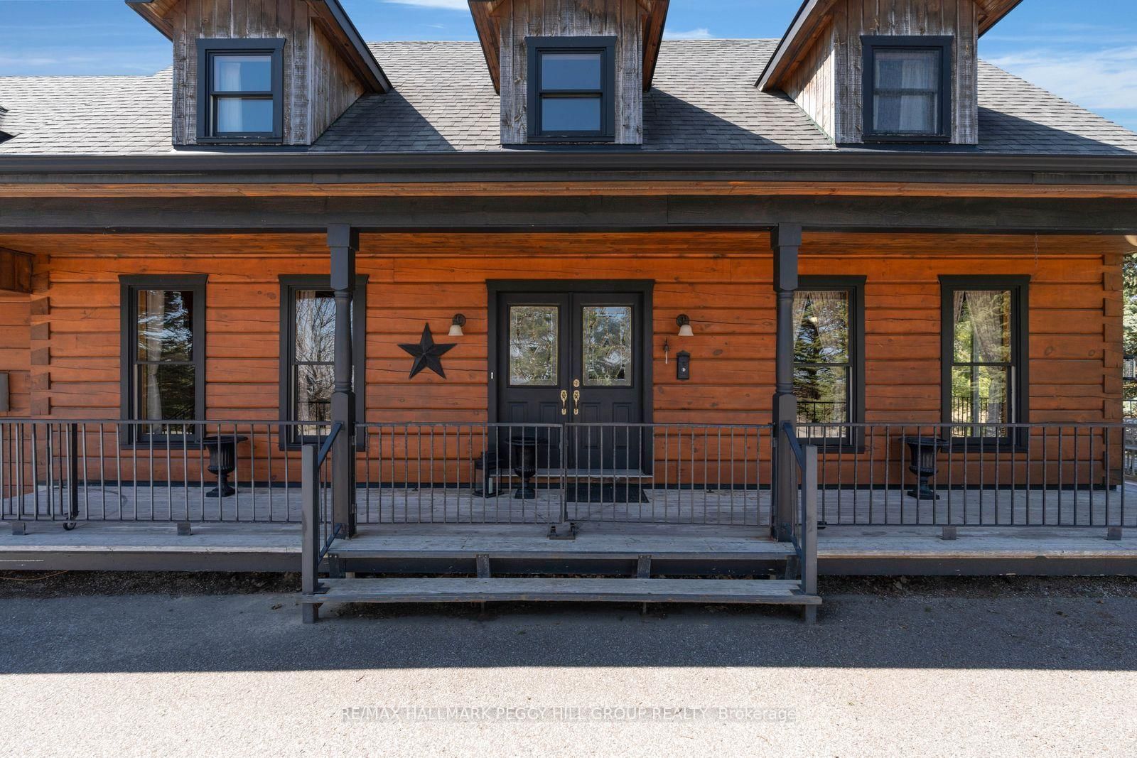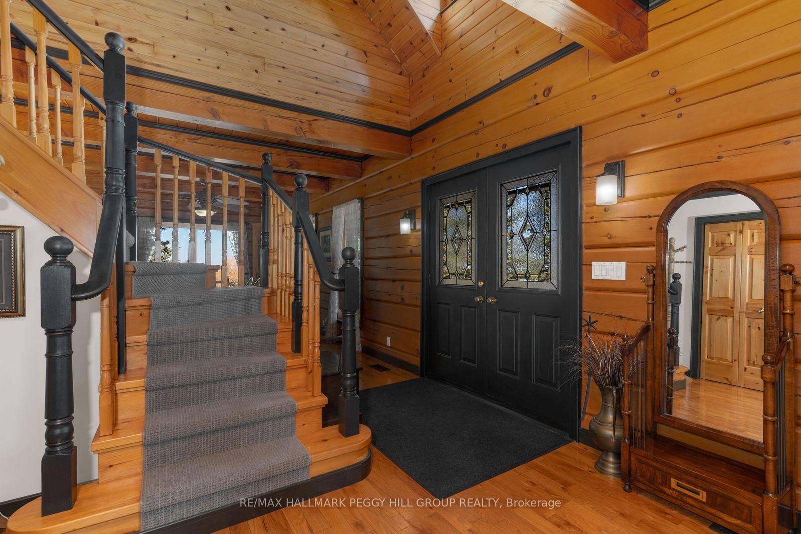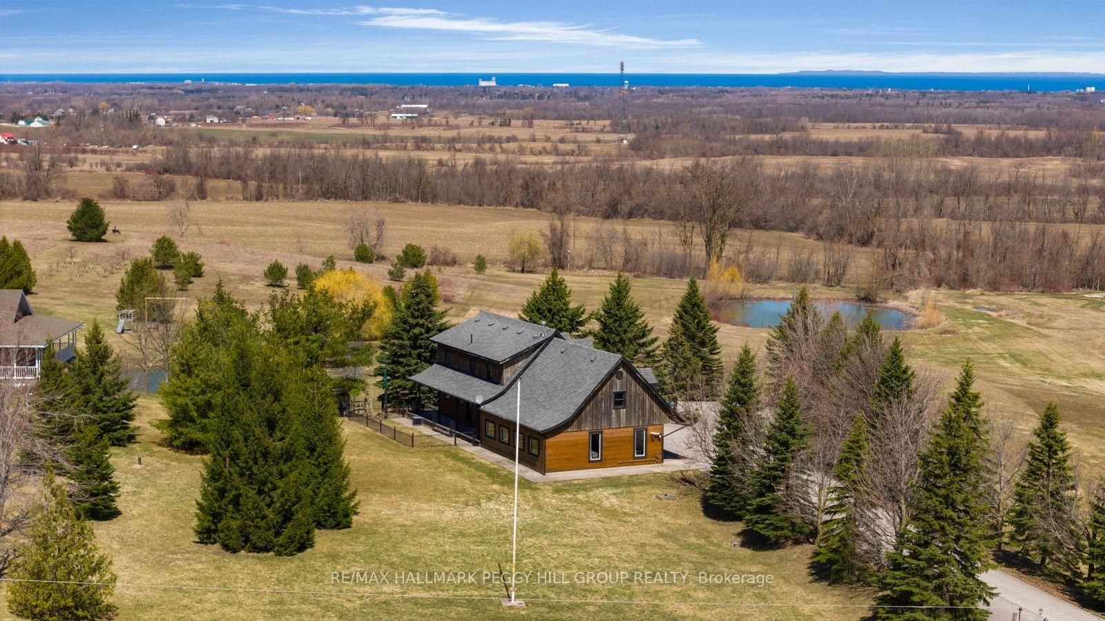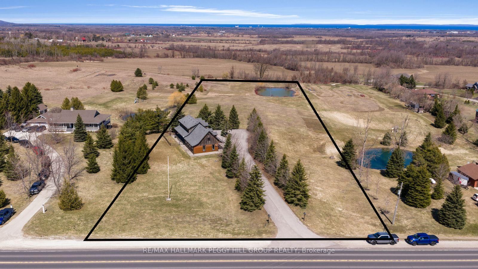 CUSTOM-BUILT LOG HOME ON 4. The 2-Storey on 8886 County Road 91 null has 3 bedrooms, 2 bathrooms, and is located on a 942.05 x 224.6 ft loton 2-4.99 acres in the community of Rural Clearview .86 ACRES WITH GEORGIAN BAY VIEWS, A WRAPAROUND PORCH, & RUSTIC CHARACTER! Perched on 4.86 acres with Georgian Bay stretched out beyond the rolling hillside, this custom-built True North log home proves there is plenty more to admire beyond the view. Beautifully maintained grounds with mature trees, a pond, curated gardens, a fenced dog run, a circular drive, and a generous paved parking area create a memorable arrival, while charming dormer windows, a double door entry, and a wraparound front porch bring even more character to the exterior. Offering almost 1,800 square feet above grade, this custom 2-storey home leans into its rustic character with rich wood finishes, beamed ceilings, a propane fireplace in the living room, oversized windows, and a staircase that adds another layer of craftsmanship. The thoughtfully designed kitchen is finished with extensive wood cabinetry, select glass-front uppers, stainless steel appliances, generous prep space, and a breakfast bar, while the open dining area offers a walkout to the deck. Main floor laundry and a powder room add practical function, while the upper level offers three charming bedrooms with arched wood ceilings and plush broadloom, including a primary with built-in wardrobe storage, all served by a 4-piece bath. The attached oversized 2-car garage has a roughed-in radiant floor heating system and houses the electrical panel wired for portable generator attachment, and the semi-finished loft above adds excellent storage and flexible bonus space, while the lower-level crawlspace houses the mechanicals and offers valuable additional storage. Rustic character, memorable interiors, and a setting that keeps pulling your attention back outside make this #HomeToStay the place you picture long after the showing ends.