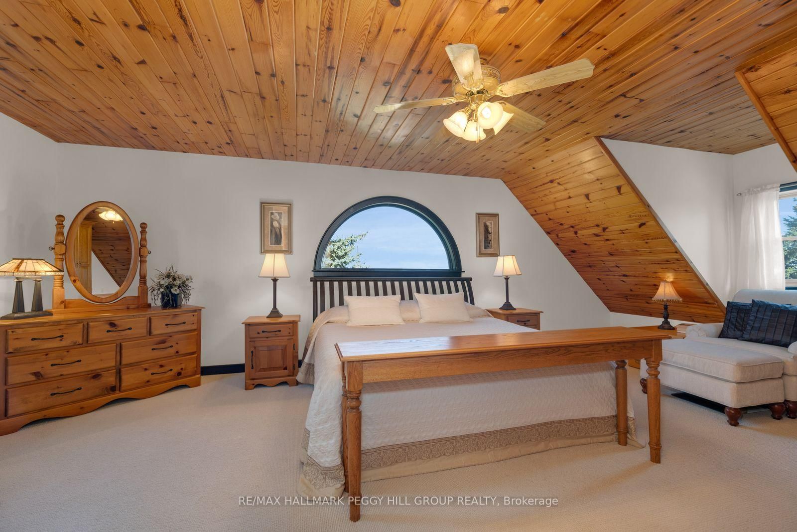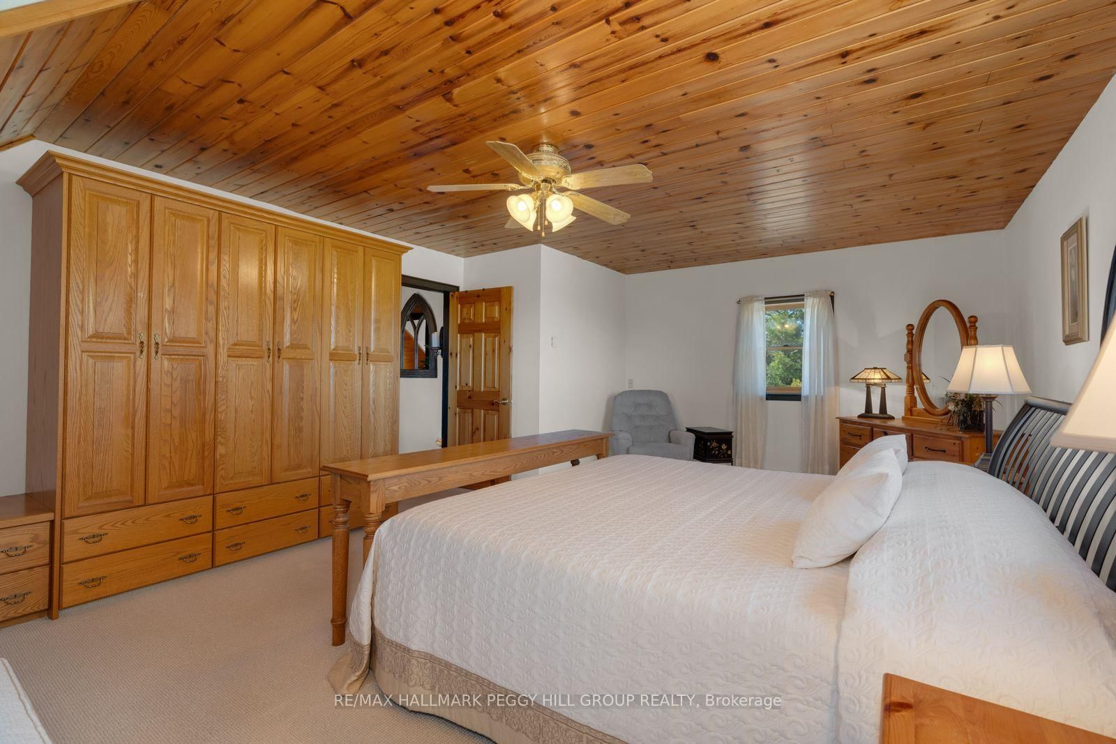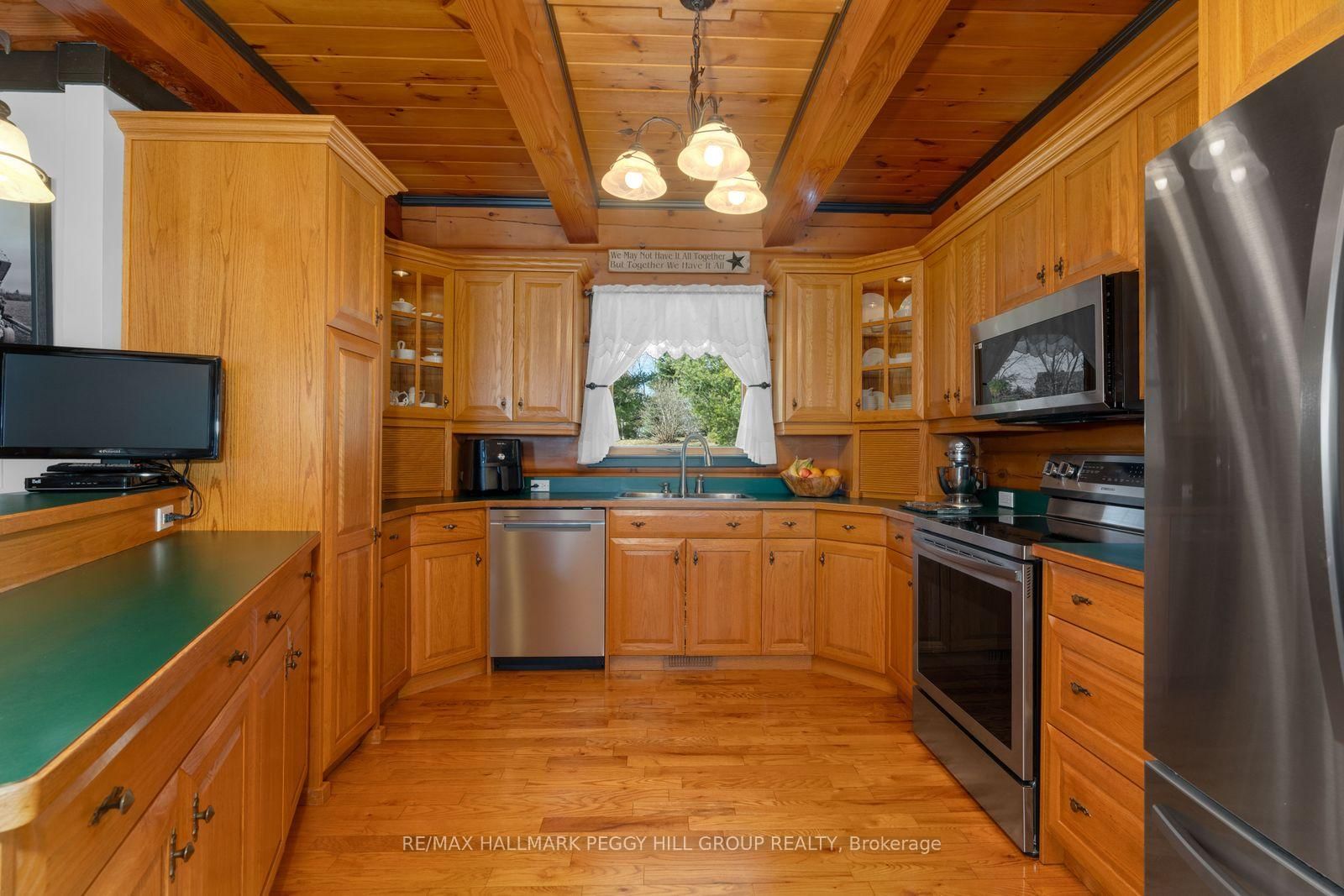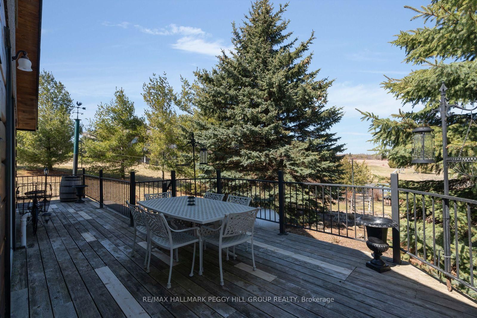 CUSTOM-BUILT LOG HOME ON 4. The 2-Storey on 8886 County Road 91 null has 3 bedrooms, 2 bathrooms, and is located on a 942.05 x 224.6 ft loton 2-4.99 acres in the community of Rural Clearview .86 ACRES WITH GEORGIAN BAY VIEWS, A WRAPAROUND PORCH, & RUSTIC CHARACTER! Perched on 4.86 acres with Georgian Bay stretched out beyond the rolling hillside, this custom-built True North log home proves there is plenty more to admire beyond the view. Beautifully maintained grounds with mature trees, a pond, curated gardens, a fenced dog run, a circular drive, and a generous paved parking area create a memorable arrival, while charming dormer windows, a double door entry, and a wraparound front porch bring even more character to the exterior. Offering almost 1,800 square feet above grade, this custom 2-storey home leans into its rustic character with rich wood finishes, beamed ceilings, a propane fireplace in the living room, oversized windows, and a staircase that adds another layer of craftsmanship. The thoughtfully designed kitchen is finished with extensive wood cabinetry, select glass-front uppers, stainless steel appliances, generous prep space, and a breakfast bar, while the open dining area offers a walkout to the deck. Main floor laundry and a powder room add practical function, while the upper level offers three charming bedrooms with arched wood ceilings and plush broadloom, including a primary with built-in wardrobe storage, all served by a 4-piece bath. The attached oversized 2-car garage has a roughed-in radiant floor heating system and houses the electrical panel wired for portable generator attachment, and the semi-finished loft above adds excellent storage and flexible bonus space, while the lower-level crawlspace houses the mechanicals and offers valuable additional storage. Rustic character, memorable interiors, and a setting that keeps pulling your attention back outside make this #HomeToStay the place you picture long after the showing ends.