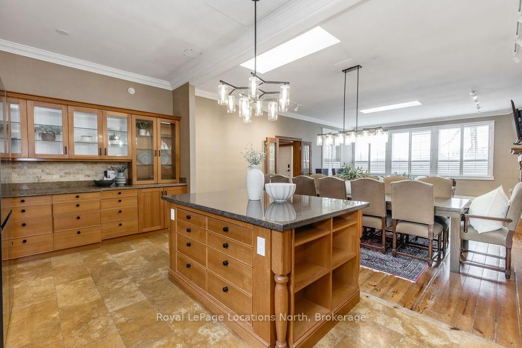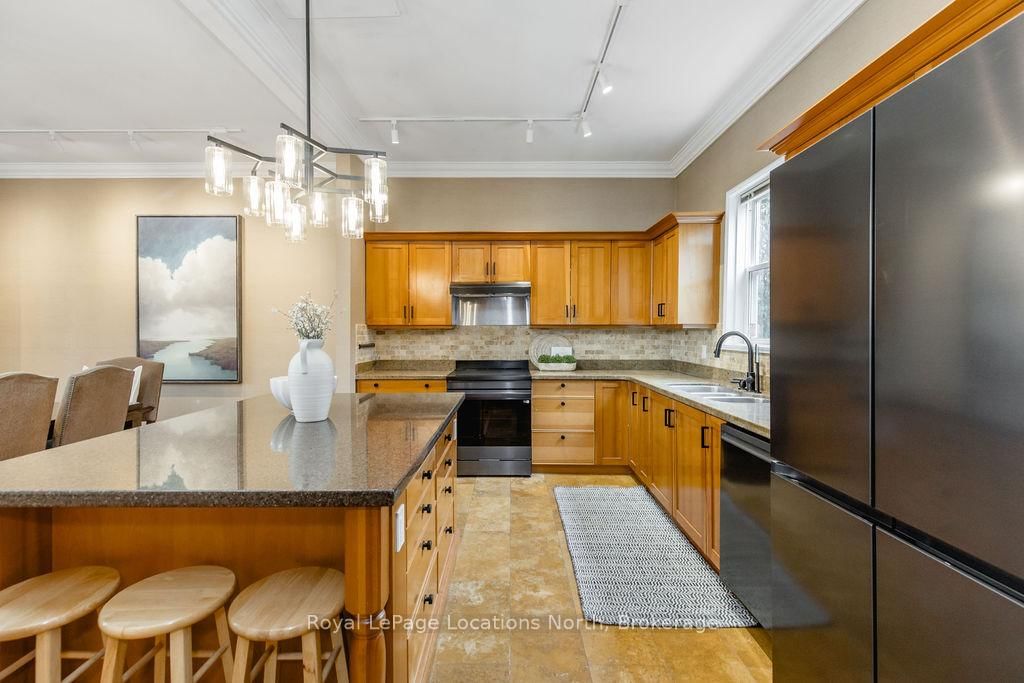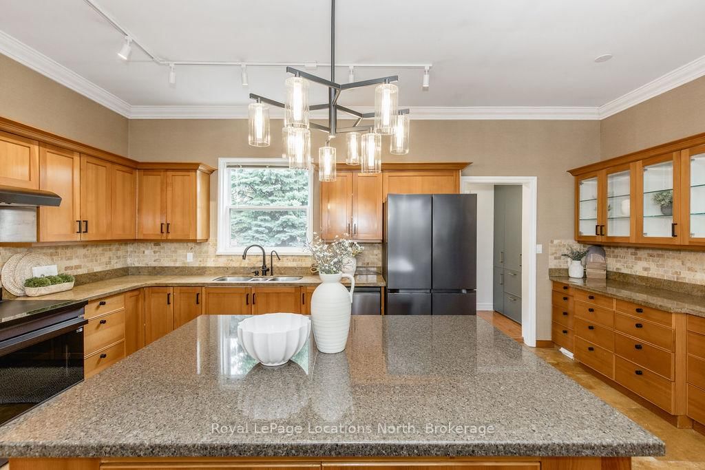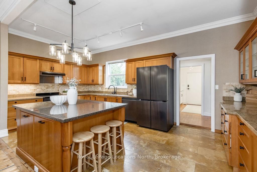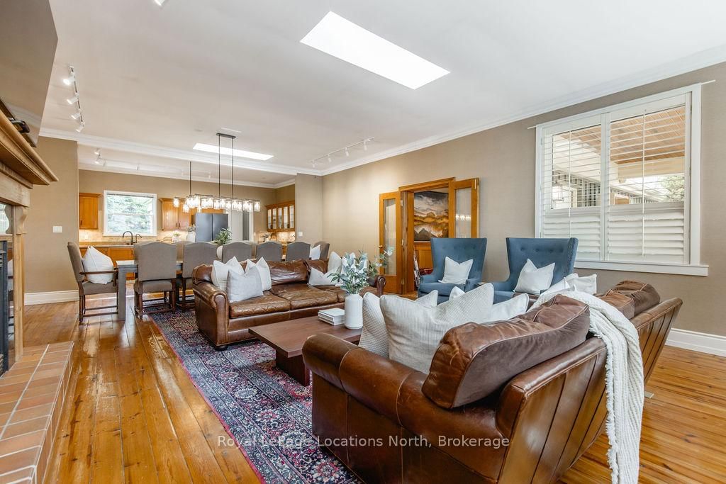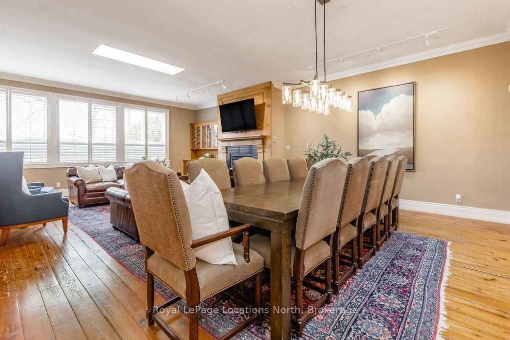Set on a beautifully private rural lot w/ stunning views of Blue Mountain & only 7 minutes from downtown Collingwood, this charming ranch bungalow offers the perfect blend of character, space & peaceful country living w/ 5 beds & 4 baths to accommodate extended families or many guests. The Bungalow on 795853 Grey 19 Road has 5 bedrooms, 4 bathrooms, and is located on a 268.62 x 91.37 ft lot in the community of Collingwood . Backing onto the serene Silver Creek, the property is surrounded by mature willow trees, lush gardens & natural beauty, creating a setting that feels like your own private retreat. This spacious home offers a large executive foyer & convenient powder room. Through elegant French doors, the Great Room truly lives up to its name, stretching 38 ft long w/ 10 ft soaring ceilings, skylights & a stunning gas fireplace framed w/ custom wood moldings. The included, oversized, leather couches & huge dining table make you feel like you are in a grand lodge. Designed for gathering, the formal dining area easily accommodates the 12-seat table, perfect for hosting family dinners, holidays & weekend get-togethers. The updated kitchen features brand new black stainless steel appliances, two built in pantries, built-in desk workspace & a large island. Continue through the pantry to access the large covered porch & your BBQ. The primary suite is thoughtfully set down its own private hallway, offering a 3PC ensuite & oversized his-&-hers closets complete w/ custom built-in wardrobes. Additional upgrades include custom LED lighting throughout, new built-in wardrobes in bedrooms & a newly created laundry room/mud room. Step outside to a covered back porch overlooking the picturesque yard & river. Spend your evenings entertaining by the water, where you can watch salmon & trout swim by. A large storage barn provides a place to keep all of your toys & extra things & the property provides potential for a future carriage house or guest suite, ideal for extended family or additional income. Whether you're looking for a full-time country home, a ski chalet getaway, or a summer escape, this property has it all.
