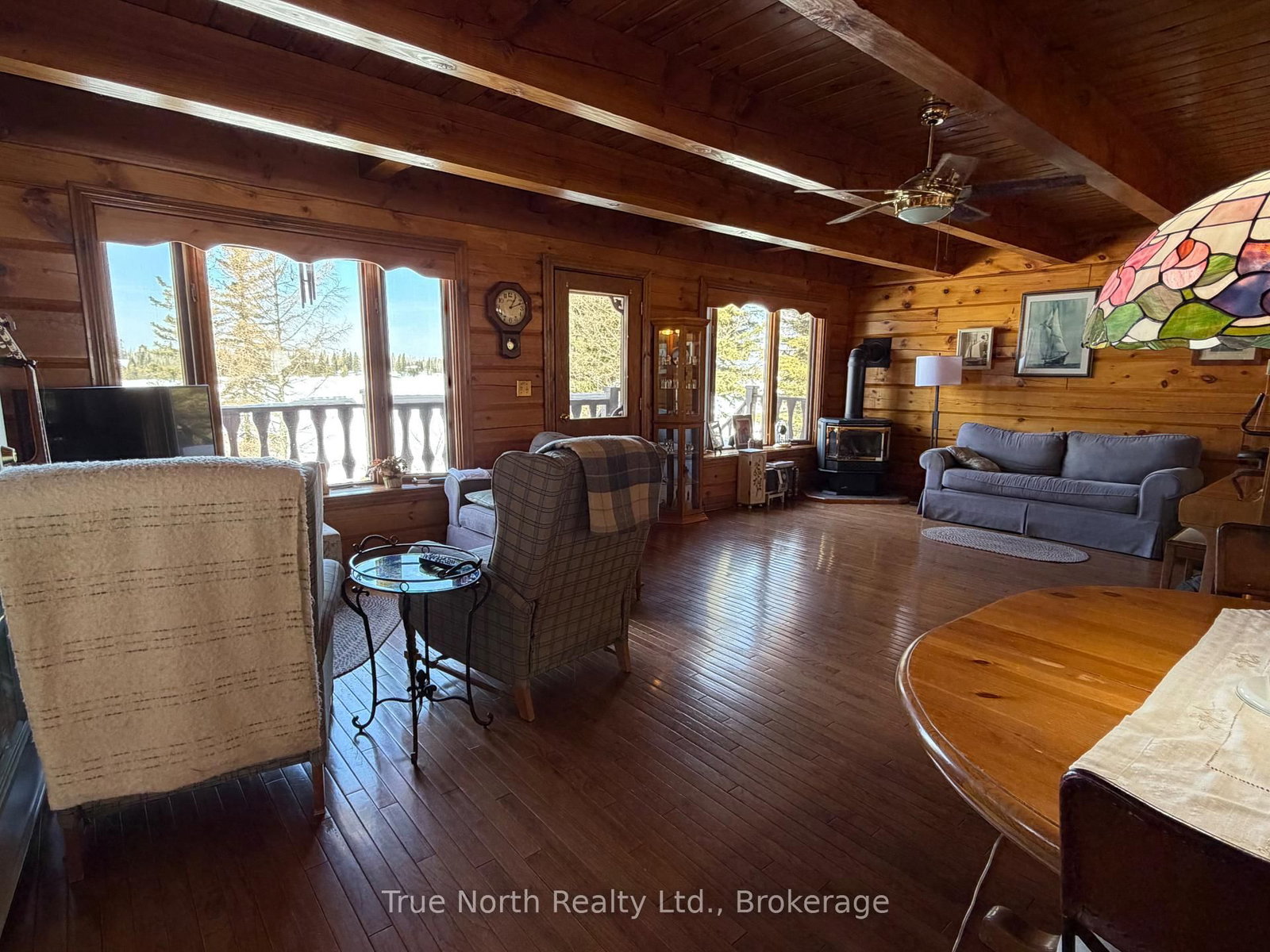 This log home on Remi Lake offers year-round access on a paved road and a functional 2-bedroom layout, making it a great opportunity for those looking to enjoy lakefront living. The 1 1/2 Storey on 65A Remi Lake Road has 2 bedrooms, 2 bathrooms, and is located on a 209.74 x 105.61 ft lot in the community of Kapuskasing . The main and second floor feature hardwood floors, adding warmth and character throughout, along with a propane fireplace and supplementary electric heat. The home includes a 4-piece bathroom and an additional 3-piece bathroom, along with the convenience of main floor laundry. An all-season sunroom overlooking the lake provides a bright and relaxing space to enjoy the views year-round. The walkout basement offers additional usable space and easy access to the outdoors. Enjoy beautiful lake views from the multi-tiered deck, complete with a hot tub, creating the perfect space for relaxing or entertaining. The property also features 2 docks, a large driveway, and a storage shed for added practicality. Additional features include a septic system and a tin roof. A well-maintained waterfront property offering a great combination of comfort, functionality, and outdoor living on Remi Lake.