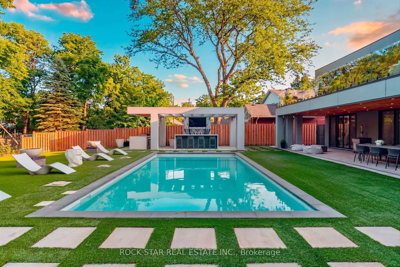 Modern Luxury Meets Architectural Brilliance at 370 Goodram Drive - Step into the pinnacle of modern design effortless entertaining at 370 Goodram Drive, a custom estate crafted by renowned luxury developer Alejandro Bauza & designer Marcia Bauza of Casa Bauza. The 2-Storey on 370 Goodram Drive has 4 bedrooms, 5 bathrooms, and is located on a 141 x 75 ft loton < .50 acres in the community of Shoreacres . This architectural masterpiece spans 4,282 SF of impeccably finished living space, situated on an oversized ravine lot that seamlessly blends nature with contemporary elegance.The exterior is a visual triumph with its sleek stucco, natural wood accents, & tinted glass garage door. The finished garage elevates functionality with epoxy floors & LED strip lighting. Inside, the home is an entertainers dream. A statement gas fireplace framed by striking porcelain slabs creates a dynamic focal point, dividing the living & family roomsboth adorned with engineered hardwood, integrated Bluetooth speakers, & automated blinds.The chefs kitchen is a masterpiece of form & function, anchored by a 10-ft dark grey quartz waterfall island. Complete with a wine display, high-end appliances, & LED accents, its the ultimate space to host or unwind. Ascend the dramatic iron staircase with quartz treads to a 20-ft ceiling, skylights, & oversized windows that flood the space with natural light.The primary suite redefines luxury, featuring white oak floors, a barn wood feature wall, & an en-suite sanctuary with double sinks, a large shower, & a soaking tub. Step out onto the private balcony to enjoy breathtaking views of your personal oasis below.Out back, the low-maintenance yard invites unparalleled relaxation & entertainment. Dive into the 16x32 pool with color-changing jets, host in the fully-equipped 20x16 cabana, or fire up the gas BBQ for an al fresco feast. A smart panel system lets you control outdoor settings effortlessly, ensuring every detail is perfect for gatherings or quiet retreats. A flawless blend of cutting-edge architecture, luxurious features, setting the stage for a lifestyle of sophistication style.