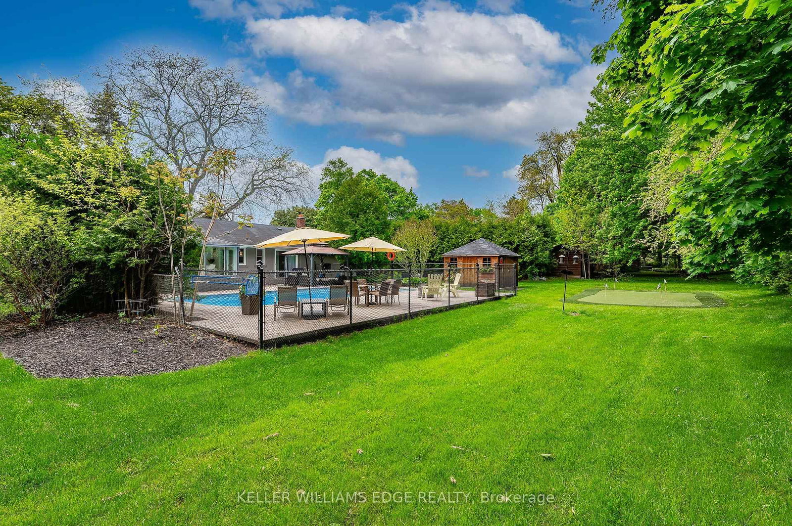 Set on an expansive 100 x 175 ft lot on a quiet, tree-lined cul-de-sac, this property presents an exceptional opportunity in the prestigious Mineola East neighbourhood. The Bungalow on 1589 Crediton Pkwy has 3 bedrooms, 3 bathrooms, and is located on a 175 x 100 ft lot in the community of Mineola . Simply move in and appreciate the solid craftsmanship of the home's original era on this beautifully landscaped private footprint or explore the potential of RL zoning future development options. This move-in ready 3+1 bedroom, 2.5 bathroom bungalow features an updated open concept kitchen that's a chef's dream with granite countertops, a large granite island and stainless steel appliances including a gas stove. Just off the kitchen, the sunroom offers a bright and inviting seating area with large windows and a walk out to your own backyard oasis complete with a fenced inground pool, multiple lounging areas that are perfect for entertaining and even your own putting green. Mature trees surround the property providing exceptional privacy and a serene atmosphere.The finished basement features a separate entrance complete with a bedroom that has 2 closets, a full bathroom, recreation/family room and a kitchenette that has room for a table - perfect for guests or an in-law suite. Enjoy easy access to Lake Ontario, the harbour marina, yacht club, scenic waterfront trails, parks, and private golf courses. Located near some of Mississauga's top-rated schools and just a short drive to Toronto and Pearson Airport with convenient access to the QEW, 427, GO Station, and the upcoming LRT - a commuter's dream. Also just minutes from the vibrant heart of Port Credit, home to excellent restaurants, boutique shopping and lively seasonal festivals. Many updates over the years including exterior weeping tile, chimney, 200 amp panels (3), driveway and more