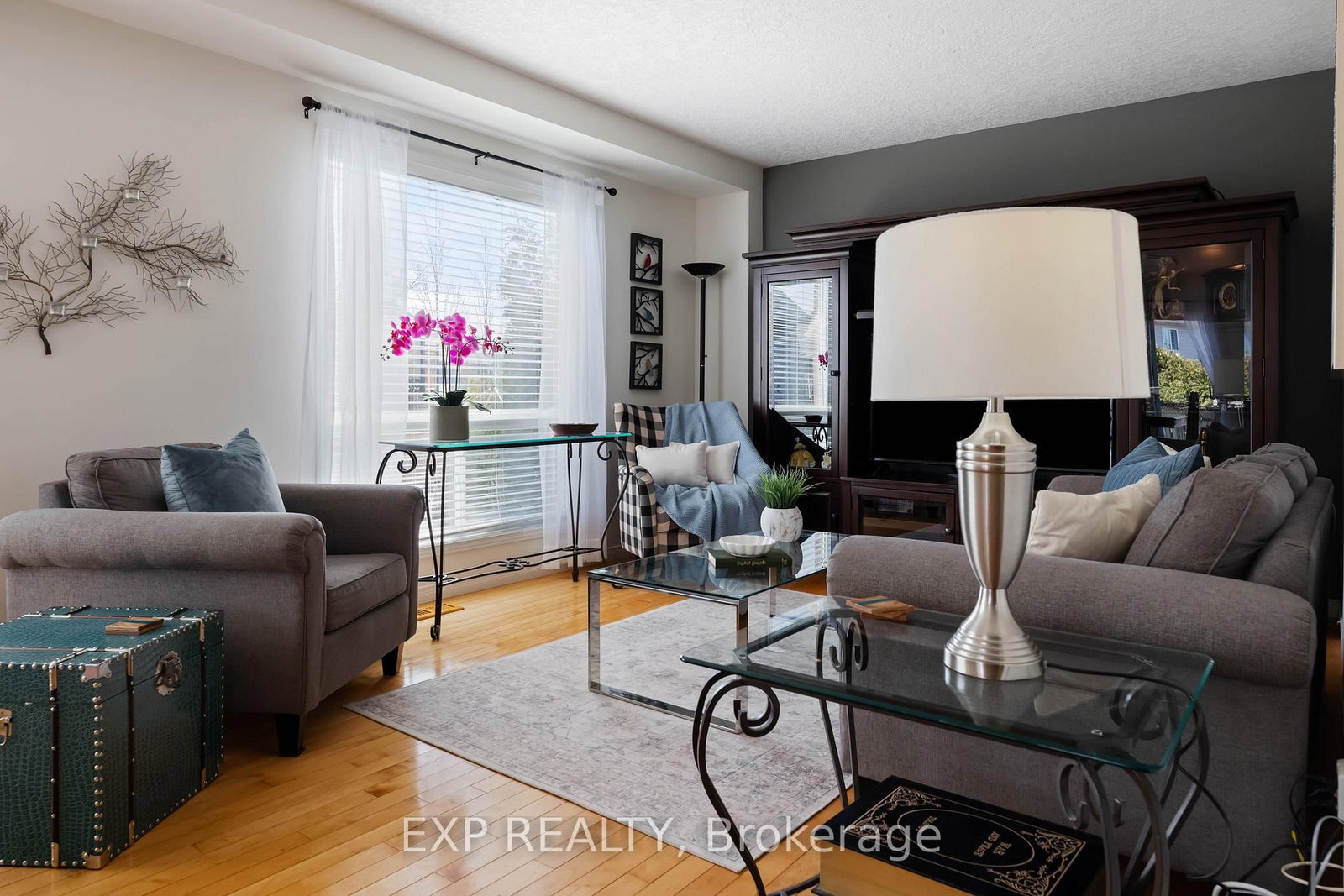 • Living Room: hardwood floor, Large Window, W/O To Garage
