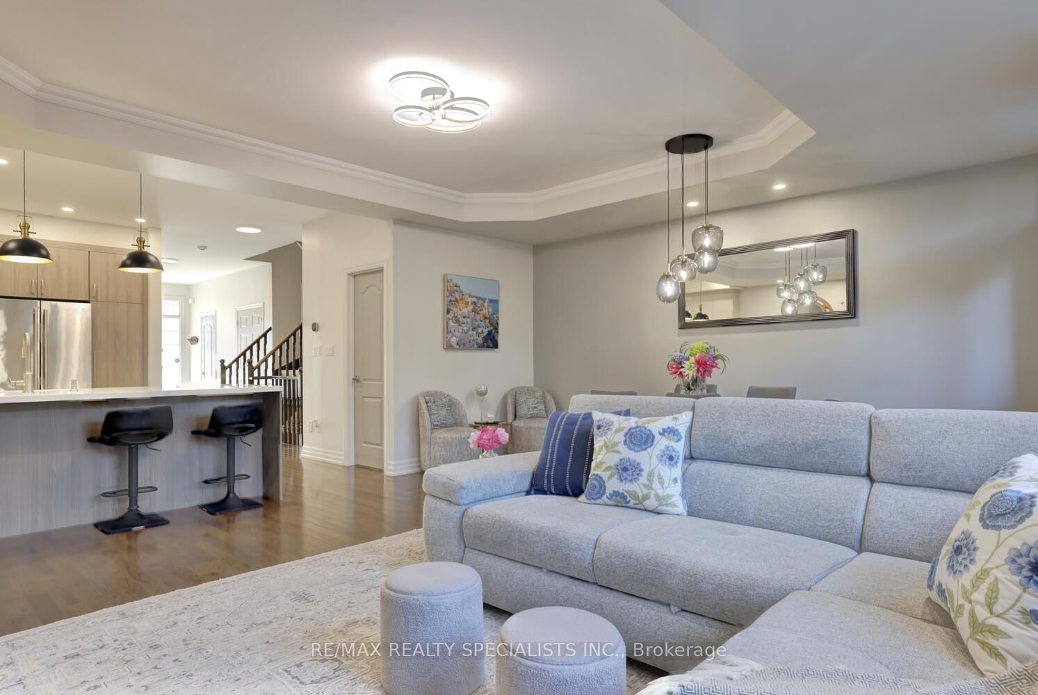 Gorgeous executive Streetsville townhome with over $150,000 spent in 2025 with approximately 2900 square feet, 9 foot ceilings, and backing onto the Credit River with ravine views. The 3-Storey on 8-85 Church Street has 4 bedrooms, 5 bathrooms, and is located in the community of Streetsville . Spacious living/dining room area with oak hardwood floors, coffered ceilings, crown moulding, led pot lighting, gas fireplace with custom mantle/new marble surround, and walk-out to patio area. Renovated open concept custom gourmet kitchen (2025) with high-end stainless steel appliances/hood, Italian porcelain 2' by 4' tiled floors, quartz counter tops/backsplash, abundance of soft closing cabinetry/drawers, iSpring water filtration system, under cabinet lighting, large walk-in pantry with cabinetry/lazy Susan, led pot lighting, and breakfast bar. Renovated 2 piece powder room (2025) with floating vanity, Italian porcelain 2' by 4' floors in entrance foyer, updated light fixtures, interior entrance to garage, featuring 4 bedrooms and 5 bathrooms. Primary bedroom retreat overlooking ravine with double door entry, his/her walk-in closets with organizers/pull-out drawers, renovated 5 Piece en-suite (2025) with his/her sinks with quartz counter top, soaker tub, walk-in glass shower with rain shower head and hand held spray. Vinyl 9mm flooring throughout all 2nd floor bedrooms/hallway,convenient 2nd floor laundry adjacent to Primary bedroom with front load Samsung steam washer/dryer,3rd bedroom with new built-in closet,2nd bedroom with large double closet, 4 piece semi en-suite with new vanity and quartz counter top. Third floor open concept family room/loft overlooking the ravine with gas fireplace,4th bedroom with closet, billiard table/all equipment,3 skylights,large 3 piece bathroom with walk-in shower/bench seating,new vanity,& privacy toilet area. Finished basement with large recreation room/exercise room,3 piece bathroom, generous size storage area,& cold cellar. Premium location close to schools,parks,trails,hockey/skating,transit,highways,shopping,restaurants,& Streetsville Go Station