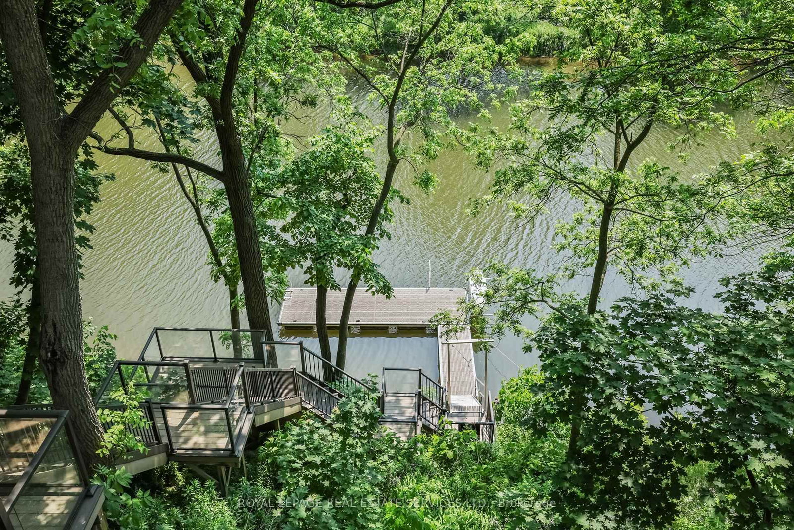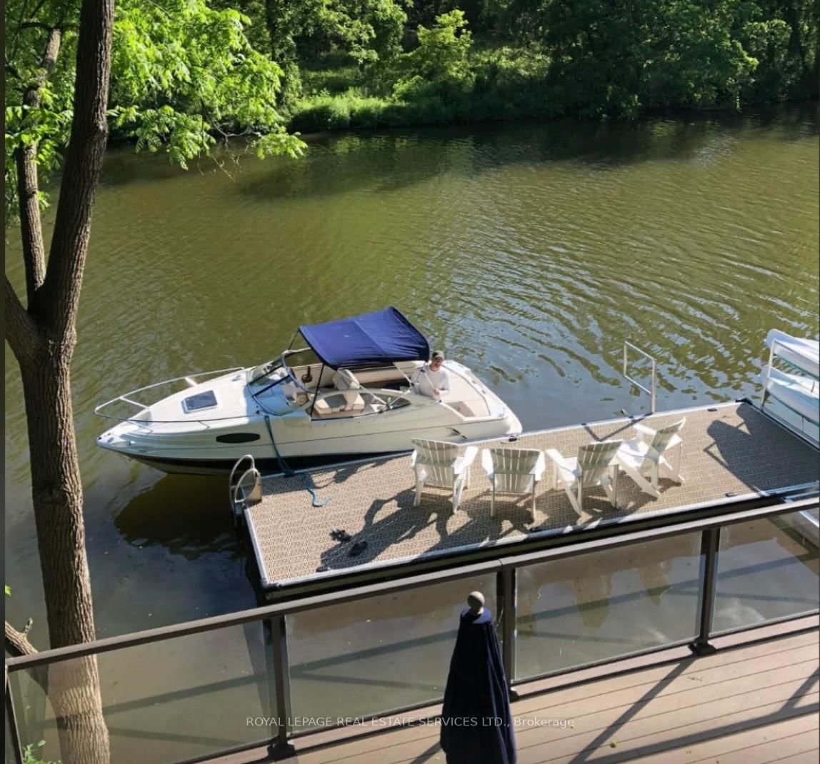 Private, elevated, and unlike anything else in Old Oakville - A true four-season outdoor retreat, your private playground for the outdoor enthusiast-where each day invites skating, paddling, kayaking, hiking, fishing, boating and cross-country skiing, alongside wildlife watching and refined al fresco dining, embracing nature in all its seasons. The Bungaloft on 382 Trafalgar Road has 2 bedrooms, 4 bathrooms, and is located on a 107.47 x 122.6 ft lot in the community of Old Oakville . This lofted waterfront residence commands breathtaking views and unmatched privacy along the tranquil 16 Mile Creek. A testament to craftsmanship and design, this waterfront retreat boasts exclusive riparian rights and a private dock, inviting you to embrace the beauty of Oakville's scenic waterways year-round. .A meticulous 2016 renovation elevated this residence with rich hand-scraped oak floors, solid wood doors, custom millwork, and elegant tray ceilings. The sprawling 1,700 sq. ft. premium Wolf PVC deck includes a hot tub oasis, integrated fire table, and motorized awnings, leading to a dock with a kayak launch, swim ladder, and floating dock. Glass-encased staircases on helical piers deliver striking architectural presence and unbroken sight lines to the creek. Inside, sophistication defines every detail. Floor-to-ceiling windows in the living room frame stunning ravine views and dramatic sunsets, while a gas fireplace with a live-edge mantel adds warmth. The chef's kitchen impresses with a leathered Taj Mahal quartzite island, Wolf and Miele appliances, and an integrated Sub-Zero fridge. Heated floors run throughout, including in the spa-like primary ensuite with marble floors, a rain shower, and double vanity. The lower level offers a linear fireplace, built-in bar, and walkout to the deck. A concrete-lined storage room playfully known as the Bomb Shelter provides additional functionality. Blending natural beauty, refined design, and year-round outdoor living, this one-of-a-kind property is just steps to downtown Oakville and the GO Train offering luxury, serenity, and convenience in equal measure.