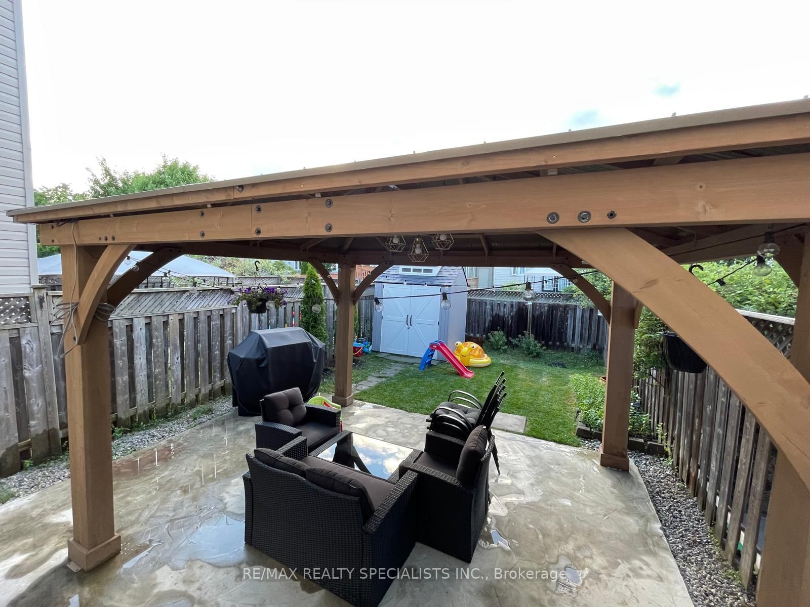 Ideal Opportunity for First Time Buyers & Growing Families** Freehold Beautiful 2-storey townhome located in Milton's desirable Dempsey neighborhood** Offering a functional open-concept main floor layout** Bright Living and Dining area** Practical kitchen design with Stainless Steel Appliances, brand new dishwasher & Granite Countertop** 3 Generous size Bedrooms on the upper level** The fully finished basement has full washroom & an additional room that can be used as a bedroom, office, or recreational space-ideal for extended family or a private workspace ** The property also offers an attached garage with inside entry and parking for two additional cars on the driveway** Step outside to a private backyard complete with a large gazebo, perfect for entertaining, and a storage shed for additional storage** No POTL Fee** Conveniently situated minutes from Hwy 401, GO transit, schools, parks, shopping centres, libraries, and a wide range of amenities** A great opportunity to own in one of Milton's most accessible and family-friendly neighbourhoods. The 2-Storey on 203 Sherwood Road has 3 bedrooms, 3 bathrooms, and is located on a 100.07 x 21 ft lot in the community of Dempsey