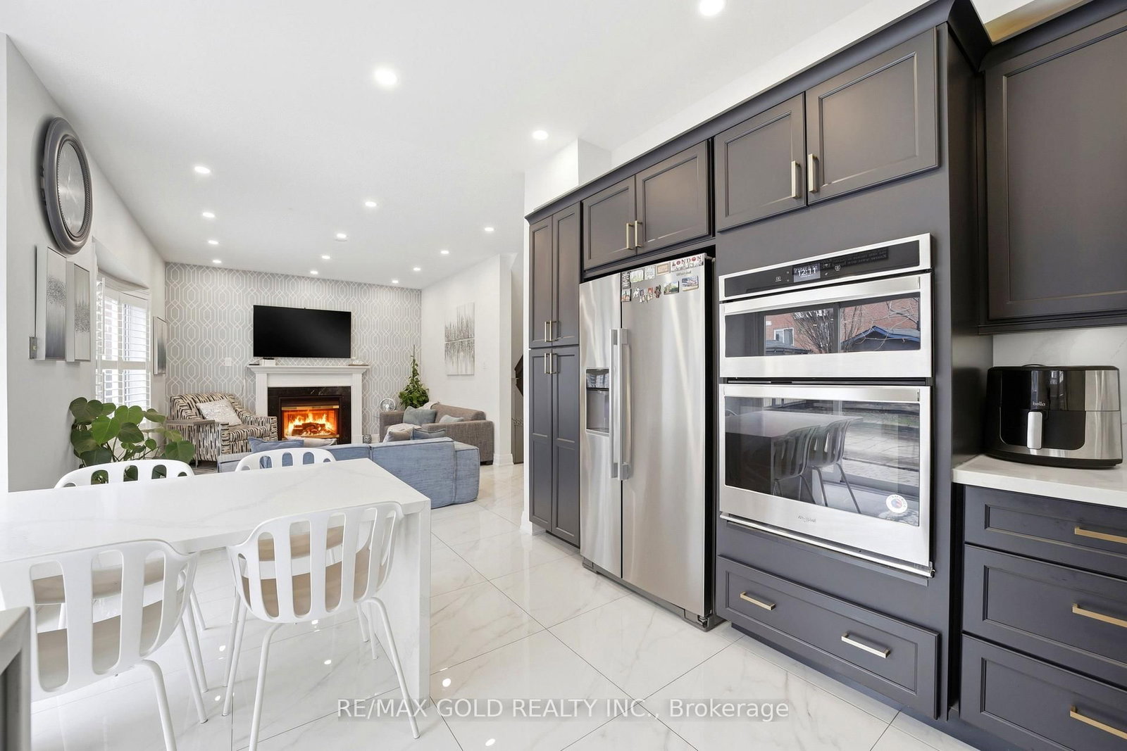 • Family Room: Fireplace, Large Window, Pot Lights