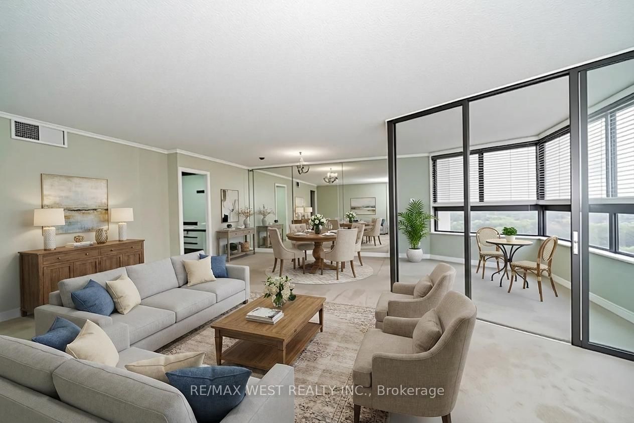 Enjoy expansive skyline views from this spacious 1,327sf 2 bedroom 2 full bathroom suite at the prestigious Applewood Landmark. The Apartment on 1709-1300 Bloor Street has 2 bedrooms, 2 bathrooms, and is located in the community of Applewood . This suite is thoughtfully designed with generous principal rooms and showcases an open-concept living and dining area plus a bright solarium that offers an extension to the living space and is perfectly suited for morning coffee, quiet reading, or a refined home office. The updated kitchen features a pantry, ample cabinetry, under cabinet lighting and a cozy breakfast area. Relax in the generous primary retreat with 3-piece ensuite bath, large huge and additional built-in storage. The second bedroom is beautifully enhanced by custom storage and a built-in Murphy bed making the space ideal for guests. A 4-piece main bath, ensuite laundry, dedicated storage, and one underground parking space complete the suite, plus all utilities and Internet are included in the maintenance fee. The Applewood Landmark offers an extensive list of amenities such as 24hr concierge security, Rooftop Deck, Indoor Rooftop pool and Whirlpool, Party rooms, Guest Suite, Electric Vehicle charging stations, Car wash area plus vacuum and air pump, Convenience Store, Gym with separate Male and Female Exercise rooms, Sauna, Pickleball court, Tennis Court, Shuffleboard, Billiards Rooms, Boardroom, Craft Room, Woodworking shop and golf practice area to name a few. Some photos are virtually staged.