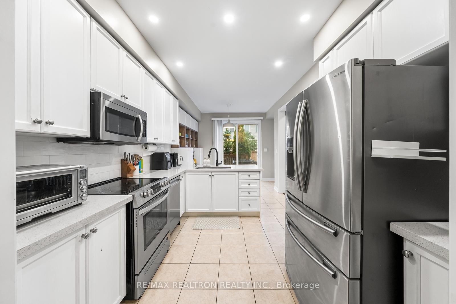 • Kitchen: Tile Floor, Quartz Counter, Eat-In Kitchen