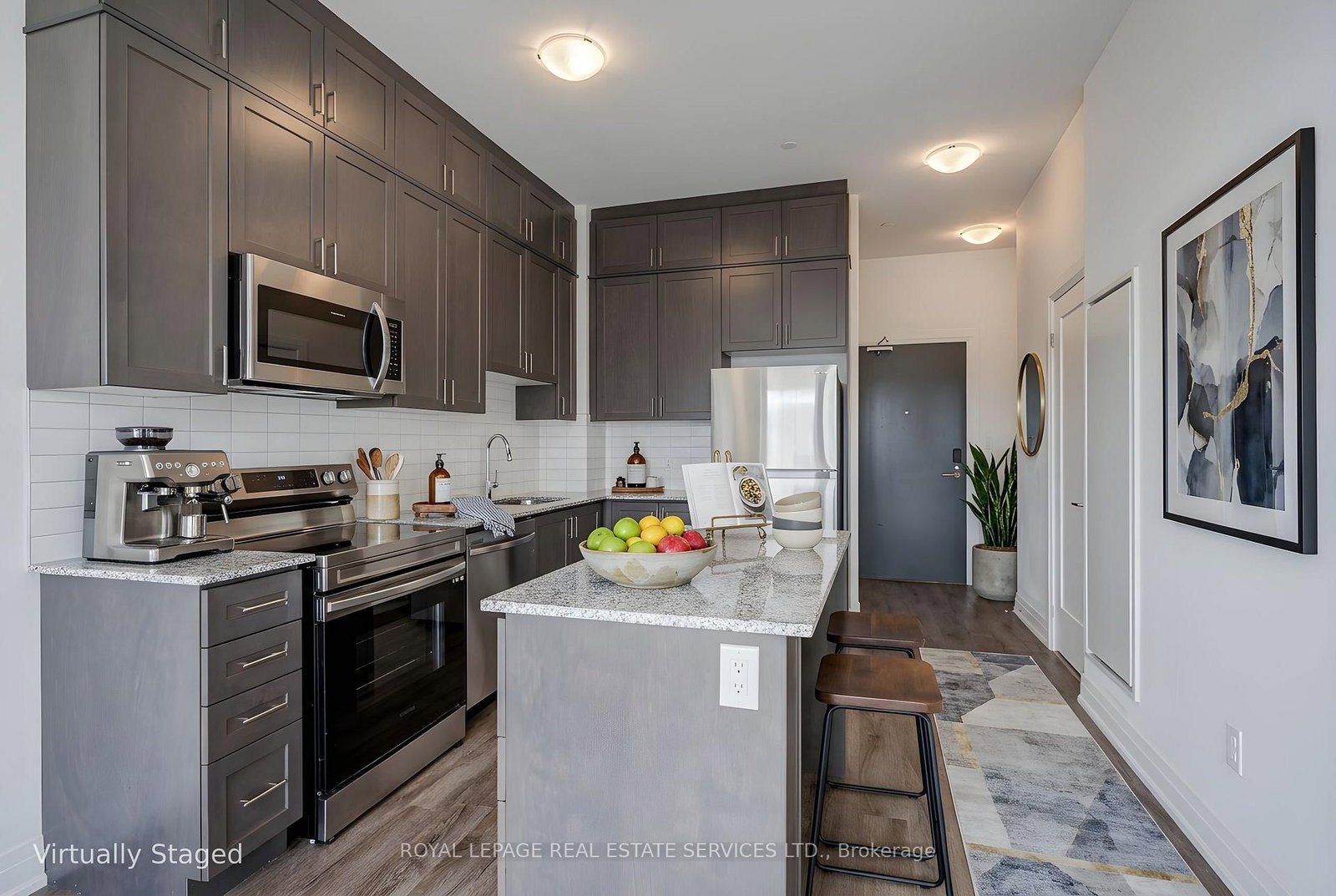 Centre Island, S/S Fridge, Stove, Dishwasher, Microwave/Hood Fan. Washer & Dryer, Window Coverings, One Parking & Locker.