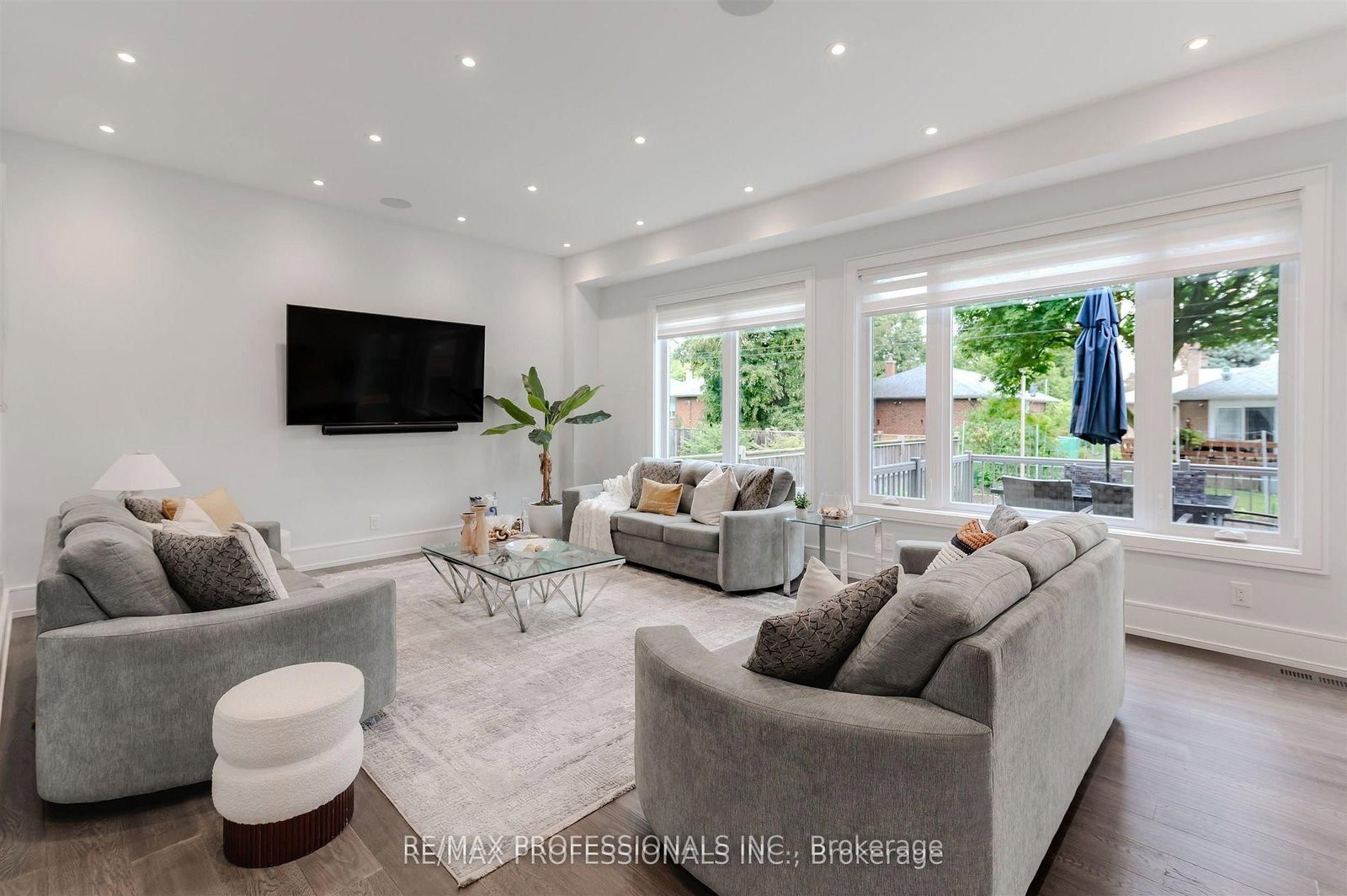 • Living Room: hardwood floor, Pot Lights, W/O To Deck