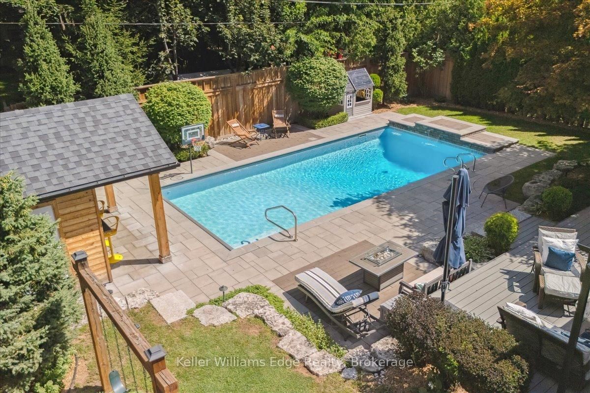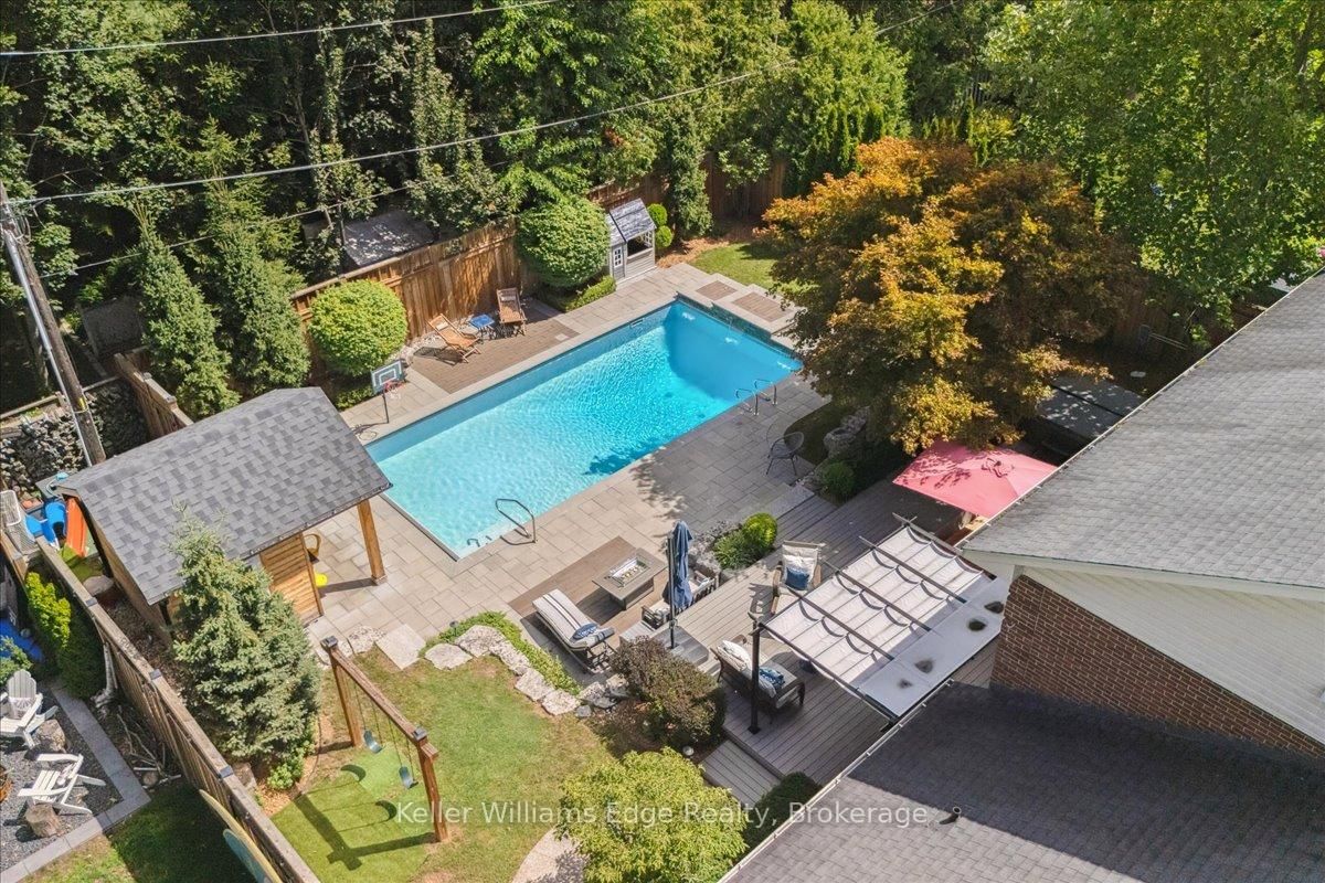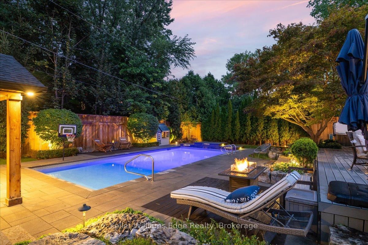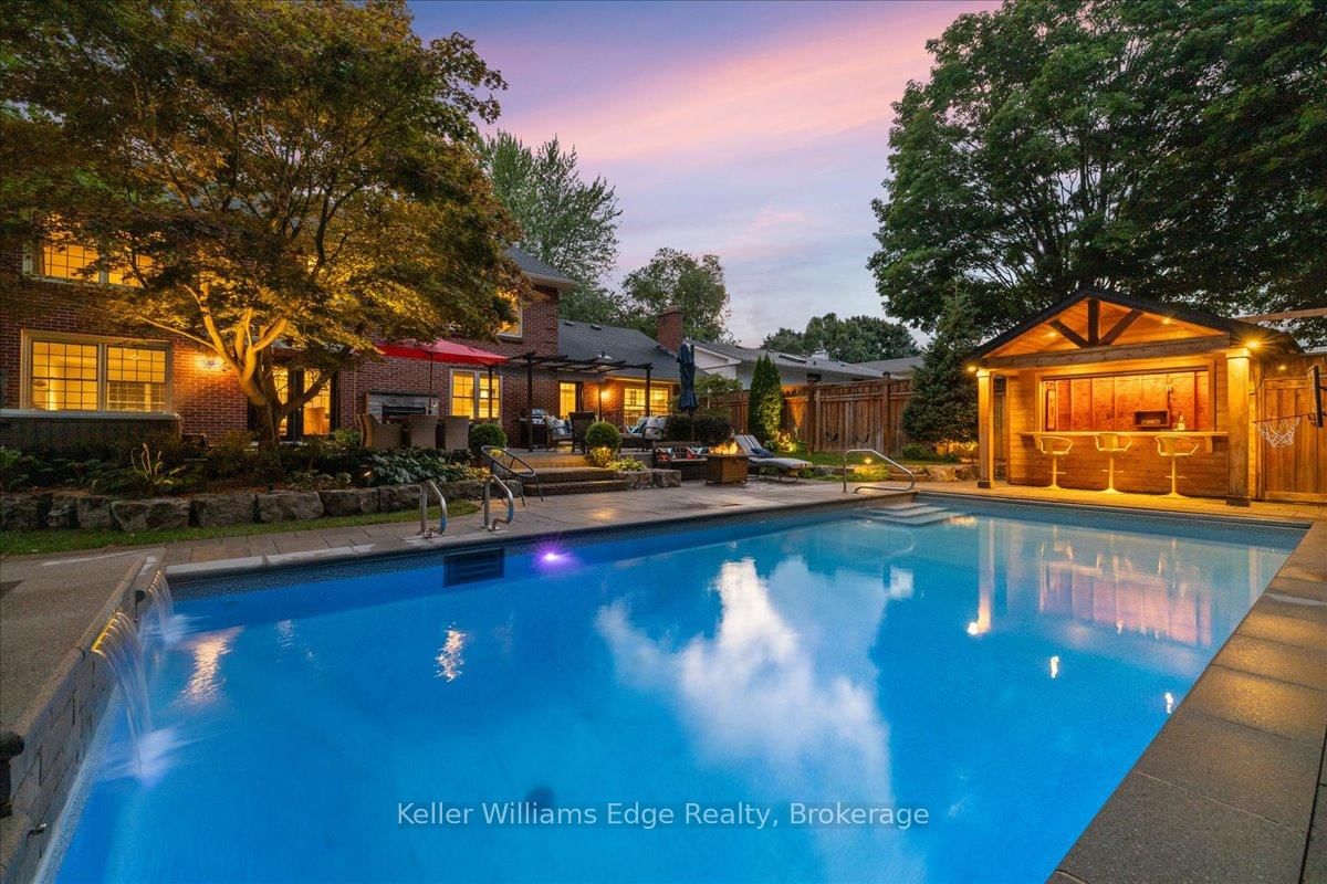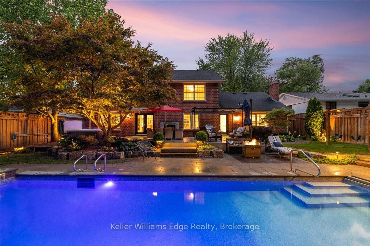 An exceptional family residence nestled in one of Burlington's most coveted neighbourhoods, within the desirable Tuck/Nelson school district. The 2-Storey on 249 Camelot Drive has 3 bedrooms, 4 bathrooms, and is located on a 133 x 75 ft loton < .50 acres in the community of Shoreacres . Impeccably maintained & thoughtfully updated, this elegant home offers the perfect balance of luxury, comfort & everyday functionality. Set on a premium lot with an extra-wide 4 car private drive & double garage complete with 200 AMP Tesla charging station. Inside, the oversized windows flood the home with natural light & Sonos sound system throughout creates your unique home. A spacious foyer welcomes you with ample storage, while a versatile front office offers the perfect work-from-home solution & a formal dining room flows seamlessly into the den. A stunning open-concept kitchen & family room overlook the professionally landscaped *private* backyard. Featuring a 5-burner gas stove & side-by-side fridge/freezer, the kitchen is as functional as it is stylish. A convenient mudroom with inside garage access, along with a newly renovated powder room, complete the main floor. Upstairs, the principal retreat is highlighted by a custom walk-in closet (which can convert back to a 4th bedroom) & luxurious 5-piece ensuite w/ heated floors. Two additional generously sized bedrooms, 3-piece bath & upper-level laundry room with custom cabinetry provide convenience for the whole family. The fully finished basement expands your living space with a large rec room, 3-piece bath w/ heated floors, abundant storage & walk-up entrance to the backyard offering in-law suite potential. Step outside to your backyard oasis - an entertainer's dream! Professionally designed & meticulously maintained, this outdoor retreat features an exposed aggregate walkway, composite deck, & stone patio surrounding the pool cabana & custom-built in-ground pool with a luxurious heated waterfall. The lush, landscaped grounds are enhanced by mature trees, perennial shrubs & in-ground Rainbird irrigation system. An unparalleled lifestyle in a truly exceptional setting!