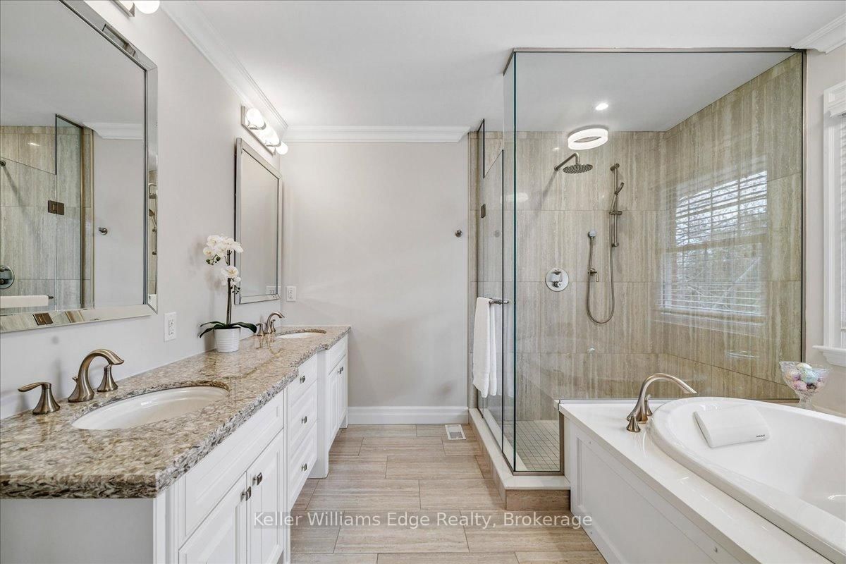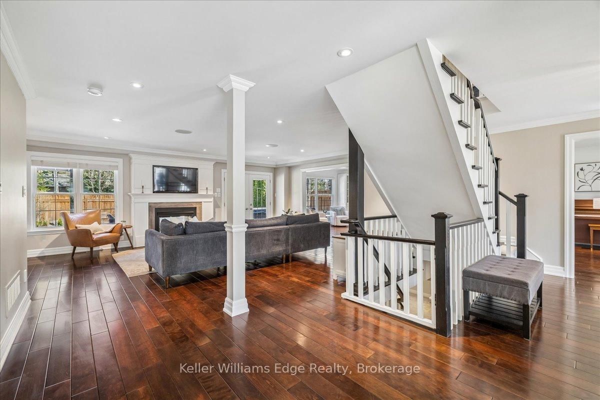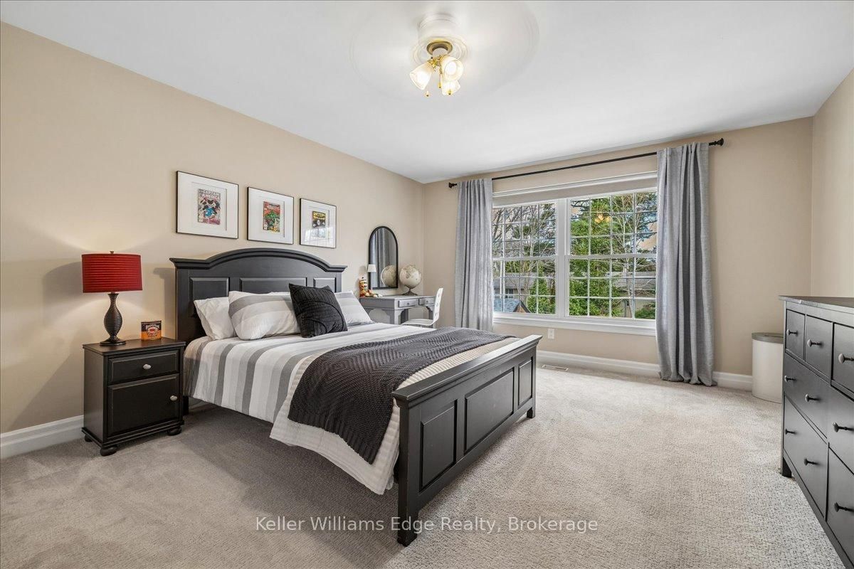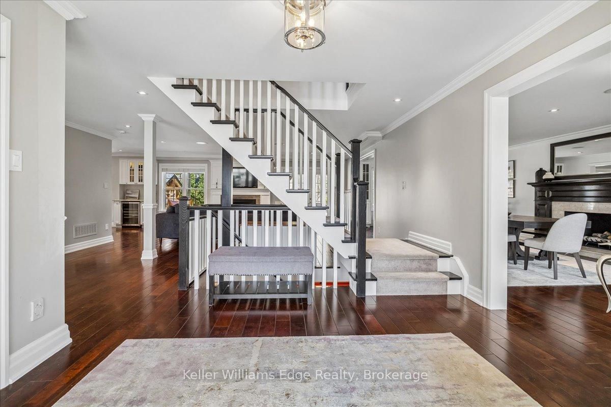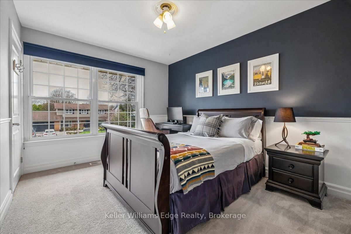 An exceptional family residence nestled in one of Burlington's most coveted neighbourhoods, within the desirable Tuck/Nelson school district. The 2-Storey on 249 Camelot Drive has 3 bedrooms, 4 bathrooms, and is located on a 133 x 75 ft loton < .50 acres in the community of Shoreacres . Impeccably maintained & thoughtfully updated, this elegant home offers the perfect balance of luxury, comfort & everyday functionality. Set on a premium lot with an extra-wide 4 car private drive & double garage complete with 200 AMP Tesla charging station. Inside, the oversized windows flood the home with natural light & Sonos sound system throughout creates your unique home. A spacious foyer welcomes you with ample storage, while a versatile front office offers the perfect work-from-home solution & a formal dining room flows seamlessly into the den. A stunning open-concept kitchen & family room overlook the professionally landscaped *private* backyard. Featuring a 5-burner gas stove & side-by-side fridge/freezer, the kitchen is as functional as it is stylish. A convenient mudroom with inside garage access, along with a newly renovated powder room, complete the main floor. Upstairs, the principal retreat is highlighted by a custom walk-in closet (which can convert back to a 4th bedroom) & luxurious 5-piece ensuite w/ heated floors. Two additional generously sized bedrooms, 3-piece bath & upper-level laundry room with custom cabinetry provide convenience for the whole family. The fully finished basement expands your living space with a large rec room, 3-piece bath w/ heated floors, abundant storage & walk-up entrance to the backyard offering in-law suite potential. Step outside to your backyard oasis - an entertainer's dream! Professionally designed & meticulously maintained, this outdoor retreat features an exposed aggregate walkway, composite deck, & stone patio surrounding the pool cabana & custom-built in-ground pool with a luxurious heated waterfall. The lush, landscaped grounds are enhanced by mature trees, perennial shrubs & in-ground Rainbird irrigation system. An unparalleled lifestyle in a truly exceptional setting!