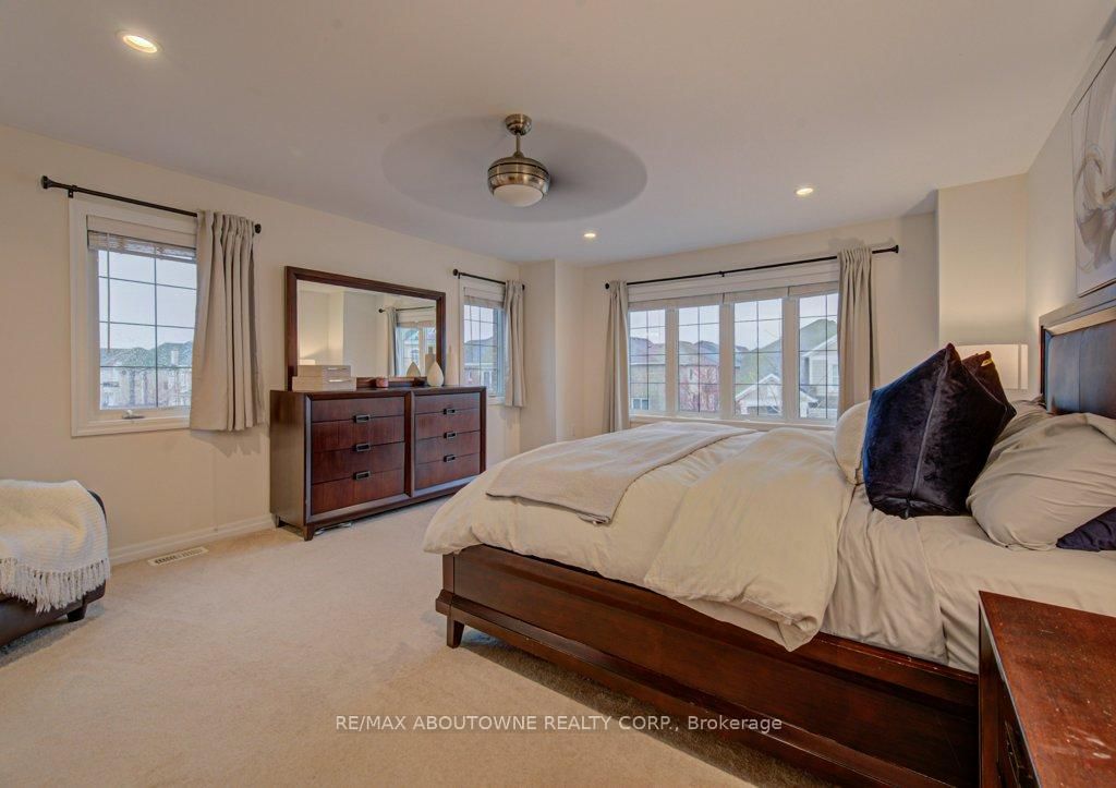 Stunning detached 4+1 bedroom 2-storey home in The Preserve, one of Oakville's most sought-after Uptown neighbourhoods. The 2-Storey on 178 Cherryhurst Road has 4 bedrooms, 5 bathrooms, and is located on a 90.04 x 35.27 ft lot in the community of Glenorchy . This meticulously maintained residence is loaded with upgrades throughout. The main level features 9' ceilings, hardwood floors, crown moulding, custom eat-in kitchen with centre island, breakfast bar, high-end stainless steel appliances, built-in pantry, granite countertops, and a walk-out to an incredible backyard complete with a synthetic deck, hot tub, and children's playground-perfect for entertaining and family living. Enjoy a spacious family room with coffered ceiling and a gas fireplace, along with a separate dining room, elegant living room with a second gas fireplace, and a convenient 2-piece powder room completing the main level. The upper level offers four generously sized bedrooms, including a bright and expansive primary suite with a walk-in closet and a luxurious 5-piece ensuite featuring a glass shower, soaker tub, and double sinks. The second and third bedrooms offer semi-ensuite access, along with an additional 4-piece bathroom, upper-level laundry, and a versatile hallway nook ideal for a home office or study area. The finished lower level boasts a large recreation area with built-in cabinet and bar fridge, a fifth bedroom (currently used as an exercise room) with a 2-piece ensuite, and ample storage space. A convenient location close to top ranked schools, shopping, parks & trails, Sixteen Mile Rec., highway and GO access. Don't miss out!