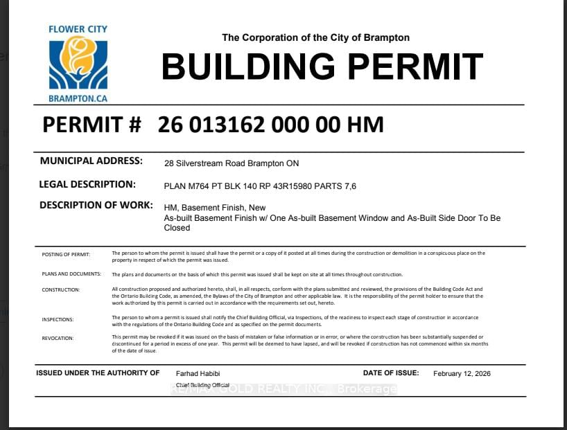 Welcome to this beautifully upgraded freehold townhouse in the highly sought-after Heart Lake West community, offering 3+1 spacious bedrooms and 4 washrooms, including a fully finished one-bedroom basement with a separate entrance through the garage (city permit obtained; basement not registered as a legal secondary unit), ideal for extended family use. The 2-Storey on 28 Silverstream Road has 3 bedrooms, 4 bathrooms, and is located on a 115.24 x 22.17 ft lot in the community of Heart Lake West . This carpet-free home features pot lights throughout, an upgraded kitchen with modern finishes, and a functional open-concept layout perfect for comfortable living and entertaining. Enjoy a fully concrete backyard for low-maintenance outdoor space. Conveniently located close to Trinity Common Mall, Highway 410, public transit, top-rated schools including Heart Lake Secondary School, Conestoga Public School, and Robert H. Lagerquist Sr. Public School, as well as nearby parks such as Lethbridge Park and Moorehead Park. A great opportunity for families and investors alike!