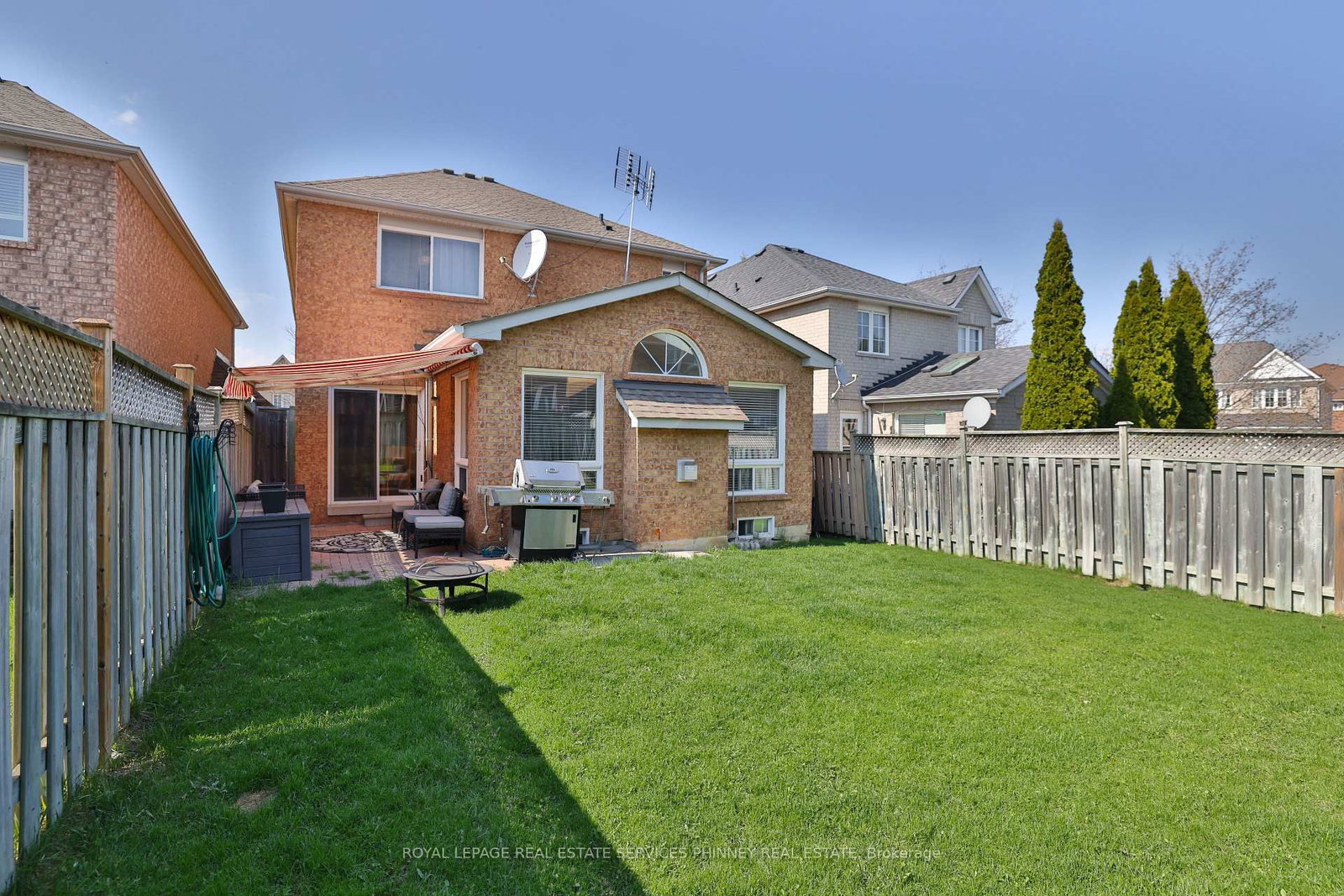 Fantastic family home offering a well-designed layout for family life. The 2-Storey on 3086 Owls Foot Drive has 4 bedrooms, 3 bathrooms, and is located on a 112.51 x 32.04 ft lot in the community of Churchill Meadows . This property features a driveway accommodating four vehicles (which can be a rare find), along with a garage and convenient interior access to the home. The interior welcomes you with a bright, inviting atmosphere, highlighted by hardwood flooring throughout the formal living and dining areas-an ideal setting for both everyday living and entertaining. The cozy family room showcases hardwood floors, a gas fireplace, and a stunning vaulted ceiling with skylights, creating a warm and light-filled gathering space. The kitchen is thoughtfully designed with a spacious eat-in area, stainless steel gas stove and fridge, and walkout to a fully fenced backyard, complete with a natural gas hookup for the BBQ, patio and elegant awning-perfect for outdoor dining and summer enjoyment. Upstairs, the home offers four generously sized bedrooms plus a versatile den, ideal as a home office, study area, or additional lounge space. The primary suite features a spacious 5-piece ensuite and his-and-hers closets, providing both comfort and functionality. Enjoy peace of mind with the following updates: roof(2017), furnace and air conditioner (2017), water heater (2017). Ideally located in a highly sought-after, family-friendly neighbourhood, just minutes to parks, top-rated schools, the Churchill Meadows Community Centre, tennis courts, and a full range of everyday amenities including grocery stores, pharmacies, and restaurants