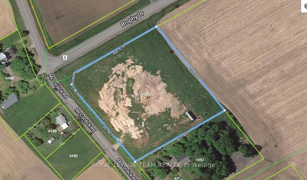 Build your dream on this central piece of land, almost 4 acres in size! This lot is located on the corner of Brophy and Eagleson/McCordick, a few minutes outside the growing village of Richmond, within the city of Ottawa, and provides many options to build your dream vision. The Other on 4411 Mccordick Road has 0 bedrooms, 0 bathrooms, and is located on a 401 x 420 ft loton 2-4.99 acres in the community of Rideau Twp W of Hwy 16 North of Reg Rd 6 . Highway 416 is a few minutes away for an easy commute, and the village of Manotick is 10km away. Road allowances removed already in preparation for future plans. Don't let this opportunity pass by!