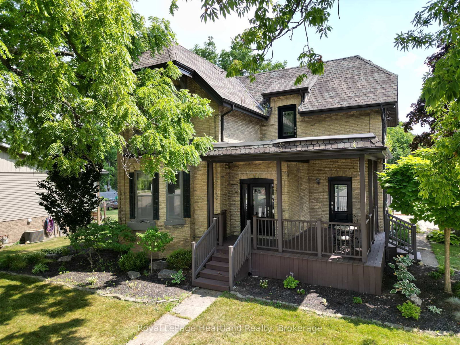 Grand century solid brick 2-storey home perched on a lovely lot just a few steps from the river, park, trail, and amenities. The 2-Storey on 58 Main Street S has 5 bedrooms, 2 bathrooms, and is located on a 165.37 x 90.2 ft lot in the community of Exeter . Built as a church manse in 1878, this palatial residence would be a great place to raise your family. The updated covered front porch opens to a centre hallway with a beautiful open staircase to the second floor. The main floor boasts a huge living room adjacent to a generous formal dining room, which is presently sporting a pool table. Tall Victorian ceilings and bay windows offer a fitting heritage motif. A huge eat-in kitchen with its extended sunroom area and large skylight makes a great space for family gatherings. A spacious den inside the front hallway with a separate entrance would suit well as a home office. A peaceful lounging room and large screened-in porch at the rear overlook the pool and private fenced-in backyard. Upstairs, you'll find five generous bedrooms as well as a roomy landing and a 4-piece bathroom. A large main floor laundry room offers walk-in shower, and a 2 piece bathroom near the rear entrance. The private, fenced backyard features a stamped concrete patio, a 16x32 in-ground pool, and an 8'x12' pool shed. To top it off, a 36'x24' coverall building with a huge double overhead door for all your storage needs.