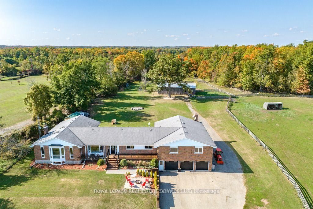 Now on Standard Broadband fibre optics! Note 6 separate walkouts. The Bungalow on 9630 Wellington Road 42 null has 6 bedrooms, 4 bathrooms, and is located on a 1374.5 x 429.49 ft loton 25-49.99 acres in the community of Rural Erin . Beautiful property to be your forever family home, ideal for multi generational living. Impressive (8 bedroom total) 4,500+ square feet (6 bedrooms on main level) bungalow with 3,000+ square foot lower level with walkout at grade level entry which includes a 2 bedroom 1,983 square foot inlaw suite (with lots more room to expand) all on a huge 25 acre parcel of land full of personality comprising a balance of workable land, mixed woods with amazing trilliums, all sure to please the most discerning buyer! Bring your wish list here and check off your boxes! If privacy is a factor, this fine family home is set well back off the road, and is nicely elevated affording beautiful views off all windows and ideal for the nature lover. Additionally for the car collector or multi vehicle family, a total garage space accommodating 7 vehicles or specialty toys, atv's, snowmobiles, etc., of which the tandem 4 car garage with double o/h door is 45'x23'. The updated 24'x40' pole barn with extra double doors on west end, has water and hydro and 3 System Equine stalls for your horses, goats, chickens, or many more parking spaces for your vehicles/trailers. Fantastic location for Pearson Airport commuters per Google only 30 minutes.