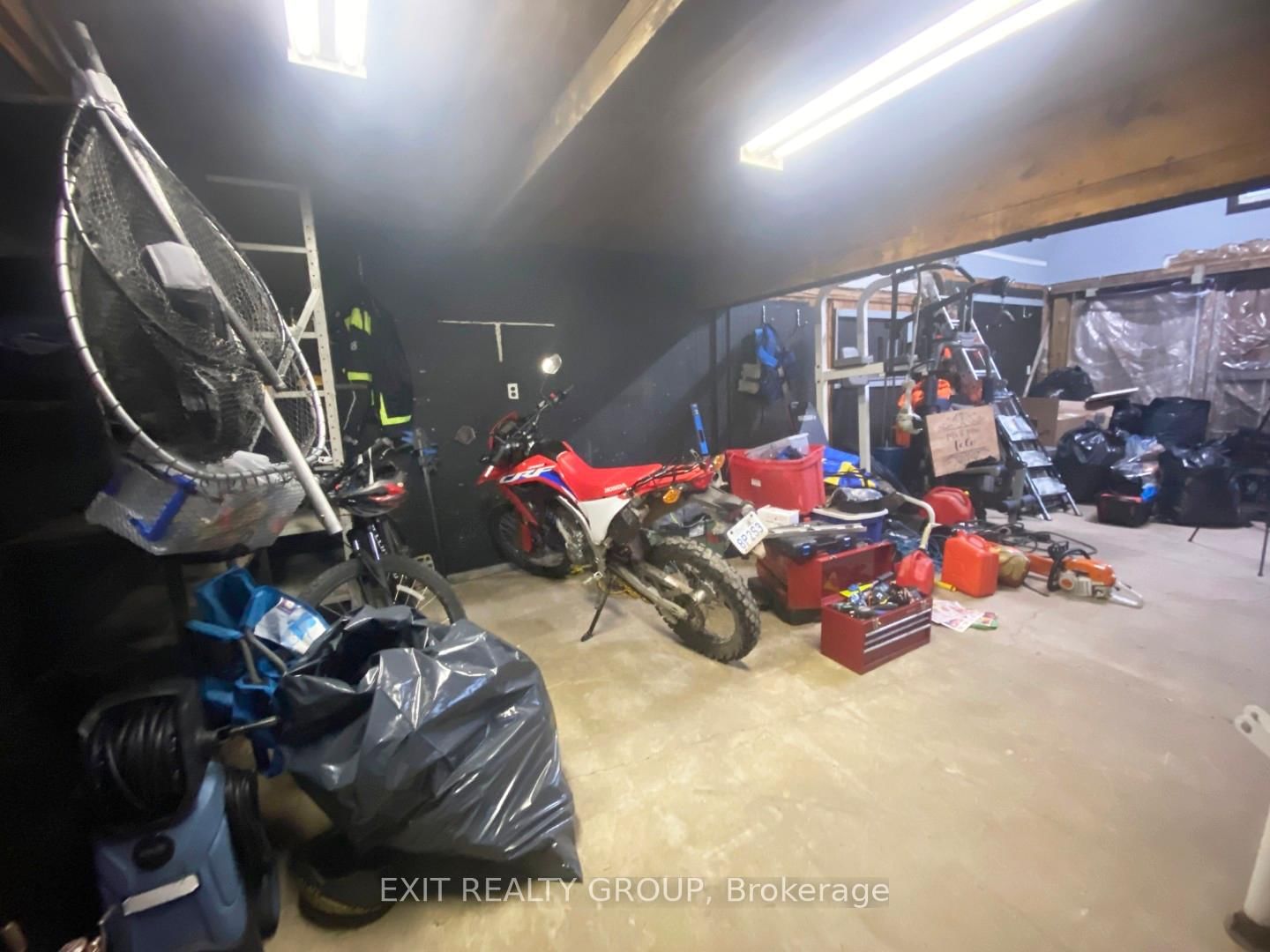 Fridge (white in colour to replace SS fridge), 2 "New in Box" electric baseboard heaters, all window AC units, stove, woodstoves x 2, cut wood located behind garage, shed, lean-to.