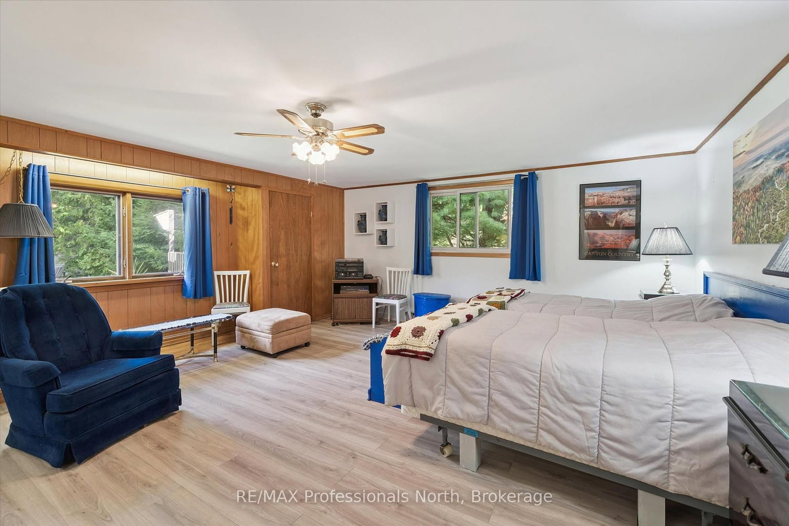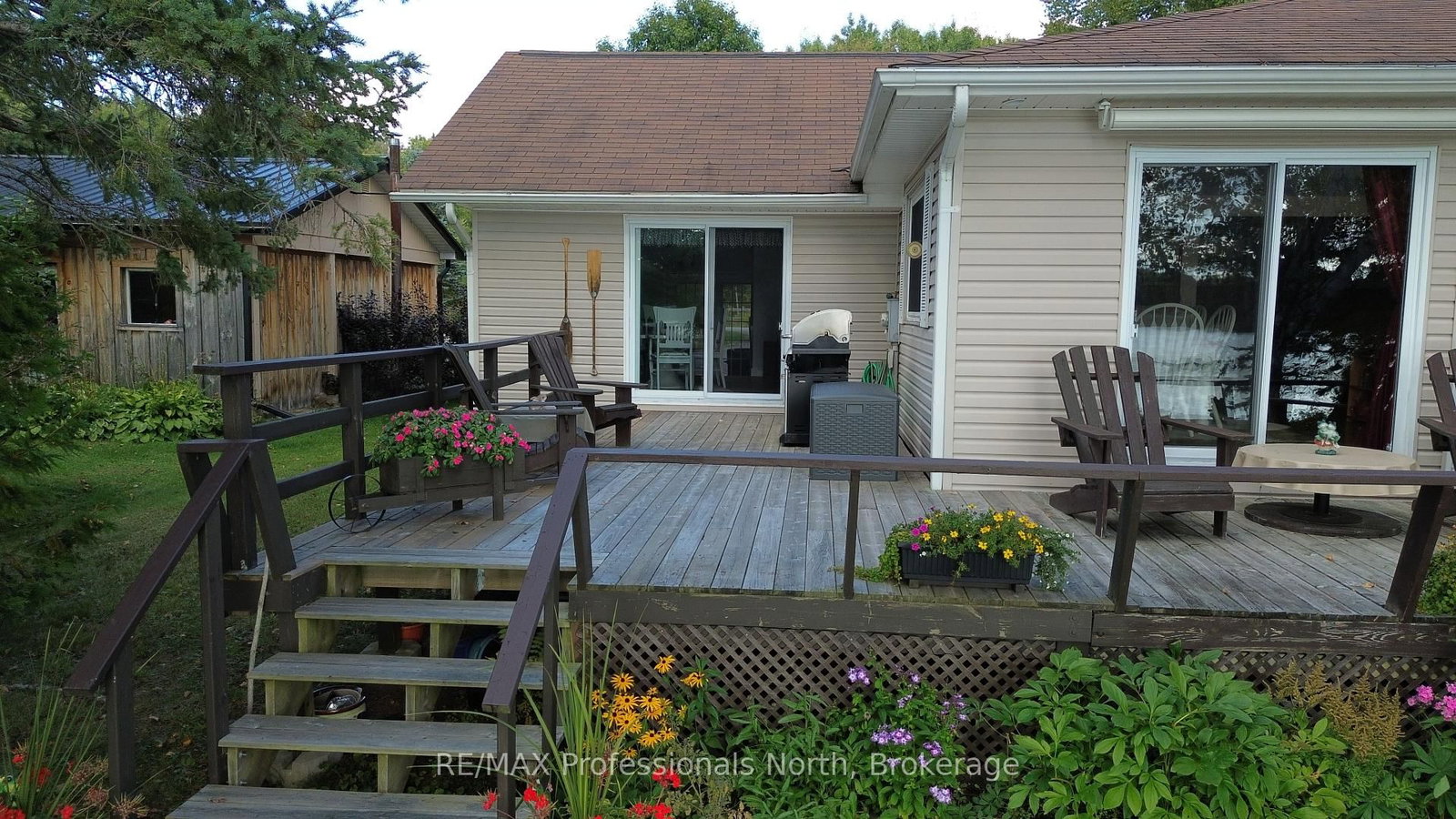 Enjoy waterfront living in this large bungalow on Hassard Lake in Kearney on a paved, year round road very close to the town of Kearney. The Bungalow on 166 Lakeview Avenue has 4 bedrooms, 2 bathrooms, and is located on a 205.56 x 61.82 ft loton < .50 acres in the community of Kearney . There are 4 comfortable bedrooms. The Primary is over-sized with a sitting area and ensuite bathroom. The living, dining and kitchen areas are comfortable for family and friends to gather and in the winter, warm up at the wood burning fireplace. This area opens up to a large deck and views to the spectacular waterfront. Off of the kitchen is a fun games-room or second dining room for the big crowds. The lot is level so no concerns about walking steps tow the waterfront. The lot is large and has a paved driveway and a large 2-car garage which is detached from the house has a metal roof. (The garage has been pre-wired for electricity.) The well is a sand-point with sediment filter. You will find the laundry and large workshop are in the unfinished basement. This property is turn-key and includes all furniture and appliances as well as the items in the garage. The sump pump has a battery back-up. There is a 200 amp electrical service and heat is by the propane gas stove in the kitchen with electric baseboard heaters as secondary heat. The waterfront features hard-packed sand and shallow water which progressively gets deeper so that you can dock your boat easily. Updates: electrical and plumbing 2003, heating 2018, shingle roof 2014.