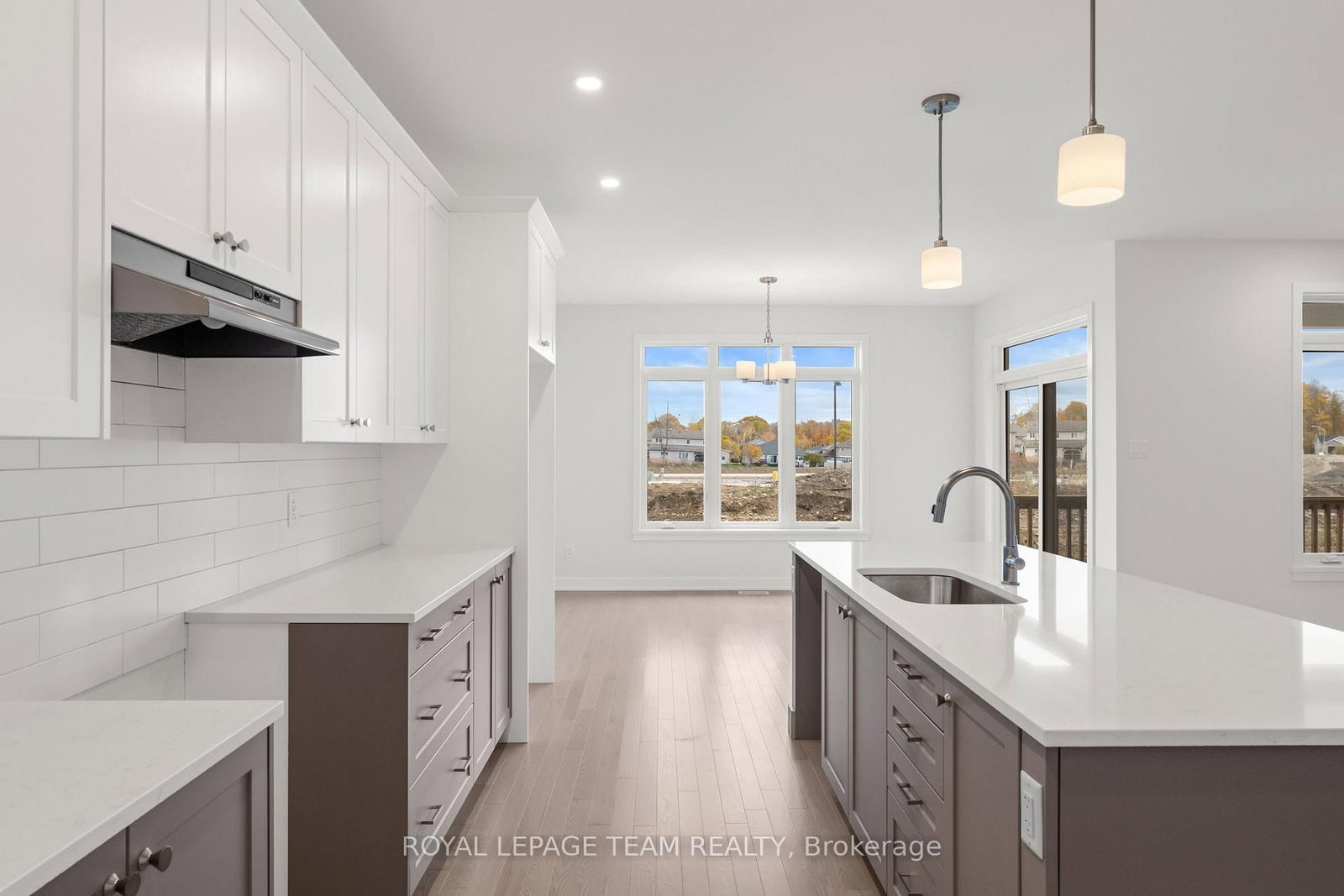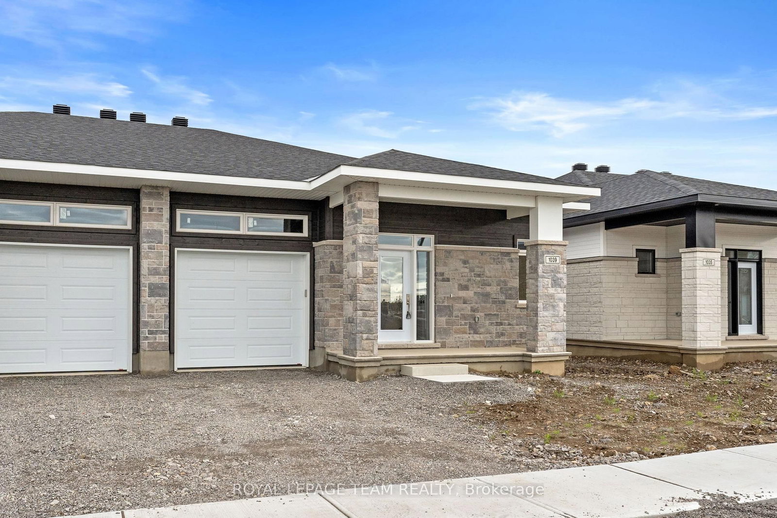 Set in Brockville's Stirling Meadows, this newly completed semi-detached bungalow offers contemporary living with convenient access to Highway 401 and nearby amenities, including shopping, dining, and recreation. The Bungalow on 1039 Moore Street has 2 bedrooms, 2 bathrooms, and is located on a 111.33 x 34.82 ft lot in the community of Brockville . The Leeds Model by Mackie Homes features approximately 1,509 square feet of thoughtfully designed living space, including two bedrooms, two bathrooms, a front-facing office nook, main-level laundry, and a single-car garage. An open-concept layout connects the kitchen, dining area, and living room, creating a bright and functional space ideal for both everyday living and entertaining. The kitchen showcases two-toned cabinetry, quartz countertops, a storage pantry, and a spacious centre island with an undermount sink. The living room features a natural gas fireplace with a mantle. Step outside to the covered porch, providing a seamless indoor-outdoor flow. The primary bedroom includes a walk-in closet and a three-piece ensuite.