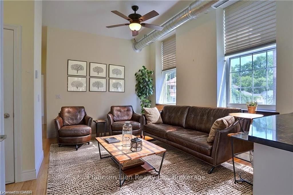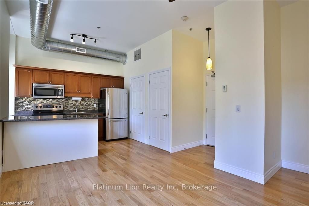 Welcome to 140 West River Street Unit 301. The Apartment on 301-140 West River Street has 1 bedrooms, 1 bathrooms, and is located in the community of Paris . These units feature the perfect blend of modern convenience mixed with historical elements including 10ft ceilings and bright windows throughout providing lots of natural light and an open concept feel ! Offering 1 large bedroom, 1 bathroom, open concept living room / kitchen area with island and a special bonus of in suit laundry. Located steps away from the Nith River and only minutes from local bakeries, shops and trails you will not be disappointed. This beautiful Historic building has amenities such as a large party room, secure access, elevator, storage locker, outdoor patio, dedicated parking and amazing views from your windows to enjoy. Some recent updates include new air conditioner 2024; new custom window coverings done in April 2025 (black out in the bedroom); replaced light fixtures and faucets. Water heater and water softener are both new, rented. Don't miss out on your chance for condo living in the prettiest town of Paris!