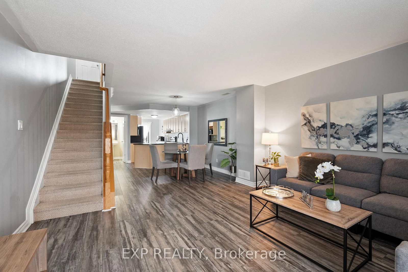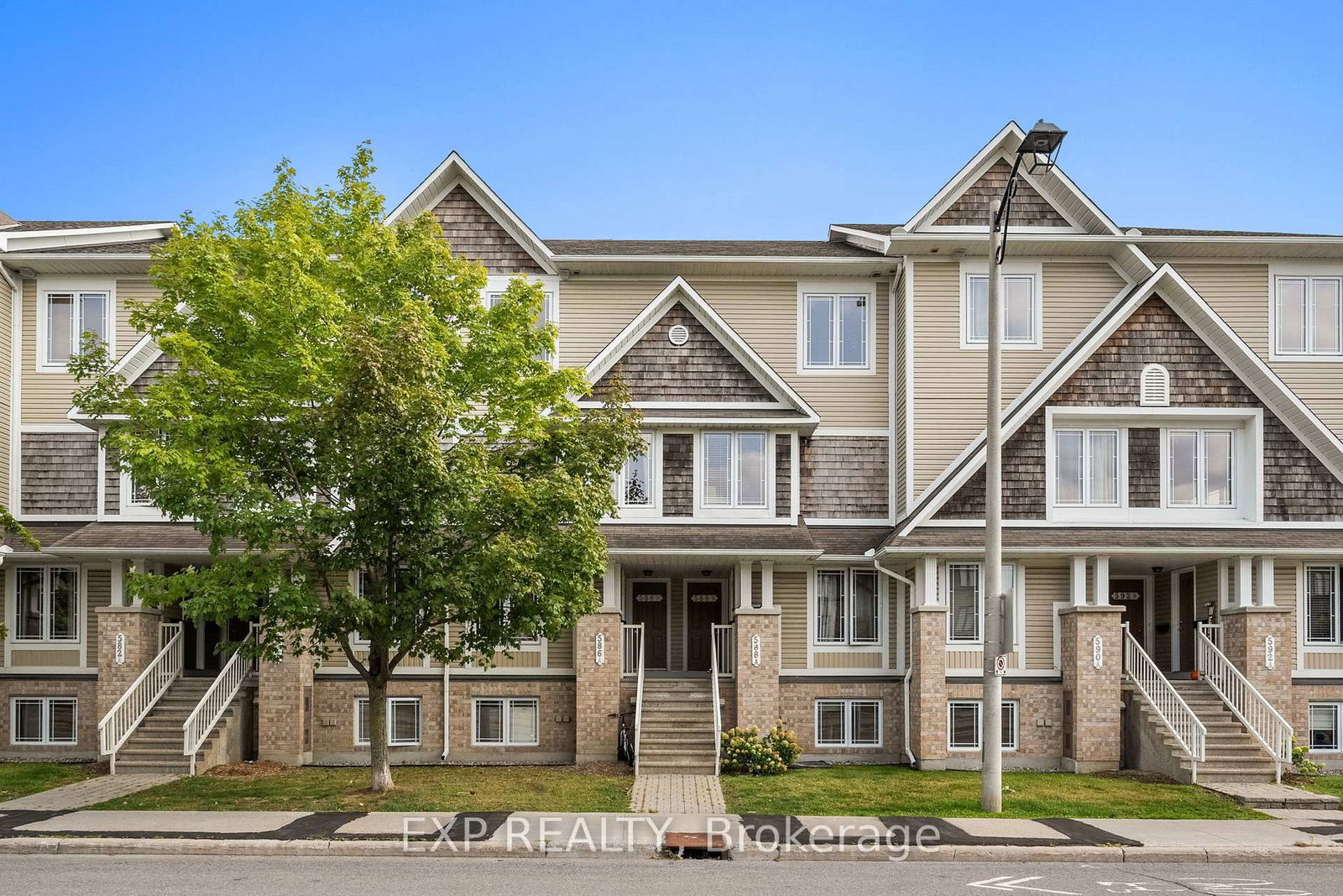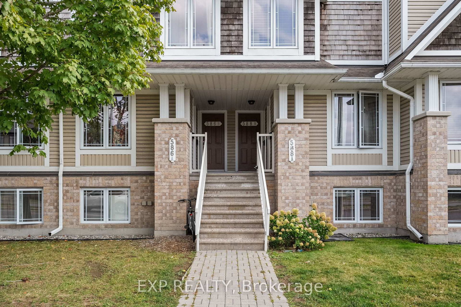 Welcome to this beautiful sought after upper unit 2-bed, 3-bath stacked townhome in the heart of Barrhaven. The Stacked Townhouse on 588-B Chapman Mills Drive has 2 bedrooms, 3 bathrooms, and is located in the community of Barrhaven - Strandherd . Step inside the private entrance to a welcoming foyer, with stairs leading up to the bright and spacious main level. This thoughtfully designed floor plan showcases a modern open-concept layout that is perfect for everyday living and entertaining. The kitchen is equipped with stainless steel appliances, tons of cabinetry, stylish backsplash, & plenty of counter space, including a peninsula ideal for meal prep or casual dining. Beyond the kitchen, you'll find a large eat-in area that could serve as the perfect breakfast nook, den or office. With patio doors opening directly to your private balcony, this spot is filled with natural light and creates a seamless indoor-outdoor connection perfect for morning coffee. The kitchen and dining room flow effortlessly into the spacious living room, complete w/ beautiful luxury vinyl flooring throughout and large windows that brighten the entire main level. A convenient powder room completes this floor. Upstairs, you'll find two large sized bedrooms and even better is each with its own full private ensuite. The primary bedroom features a large closet, bright windows, full ensuite bathroom & access to its own private balcony, offering a quiet retreat to enjoy fresh air. The second bedroom is equally spacious, with its own ensuite, making it ideal for a tenant, guests, or a home office. A laundry/Utility room is conveniently located on this level, adding to the homes smart design. This home offers the best of low-maintenance living in a vibrant community setting. Surrounded by parks, mature trees, & walking paths, you'll also love the convenience of being just steps from schools, shops, restaurants, and public transit. With dual ensuites, two balconies, a sun-filled open layout, and tons of living space, this home delivers the perfect balance of comfort, and central location in one of Barrhavens most desirable neighbourhoods
