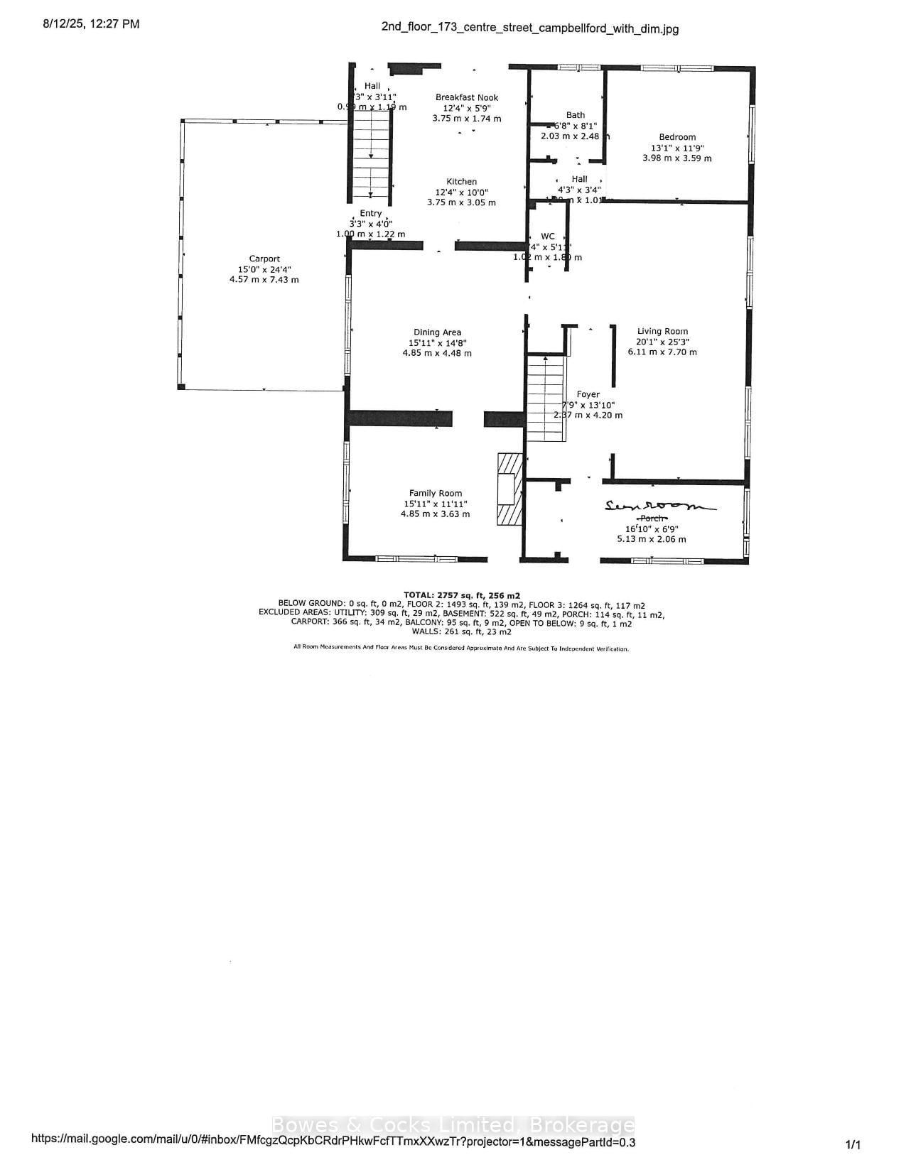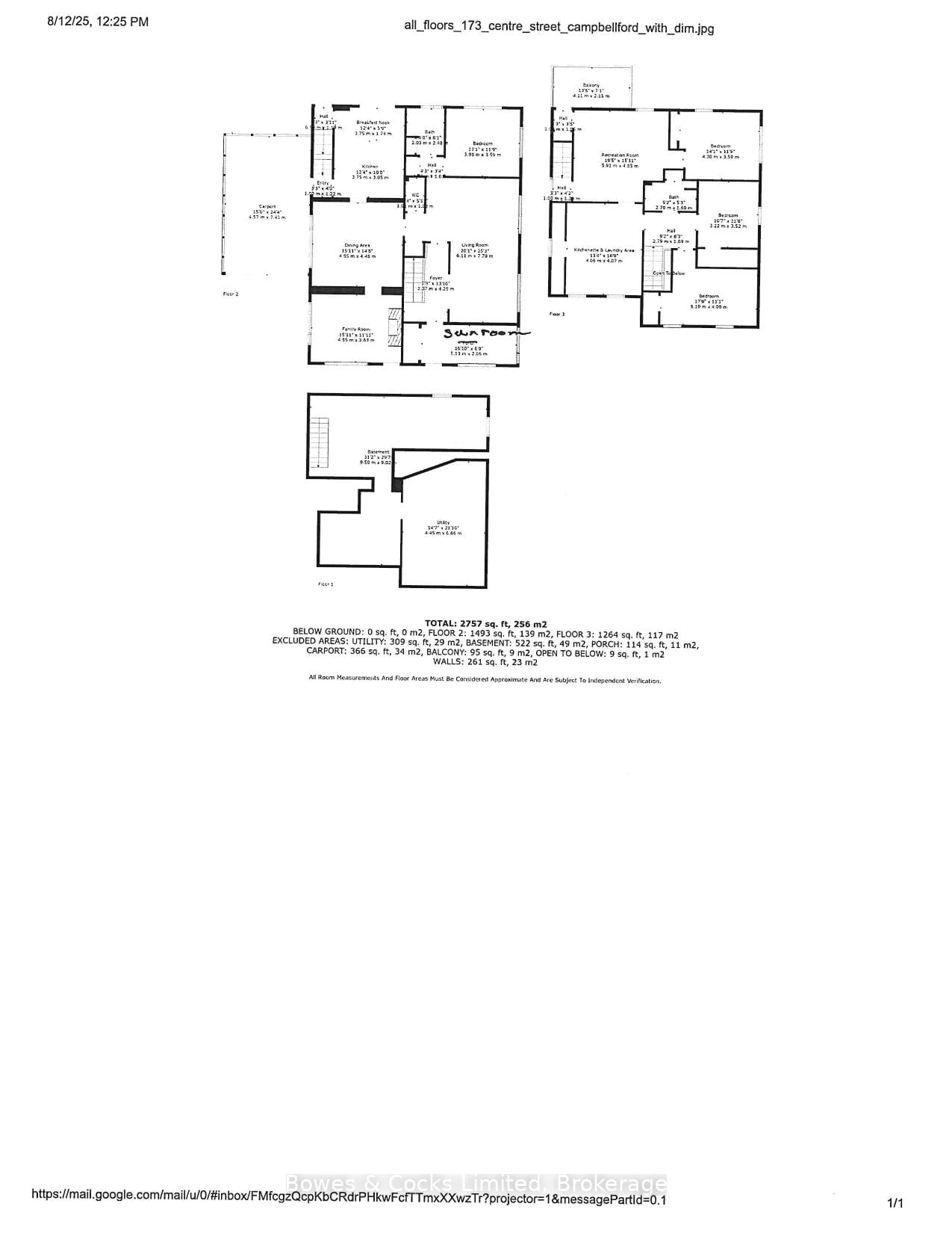 Discover the charm and versatility of this well-preserved Century home(1876). The 2-Storey on 173 Centre Street has 1 bedrooms, 3 bathrooms, and is located on a 165.05 x 66.02 ft loton < .50 acres in the community of Campbellford . Solid brick, aluminum siding was added to the entire house when it was expanded in 1977, almost doubling the floor space. This is a well maintained and beautifully preserved Century home, 3 + 1 bedrooms, 3bathrooms, with loads of original charm and potential. The eat in kitchen has a walk out to a covered deck with a couples swing which overlooks a private landscaped tree lined backyard. There is a large formal dining room for gathering together, leading into the spacious living room, 2 piece powder room, primary bedroom with 3 piece ensuite, cozy family room with a gas fireplace and a four season sunroom with forced air and gas fireplace complete the main floor. Upstairs are three generous bedrooms, 4 piece bathroom, laundry, kitchenette and family room which leads out to a spacious private balcony overlooking the backyard. There is a private entrance to the second level. The lower level is solid and has a laundry hook-up, utilities have all been replaced over the past few years including vinyl windows and shingles which were replaced in2020.There is an oversized double carport with possibly parking 3 to 4 cars. This home offers flexibility for multi generational living. While ensuring everyone has their privacy and own space. This home is within walking distance to town amenities and walking trails at Ferris Park.