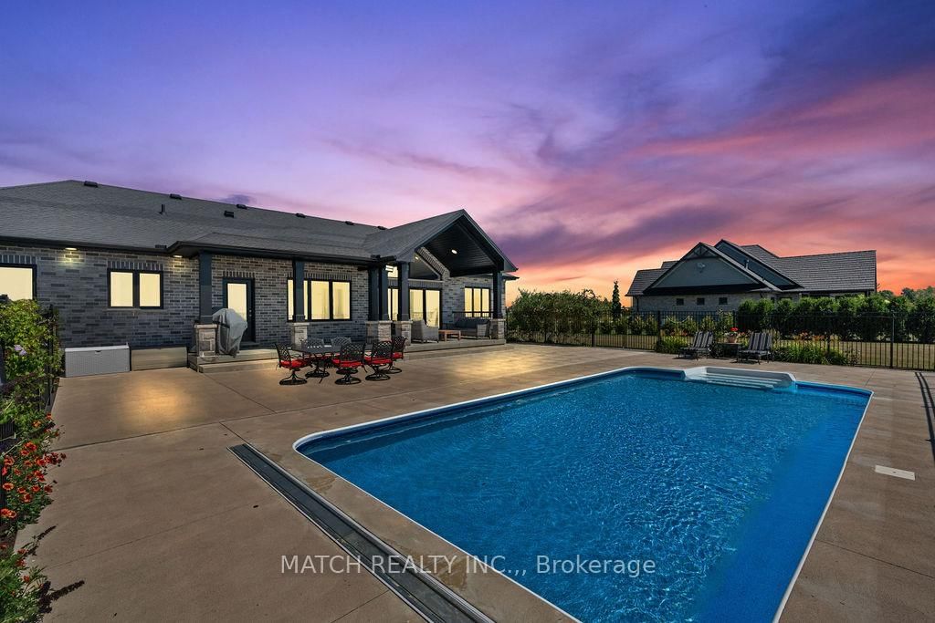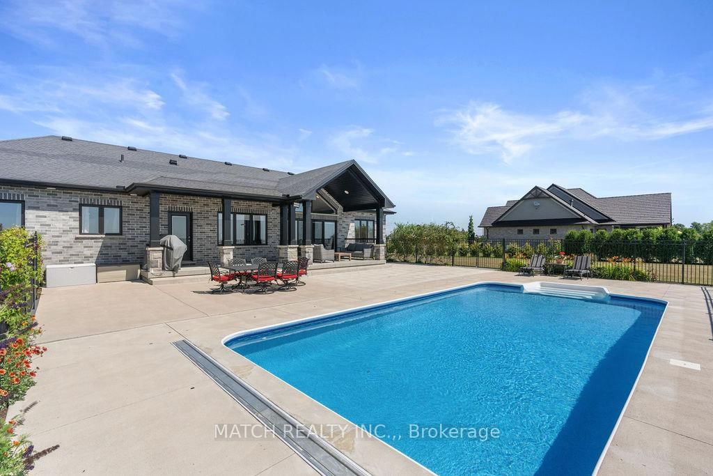 Experience refined lakeside living at **5482 Talbot Trail**, a custom-designed executive home offering timeless craftsmanship, ultimate privacy, and sweeping panoramic views of Lake Erie. The Bungalow on 5482 Talbot Trail has 3 bedrooms, 4 bathrooms, and is located on a 623.43 x 169.26 ft loton 2-4.99 acres in the community of Merlin . Situated on 2.29 acres atop a fairy tale 100-foot cliff, this one-of-a-kind residence was built in 2017 and has been meticulously maintained by its original owner. With over 2,300 sq. ft. of luxury living on the main floor and a fully finished basement, this Energy Star-rated custom home features 5 spacious bedrooms, 3.5 bathrooms, and a heated triple-car garage. Interior highlights include hardwood flooring throughout, Cambria quartz countertops, a chef's kitchen with high-end appliances and a walk-in pantry, and built-in speakers throughout the main living areas. The primary suite is a true retreat with a spa-inspired 5-piece ensuite featuring heated floors and a custom walk-in closet. Step outside to a private outdoor oasis complete with a 16' x 32' heated in-ground pool, expansive concrete patio, pool shed, firepit, and manicured perennial gardens-all perfectly positioned to take in the unobstructed lake views. One of the lower-level bedrooms has been transformed into a professionally finished sound room with acoustic insulation, double drywall, and sound-treated ceiling. Additional features include a gas furnace, Generac, alarm system with four exterior cameras, 200 amp service, municipal water, and a fully spray-foamed basement. Surrounded by wildlife, bald eagles and only minutes from local markets and orchards, this is a rare opportunity to own a custom lakefront estate in one of Chatham-Kent's most breathtaking locations.