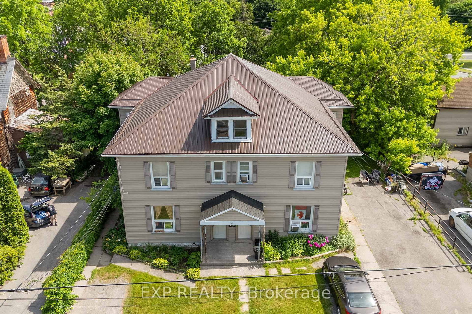 Turnkey, pride-of-ownership 4-plex in the heart of Trenton offering a rare combination of solid construction, low maintenance, and long-term upside. The 2-Storey on 17 Spring Street has 6 bedrooms, 4 bathrooms, and is located on a 132 x 66 ft lot in the community of Trenton Ward . This well-maintained all-brick building (with siding exterior) features an ideal unit mix of two 2-bedroom and two 1-bedroom suites, each with its own private entrance. Fully separately metered for hydro and water with tenants paying their own use, separate hot water tanks, plus on-site coin laundry, making this an exceptionally efficient and easy-to-manage investment. Major capital items are already taken care of, including a metal roof installed approximately two years ago, reflecting true pride of ownership throughout. Set on a generous 66x132 lot with two driveways, a fenced yard, and future development potential. Prime, walkable location just steps to Trenton Memorial Hospital, downtown shops, grocery stores, restaurants, banks, City Hall, Trent Port Marina, and the Quinte West Public Library, with CFB Trenton only a 10-minute drive away. A clean, well-run multi-family asset in a growing community-perfect for investors looking to acquire a stable property that's ready to go from day one.