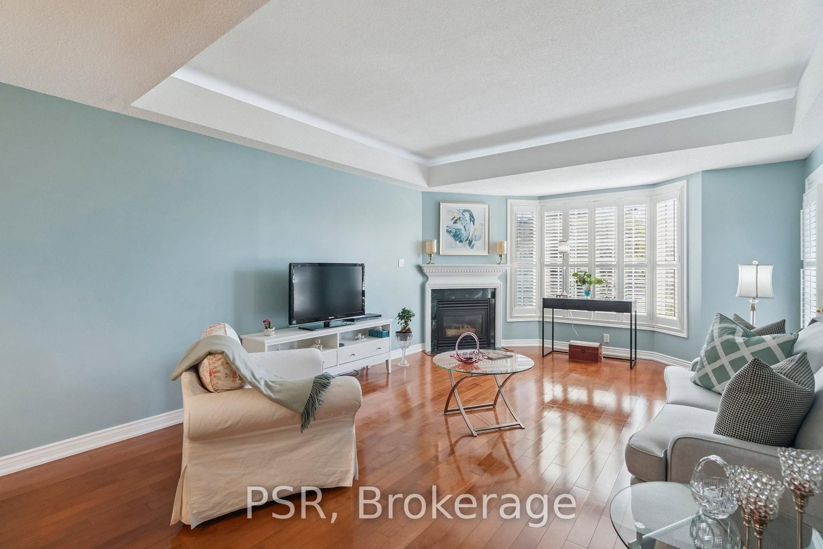• Living Room: hardwood floor, Fireplace, Balcony