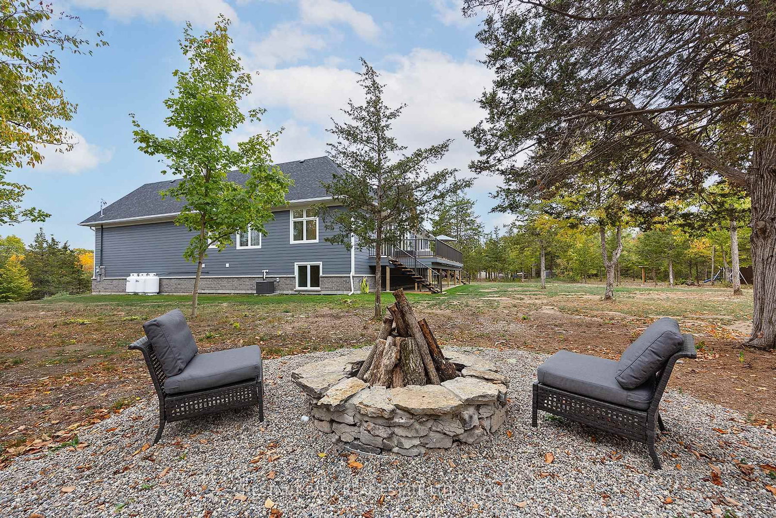 Experience the epitome of luxury country living in this stunning home that combines contemporary elegance with impeccable attention to detail. The Bungalow-Raised on 531 Bethel Road has 4 bedrooms, 4 bathrooms, and is located on a 299.87 x 358.5 ft loton 2-4.99 acres in the community of Stone Mills . Flooded with natural light and designed with exquisite craftsmanship, this residence offers the perfect blend of elegance, comfort, and modern sophistication in a serene setting.The bright and airy interior features 10' ceilings, striking 8' solid wood doors, pot lights, and masterfully handcrafted mouldings throughout. The 2,158 SF main level boasts oak floors and an open-concept design with vaulted coffered ceilings and large windows that frame picturesque views of the countryside and expansive deck. The custom kitchen features a generous island and quartz countertops, blending style with functionality.The primary suite offers a striking feature wall, patio doors to the deck, two custom closets, and a luxurious ensuite with a soaking tub and walk-in shower adorned with spectacular tile. The main floor includes two additional bedrooms, an office, a full bathroom, and a powder room. A private hallway leads to a fourth bedroom with an ensuite and direct outdoor access - perfect for family or guests.The stairway to the lower level is equipped with motion-activated lighting, blending functionality and ambiance. This 2,167 SF space includes a fifth bedroom, cold room, ample storage, and bathroom rough-in. Set on nearly 2.5 acres on the outskirts of the charming town of Yarker and surrounded by mature trees for ultimate privacy, this home boasts a massive 734 SF garage with 18' ceilings, with the potential to add a loft space. Enjoy the outdoor amenities, including an inviting fire pit, a separate cabin for entertaining or relaxation, a sauna, and a large storage area.Rarely is a property of this caliber available. Experience the perfect blend of luxury and natural beauty in this exceptional home. Discover a sanctuary where breathtaking views meet unparalleled craftsmanship, creating an inviting space you'll be proud to call home.