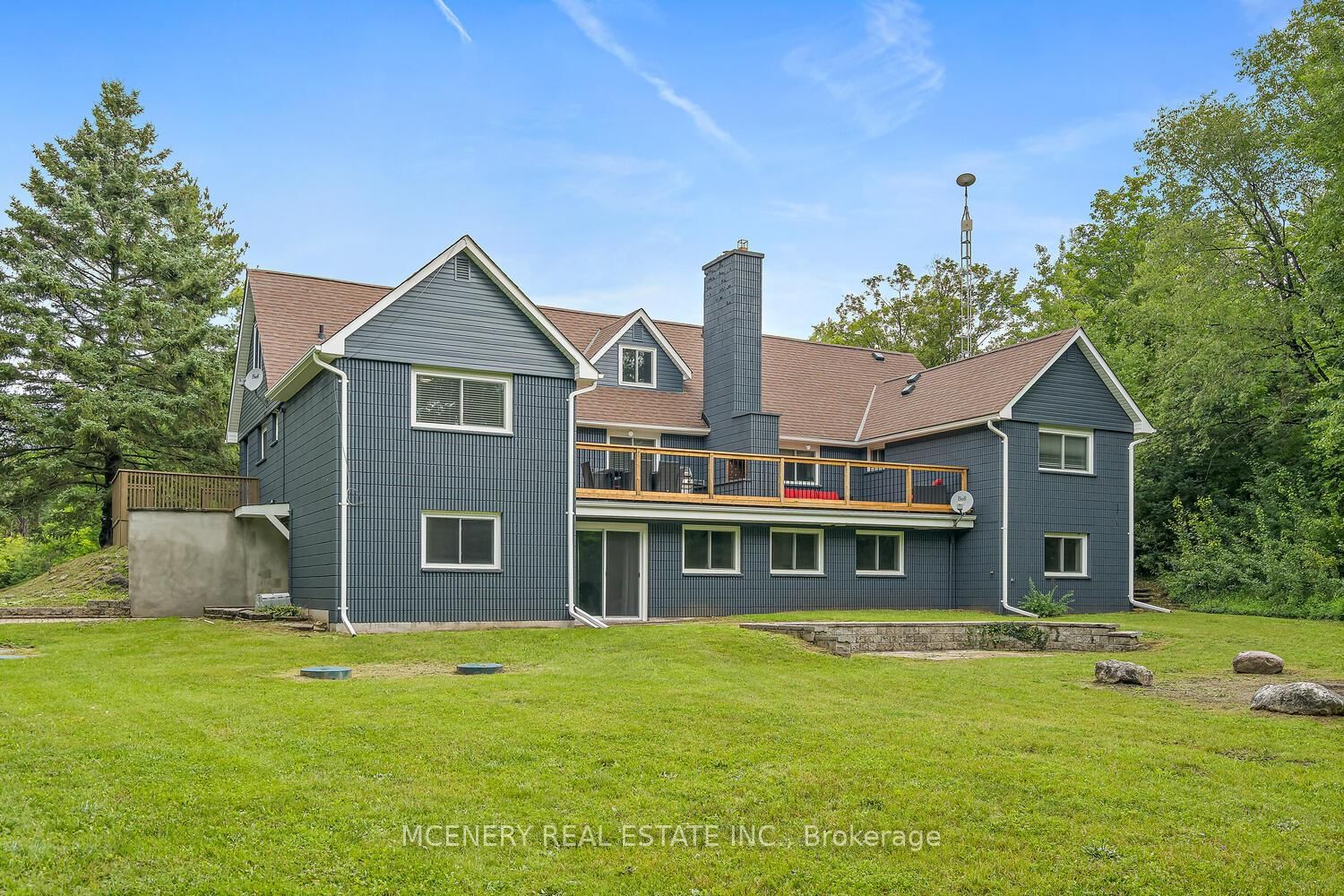 9739 10th sdrd, Erin's Finest. The Bungaloft on 9739 10th Sideroad has 5 bedrooms, 5 bathrooms, and is located on a 963 x 246 ft loton 5-9.99 acres in the community of Rural Erin . This private sprawling bungaloft home is second to none for large families. 5 plus 4 bedrooms and 4 whole bathrooms can comfortably accommodate multi generations. Completely renovated 2023. Gourmet kitchen, equipped w/ s.steel appliances, custom cabinetry & large island; adjoining open concept living / dining room area walking out to massive perched deck overlooking a beautiful large pond surrounded by trees and nature . Primary and additional 1 bedroom both with ensuites on the main level. Second level features 3 large bedrooms with a full bathroom. Lower level boasts another 4 bedrooms, full kitchen and 2 full bathrooms all accessed by 3 separate walkout entrances. Truly a unique secluded turnkey property all set on 5 plus acres less than 1/2 mile from Winston Churchill blvd.