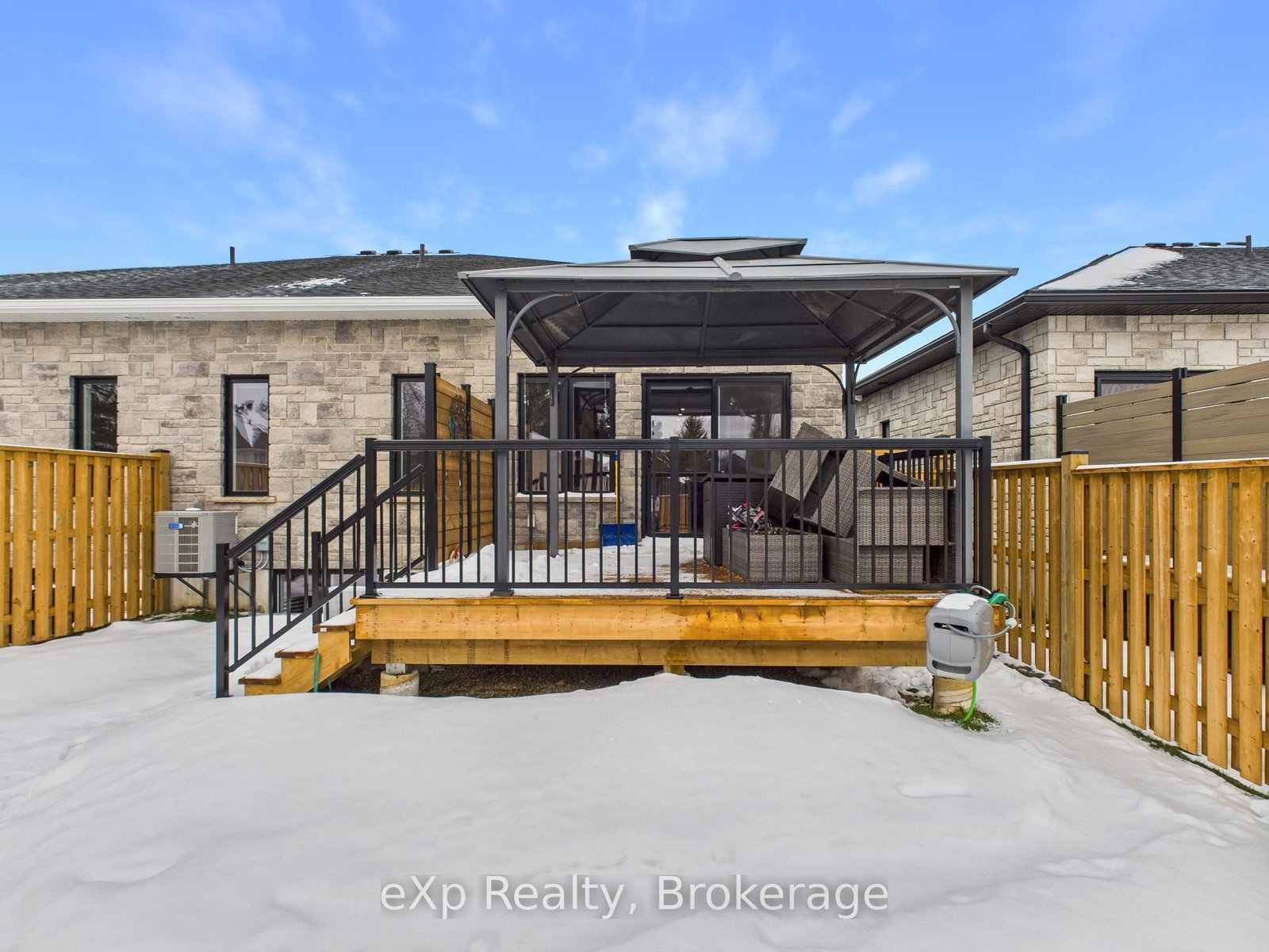 Semi-detached home by Candue Homes offering main-level living, single-car garage, and finished basement. The Bungalow on 221130 Grey Road 9 null has 2 bedrooms, 2 bathrooms, and is located on a 135 x 31 ft lot in the community of Neustadt . Covered front porch entry leads to a bright, open-concept kitchen, dining, and living area. Kitchen features quartz countertops, island with bar seating, pantry, and appliances. Living room includes a fireplace and patio door walkout to a rear deck, ideal for outdoor entertaining-overlooking a fully fenced backyard with a 12' x 14' garden shed. Two bedrooms on the main level. Convenient 3-pc bath with quartz counters, laundry, and linen closet all on the same level. Vinyl flooring throughout, including the finished basement with rec room, 4-pc bath, two additional bedrooms, and good storage. Built in 2024 with Tarion Warranty. 2026 taxes have not yet been assessed and are expected to be finalized in July 2026. MPAC estimate is $3,345 for 2025. Easement is for entry for municipal drainage.