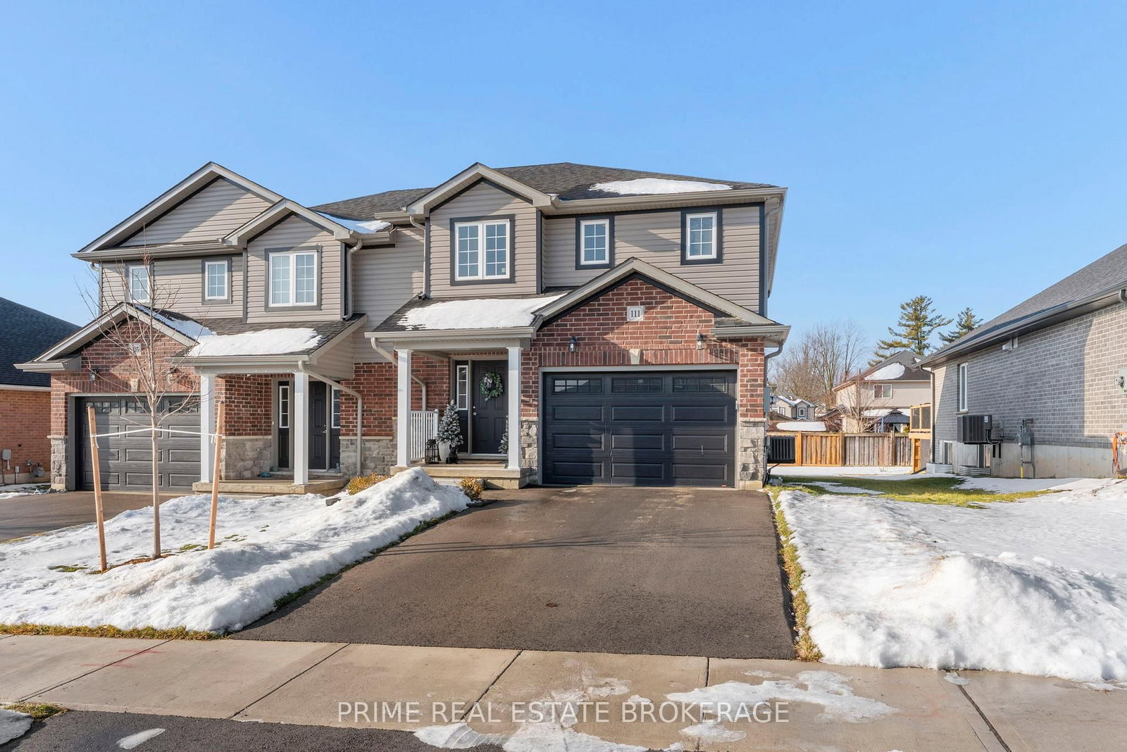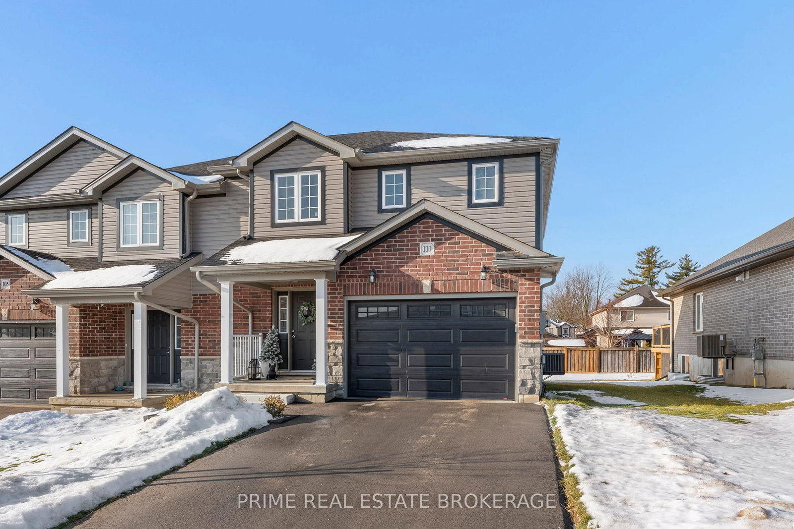 Welcome to 111 Lossing Drive, a beautifully finished 2023 built semi detached home located in the heart of the family friendly community of Norwich. The 2-Storey on 111 Lossing Drive has 3 bedrooms, 3 bathrooms, and is located on a 118 x 40 ft lot in the community of Norwich Town .From the moment you step inside, the home makes a strong first impression. The welcoming foyer features a custom built-in bench with elegant gold sconce lighting on either side, immediately setting the tone for the thoughtful design carried throughout the home. Soft neutral tones, upgrades throughout, and an abundance of natural light create a warm, refined feel that is both stylish and inviting.The main living space is the heart of the home. A striking stone feature wall with a gas fireplace, paired with custom built-ins, anchors the room and creates a comfortable, visually impressive gathering space. The open concept layout flows naturally into the kitchen and dining area, which stands out with high-end GE Café appliances, quartz countertops, and a statement waterfall island that brings both style and everyday function together.Upstairs, the home offers three spacious bedrooms, including a primary suite with its own ensuite bathroom, along with a separate full bathroom serving the additional bedrooms which is an ideal layout for growing families and guests alike.The partially finished basement adds valuable living space and is currently set up as a home gym, but could easily be used as a rec room, home office, or media space to suit your needs.Set within a quiet, welcoming neighbourhood, 111 Lossing Drive offers the rare combination of nearly new construction, thoughtful upgrades, and move-in-ready living... An exceptional opportunity to own a home where comfort, style, and functionality come together effortlessly.