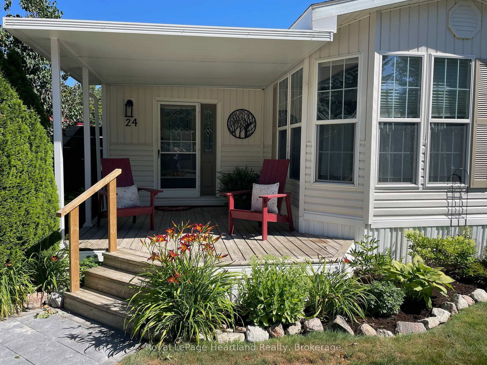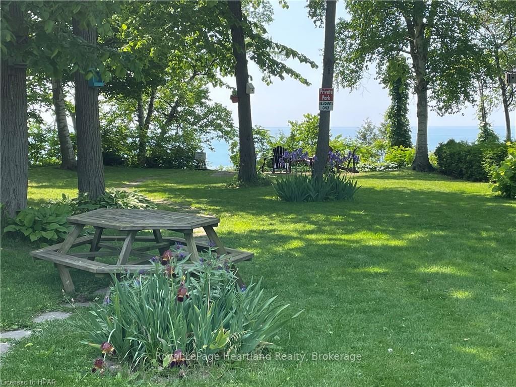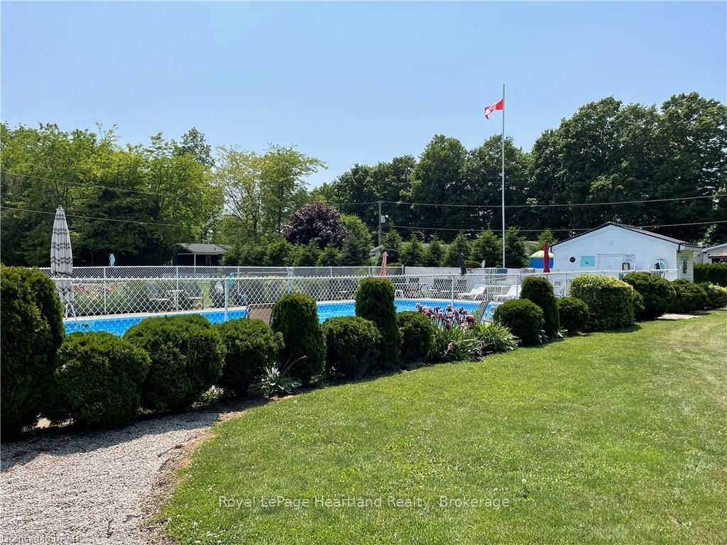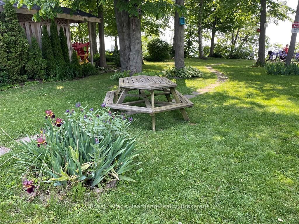 Welcome to this affordable, well maintained home located in Northwood Beach Resort, 55+ adult lifestyle community. The Bungalow on 24 ROWAN RD-77307 BLUEWATER Highway has 2 bedrooms, 1 bathrooms, and is located in the community of Bayfield . Minutes from the Village of Bayfield where you will find great restaurants, shopping, marina, sandy beaches & a golf course right across the road. This up-to-date home has a spacious entrance/sitting area with a new gas fireplace, a bright eat-in kitchen that opens to a cozy living room. The primary bedroom with built-in cabinets, a large clothes closet and patio doors that lead to a large deck is a great spot for morning coffee. A second bedroom also opens to the deck, doubles as a functional storage room with an optional built-in single bed, great for an overnight guest. The lovely backyard is lined with mature trees ensuring privacy, perennial gardens surround the brand new grey concrete slate walkway and the new black privacy fence on the large deck is the perfect space for summer entertaining. A new 10'x12' insulated shed with electricity and an extra garden shed provides plenty of storage. Northwood Beach offers a beautiful updated community centre, large outdoor pool & amazing sunsets at the lakeside park. If downsizing, low maintenance & lakeside living are what you are looking for, this is the home for you!