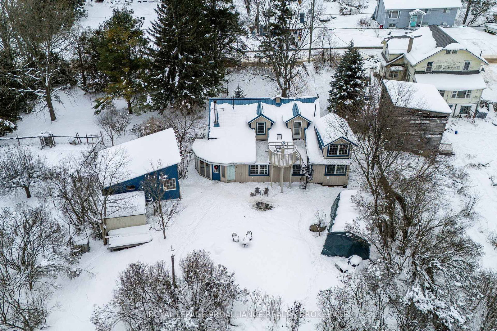 Welcome to this charming century home nestled in the heart of Bellrock, a warm and welcoming small-town community (25 min to Kingston, 5 min to Verona) This beautiful gem is a true masterpiece, crafted with original hardwood and old-growth forest timber, milled at the Bellrock Lumber Mill. The 1 1/2 Storey on 6014 Main Street has 3 bedrooms, 3 bathrooms, and is located on a 204.92 x 175.48 ft lot in the community of Frontenac South . With 3 bedrooms and 2.5 washrooms, it's a home that tells a story, with every detail steeped in history and character. Step into the backyard, and you'll be greeted by the soothing sound of the Bellrock Mill Pond waterfall, a private swimming spot of your own. The Depot Creek waterway meanders through the rear of the property, eventually joining the Napanee River, creating a thriving ecosystem filled with turtles, otters, blue herons, dragonflies, and migratory birds. The private yard is a tranquil retreat, shaded by mature trees and adorned with lush lilac bushes, perfect for quiet mornings or family gatherings. Inside, the home has been lovingly updated while preserving its timeless charm. The freshly painted interior and exterior create a bright and welcoming atmosphere. The renovated main floor family room is perfect for lazy evenings, or gather around the cozy woodstove in the living room while enjoying quiet conversation. Upstairs offers three bedrooms and a 4 pc washroom. Wind your way up the spiral staircase to the outdoor observatory deck, with telescope mount, perfect for stargazing (Bortle 4 Dark Sky). The plant/sunroom, with its kitchenette and 3-piece bathroom, offers versatile space, while the main floor family room boasts original wood floors that exude warmth and character. Large Studio Shed, offers endless possibilities as a workshop or creative space, with a lower garden storage area for all your outdoor needs. This home is more than a place to live - it's a lifestyle, where history meets modern comfort, where nature and community come together, and where every corner tells a story. Many recent updates, inc. windows, furnace, appliances, water softener and more.