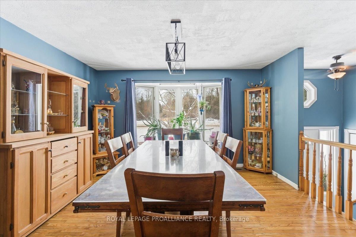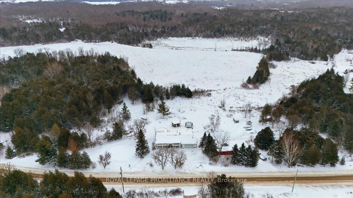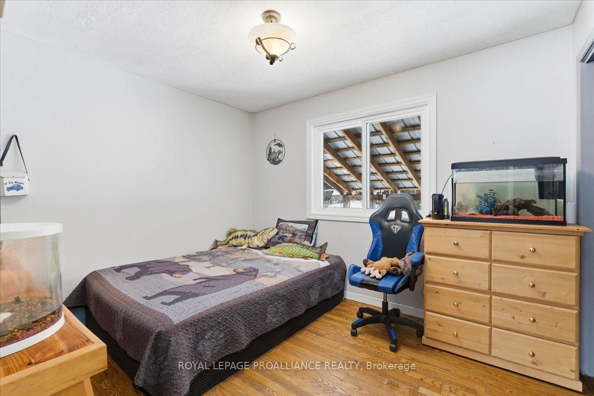 Set on a picturesque country lot, this raised bungalow at 1442 Quin-Mo-Lac Road offers comfortable rural living just outside the town of Tweed. The Bungalow on 1442 Quin Mo Lac Road has 4 bedrooms, 2 bathrooms, and is located on a 258.06 x 321.69 ft loton 2-4.99 acres in the community of Hungerford (Twp) . The home features a generous layout with seven bedrooms, making it well-suited for larger families, home-based living, or those seeking extra space. The main living areas are bright and functional, with a formal dining room, a well-equipped kitchen, a cozy living room and bonus indoor man-cave! Heating is provided by propane forced air and 2 wood stoves for flexibility, complemented by a metal roof and concrete foundation. The attached garage adds convenience and ample storage. Outside, enjoy landscaped grounds, established gardens, an above-ground pool (2022), and a covered deck with hot tub (2022). A peaceful creek borders part of the property, enhancing the natural setting.