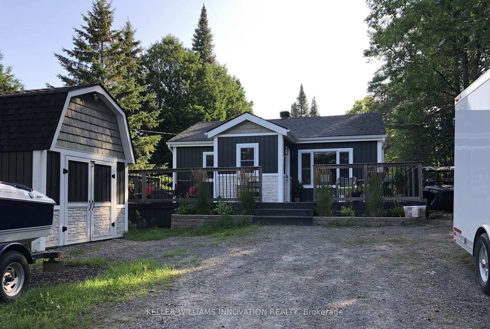 *Direct Access to the Water from the back of the property* Tucked quietly into one of Muskoka's most vibrant year round communities, this updated four season waterfront access cottage feels like a place you arrive at and immediately exhale. The Bungalow on 469 ROWANWOOD Road has 2 bedrooms, 1 bathrooms, and is located on a 407.22 x 50.84 ft loton < .50 acres in the community of Stephenson . Huntsville continues to stand out as one of the strongest cottage markets in the region, drawing people back season after season with its ski resort, golf courses, charming downtown, dining, and lively energy that never fades with the weather. This two bedroom cottage captures everything people love about lake life, without the overwhelming price tag. With approx. 50ft of frontage and direct boating access into Mary Lake, your days unfold naturally here. Morning paddles, afternoons on the dock, quiet swims out to open water, or hopping on your favourite watercraft to explore more than 40 miles of connected boating through Mary Lake, Lancelot Creek & Penfold Lake. There is always somewhere new to wander. The south facing deck will quickly become your favourite place. Long sunny days melt into relaxed evenings, whether it is coffee in the morning, lounging in the afternoon, or watching the stars come out at night. The private yard invites barefoot afternoons, family time & space for pets to roam, complemented by a storage building and a loft-style bunkie that makes hosting guests effortless. Surrounded by mature trees, it feels peaceful and private here while still being close to town. Excellent cell reception makes remote work easy, and forced air heating, central air, and a drilled well create peace of mind. Whether you are looking for a starter cottage, a smart investment, or a simple place to reconnect with the water, this is one of those rare properties where nothing feels complicated. Just arrive, settle in, and let Muskoka do what it does best. This is where easy days turn into lasting memories, and where lake life finally feels within reach.