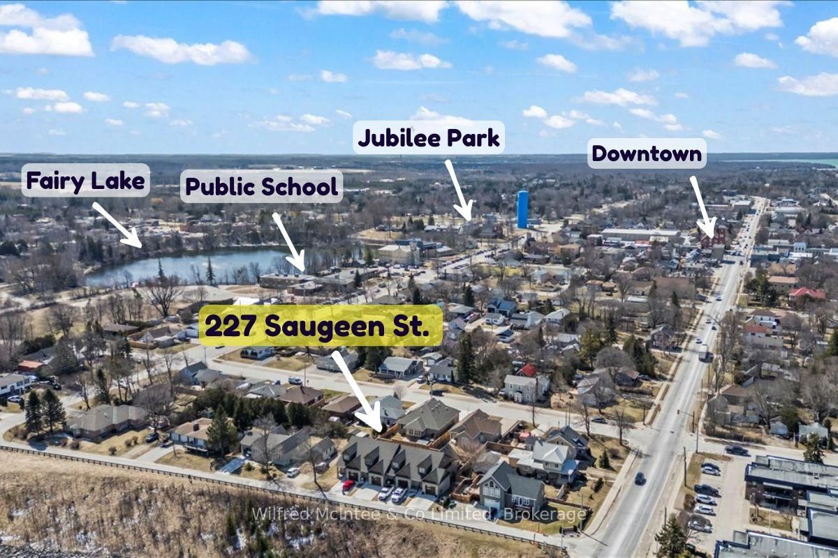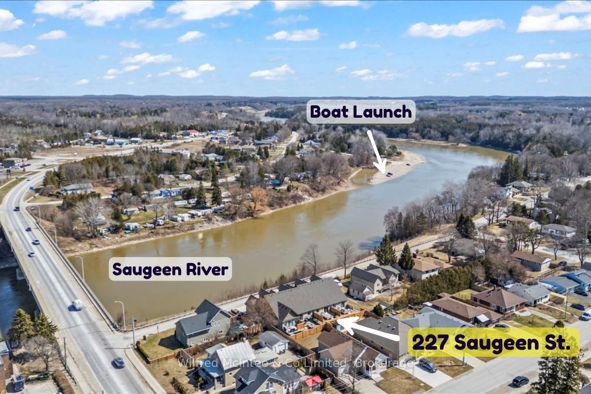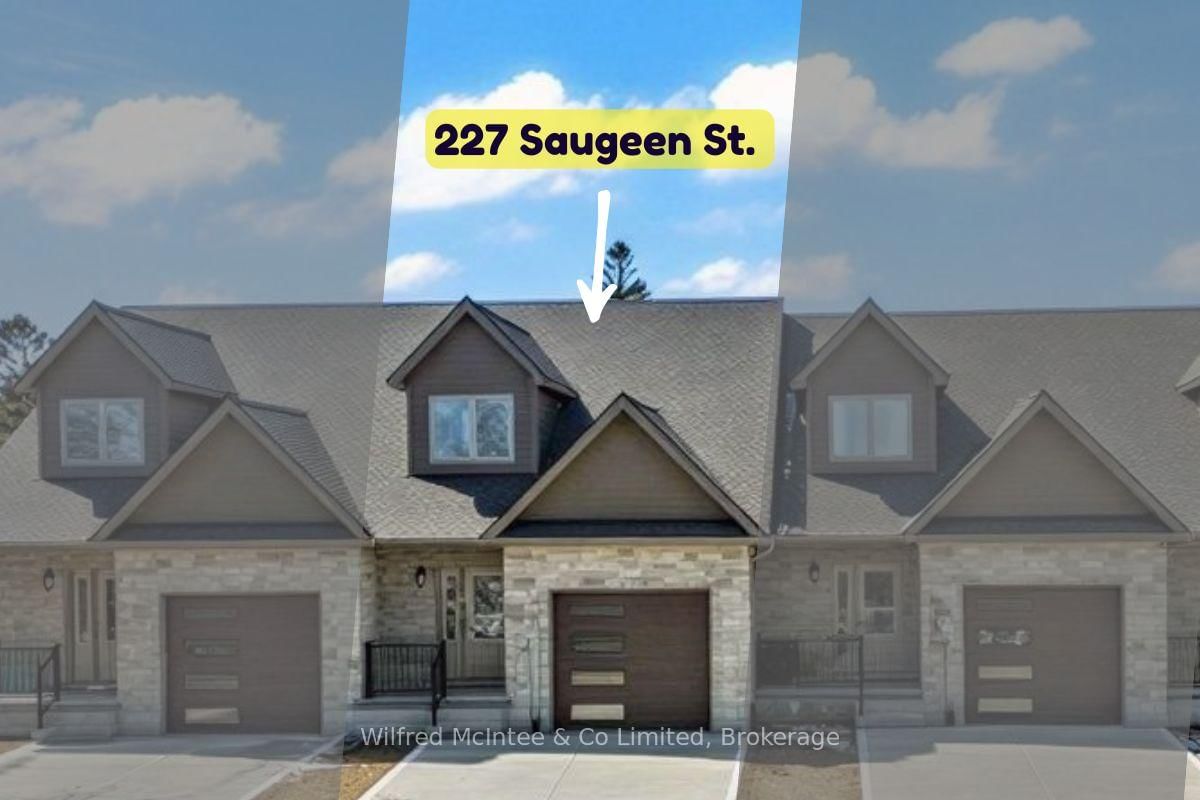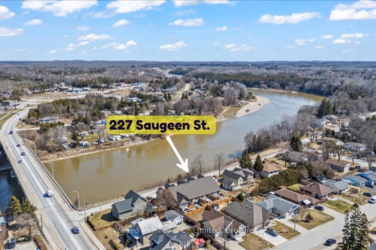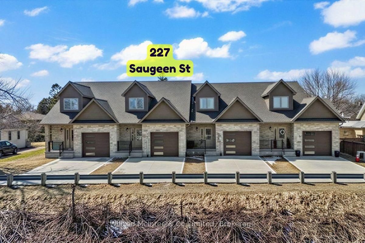 Stunning Southampton townhome, perfectly positioned along the scenic Saugeen River, just a short walk to vibrant downtown shops, restaurants, the beach & breathtaking sunsets on Lake Huron. The 1 1/2 Storey on 227 Saugeen Street has 2 bedrooms, 3 bathrooms, and is located on a 100.9 x 22.19 ft loton < .50 acres in the community of Saugeen Shores . Spanning over 2,000 sq ft of finished living space across three levels (two above grade plus a full finished basement), the home features a bedroom and full bathroom on each floor for ultimate convenience and privacy. Inside, you'll appreciate the tasteful finishes, including quality cabinetry, solid surface counters, luxury vinyl plank flooring, tiled bath/shower surrounds, LED lighting, and more. The main level showcases an open-concept living/dining area with access to your south facing deck, a U-shaped kitchen loaded with ample cabinetry and included appliances, a bright main-floor bedroom and a 4-piece bathroom. Upstairs, a versatile loft/sitting room leads to the primary bedroom suite, displaying river views through the dormer window, a 3-piece ensuite, and a large walk-in closet. The fully finished basement offers guest-friendly space with a third bedroom, another 4-piece bathroom, and a generous sized recreation room. Additional highlights include efficient natural gas furnace, central air conditioning, laundry hookups ready for your washer/dryer, concrete driveway, single attached garage, and low maintenance curb appeal with the stone-brick exterior. Built just a few years ago, this turn-key townhome is ready for you to move right in and add your decorative touch. Waterfront travelled road between. Photos with furniture and decor are virtually staged.