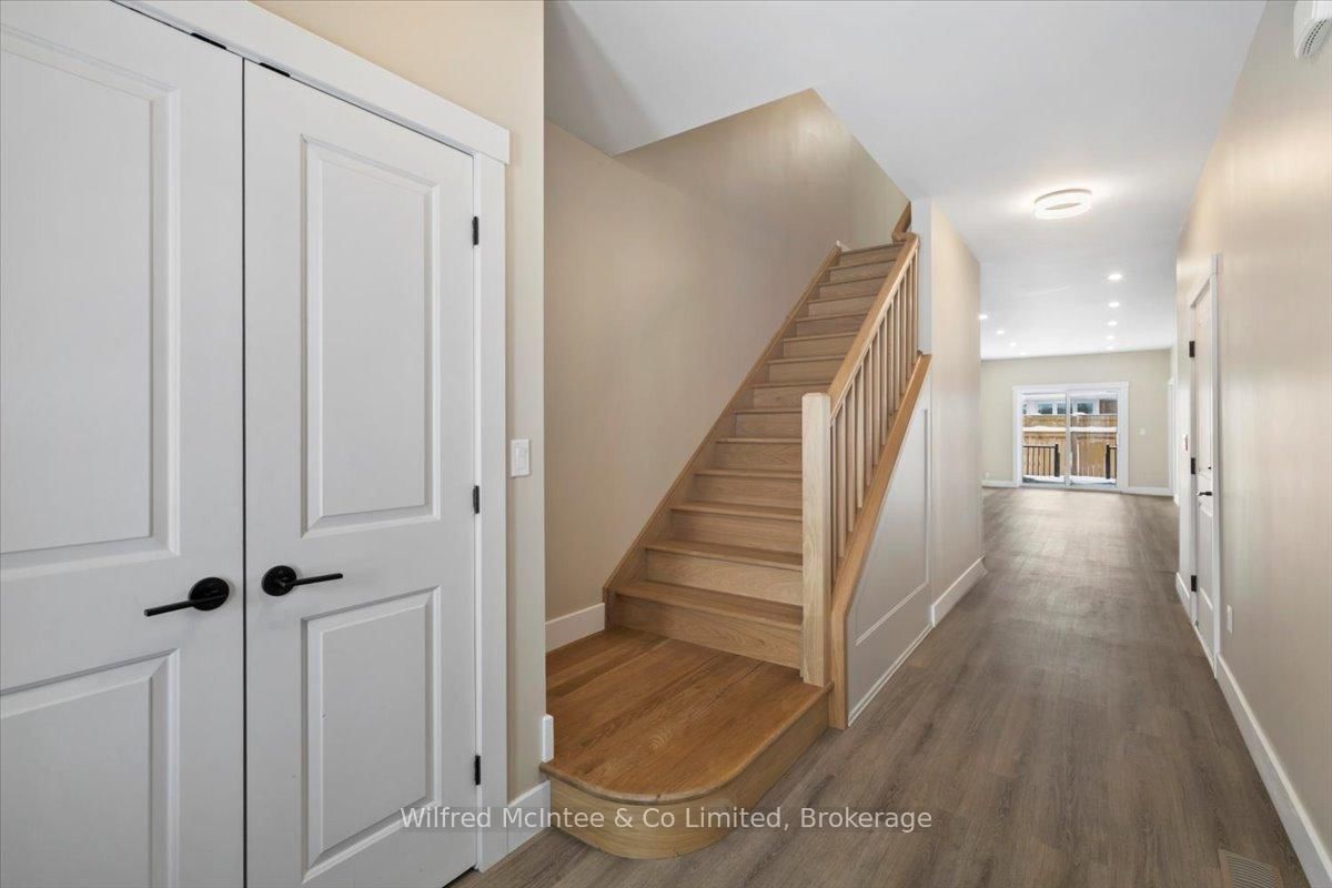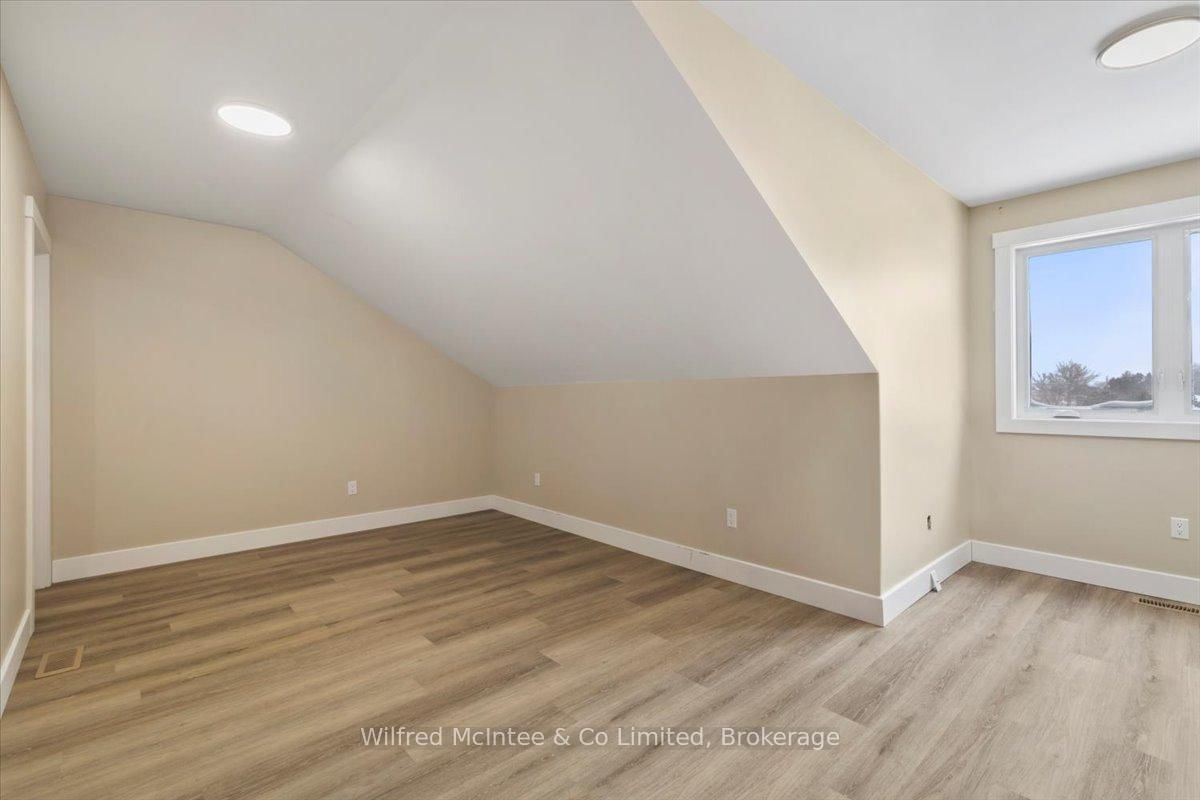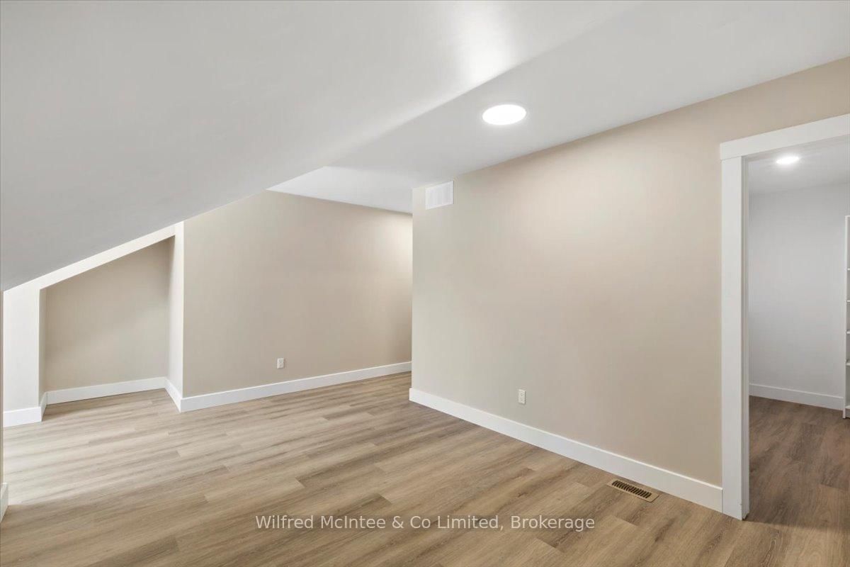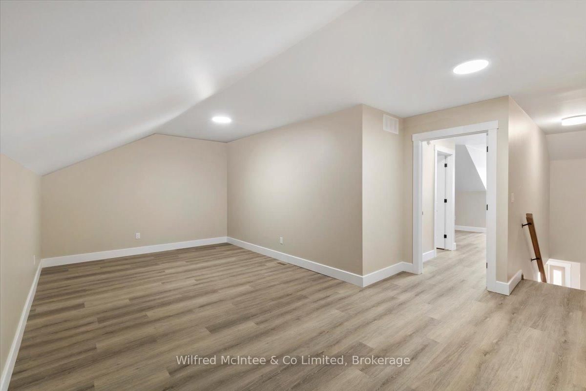 Stunning Southampton townhome, perfectly positioned along the scenic Saugeen River, just a short walk to vibrant downtown shops, restaurants, the beach & breathtaking sunsets on Lake Huron. The 1 1/2 Storey on 227 Saugeen Street has 2 bedrooms, 3 bathrooms, and is located on a 100.9 x 22.19 ft loton < .50 acres in the community of Saugeen Shores . Spanning over 2,000 sq ft of finished living space across three levels (two above grade plus a full finished basement), the home features a bedroom and full bathroom on each floor for ultimate convenience and privacy. Inside, you'll appreciate the tasteful finishes, including quality cabinetry, solid surface counters, luxury vinyl plank flooring, tiled bath/shower surrounds, LED lighting, and more. The main level showcases an open-concept living/dining area with access to your south facing deck, a U-shaped kitchen loaded with ample cabinetry and included appliances, a bright main-floor bedroom and a 4-piece bathroom. Upstairs, a versatile loft/sitting room leads to the primary bedroom suite, displaying river views through the dormer window, a 3-piece ensuite, and a large walk-in closet. The fully finished basement offers guest-friendly space with a third bedroom, another 4-piece bathroom, and a generous sized recreation room. Additional highlights include efficient natural gas furnace, central air conditioning, laundry hookups ready for your washer/dryer, concrete driveway, single attached garage, and low maintenance curb appeal with the stone-brick exterior. Built just a few years ago, this turn-key townhome is ready for you to move right in and add your decorative touch. Waterfront travelled road between. Photos with furniture and decor are virtually staged.