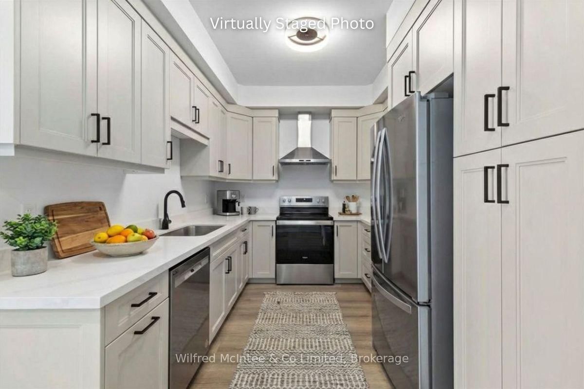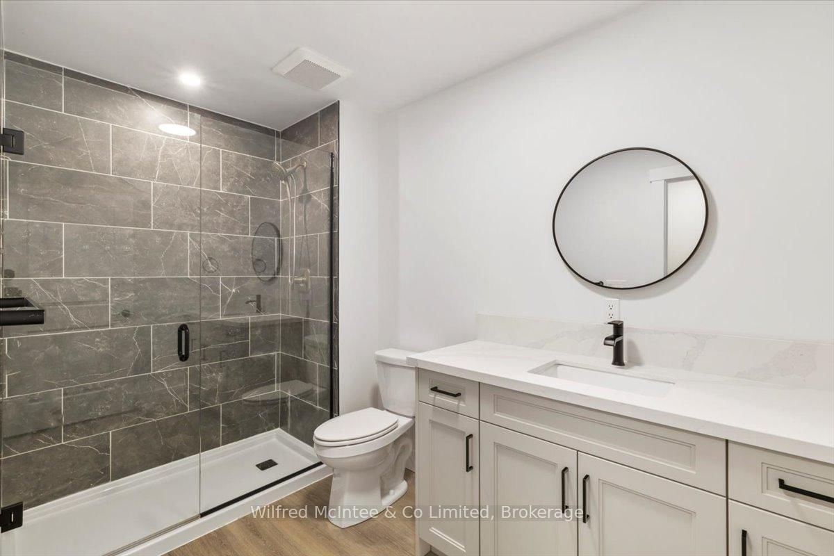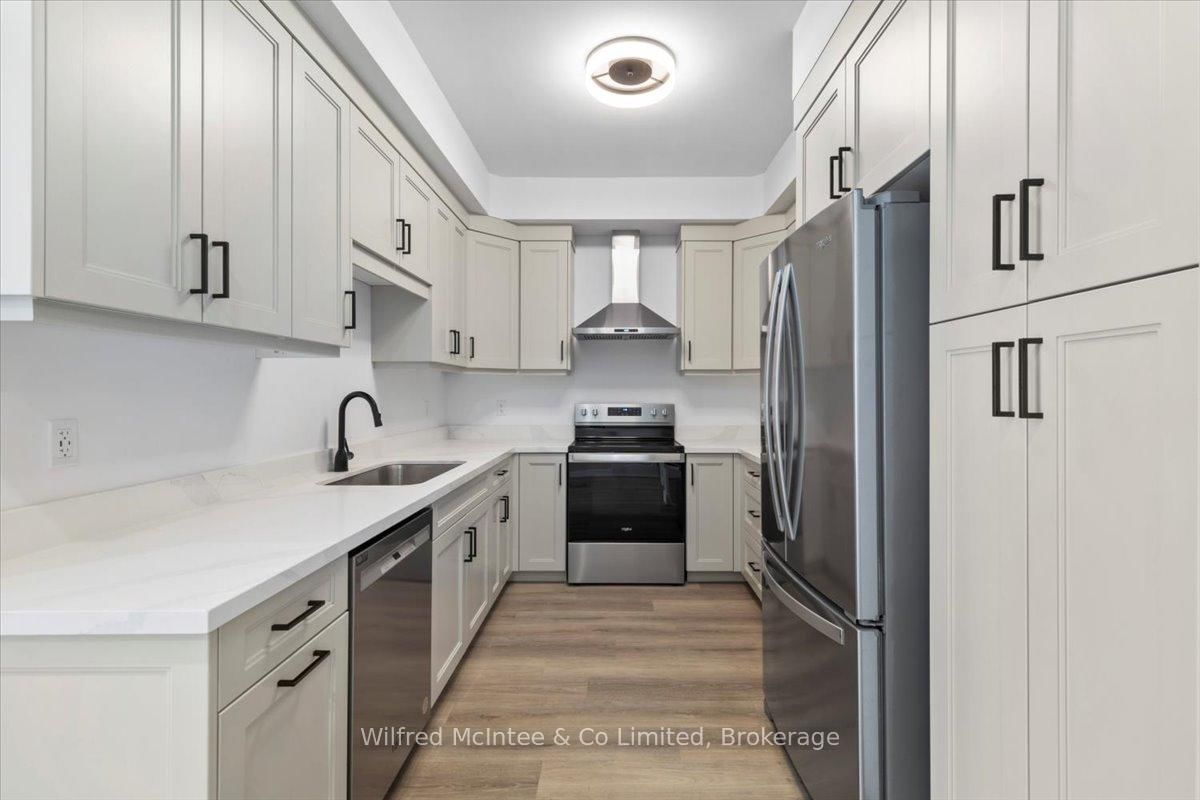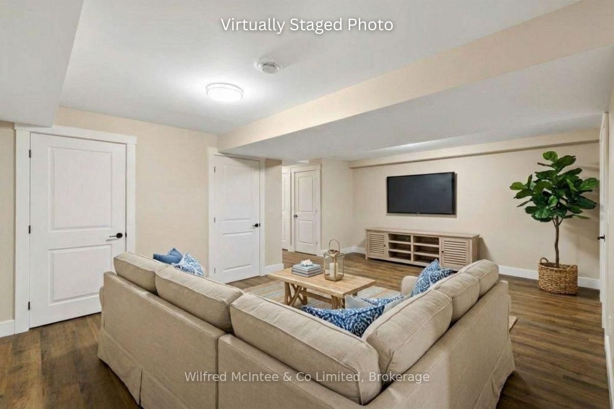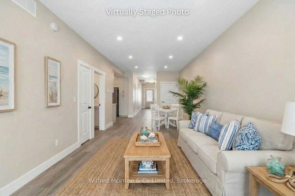 Stunning Southampton townhome, perfectly positioned along the scenic Saugeen River, just a short walk to vibrant downtown shops, restaurants, the beach & breathtaking sunsets on Lake Huron. The 1 1/2 Storey on 227 Saugeen Street has 2 bedrooms, 3 bathrooms, and is located on a 100.9 x 22.19 ft loton < .50 acres in the community of Saugeen Shores . Spanning over 2,000 sq ft of finished living space across three levels (two above grade plus a full finished basement), the home features a bedroom and full bathroom on each floor for ultimate convenience and privacy. Inside, you'll appreciate the tasteful finishes, including quality cabinetry, solid surface counters, luxury vinyl plank flooring, tiled bath/shower surrounds, LED lighting, and more. The main level showcases an open-concept living/dining area with access to your south facing deck, a U-shaped kitchen loaded with ample cabinetry and included appliances, a bright main-floor bedroom and a 4-piece bathroom. Upstairs, a versatile loft/sitting room leads to the primary bedroom suite, displaying river views through the dormer window, a 3-piece ensuite, and a large walk-in closet. The fully finished basement offers guest-friendly space with a third bedroom, another 4-piece bathroom, and a generous sized recreation room. Additional highlights include efficient natural gas furnace, central air conditioning, laundry hookups ready for your washer/dryer, concrete driveway, single attached garage, and low maintenance curb appeal with the stone-brick exterior. Built just a few years ago, this turn-key townhome is ready for you to move right in and add your decorative touch. Waterfront travelled road between. Photos with furniture and decor are virtually staged.