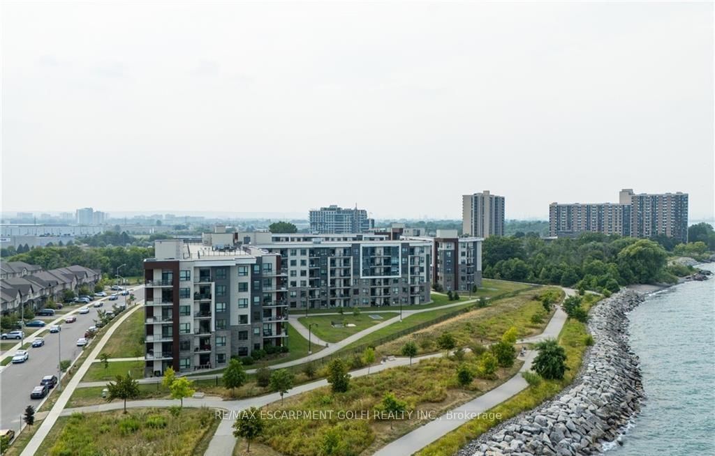 LAKE VIEW! WALKOUT! PET LOVERS! UP TO $10K IN CUSTOM BUYER INCENTIVES! Welcome to this beautifully proportioned, bright 1-bedroom condo, perfectly positioned just steps from Lake Ontario and a secluded beach, with sweeping views toward Burlington and the Toronto skyline. The Apartment on 104-101 Shoreview Place has 1 bedrooms, 1 bathrooms, and is located in the community of Lakeshore . Offering the convenience of a main-floor walkout and a private front-door hallway entry, this home blends condo living with the feel of a ground-level retreat. Freshly painted in a neutral palette, the unit features 9-foot ceilings and a bright, open-concept layout designed to maximize both space and natural light. Warm-toned upgraded laminate flooring flows seamlessly from the living area through the hallway and into the bedroom, with upgraded trim creating a cohesive and inviting atmosphere. Step outside to your private, serene patio and rear lawn area overlooking the lake - an ideal setting for morning coffee, evening cocktails, or outdoor dining with easy access for pet owners. The kitchen showcases quartz countertops, Frigidaire stainless steel appliances, a sleek smooth-top stove, Blanco double under-mount sink, pull-down faucet, and stylish backsplash. A breakfast bar provides space for casual dining or entertaining, while custom blinds throughout add comfort and privacy. The bedroom offers flexibility for furniture placement, complemented by a large window and generous closet. Just across the hallway, the well-appointed 4-piece bathroom features updated porcelain tile, a custom glass shower wall, and a conveniently located, separated in-suite laundry area. Enjoy excellent building amenities, including a party room, exercise room, rooftop terrace, bike storage, and secure underground parking, along with direct access to scenic waterfront trails and a peaceful public beach. Situated with quick access to major commuter routes, Confederation GO, and everyday conveniences. Whether you're a first-time buyer, downsizer, or investor, this turnkey lakefront condo delivers exceptional value.